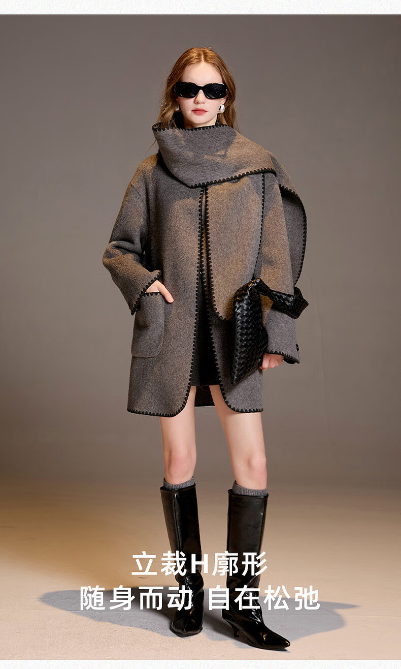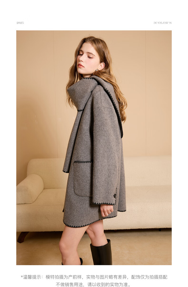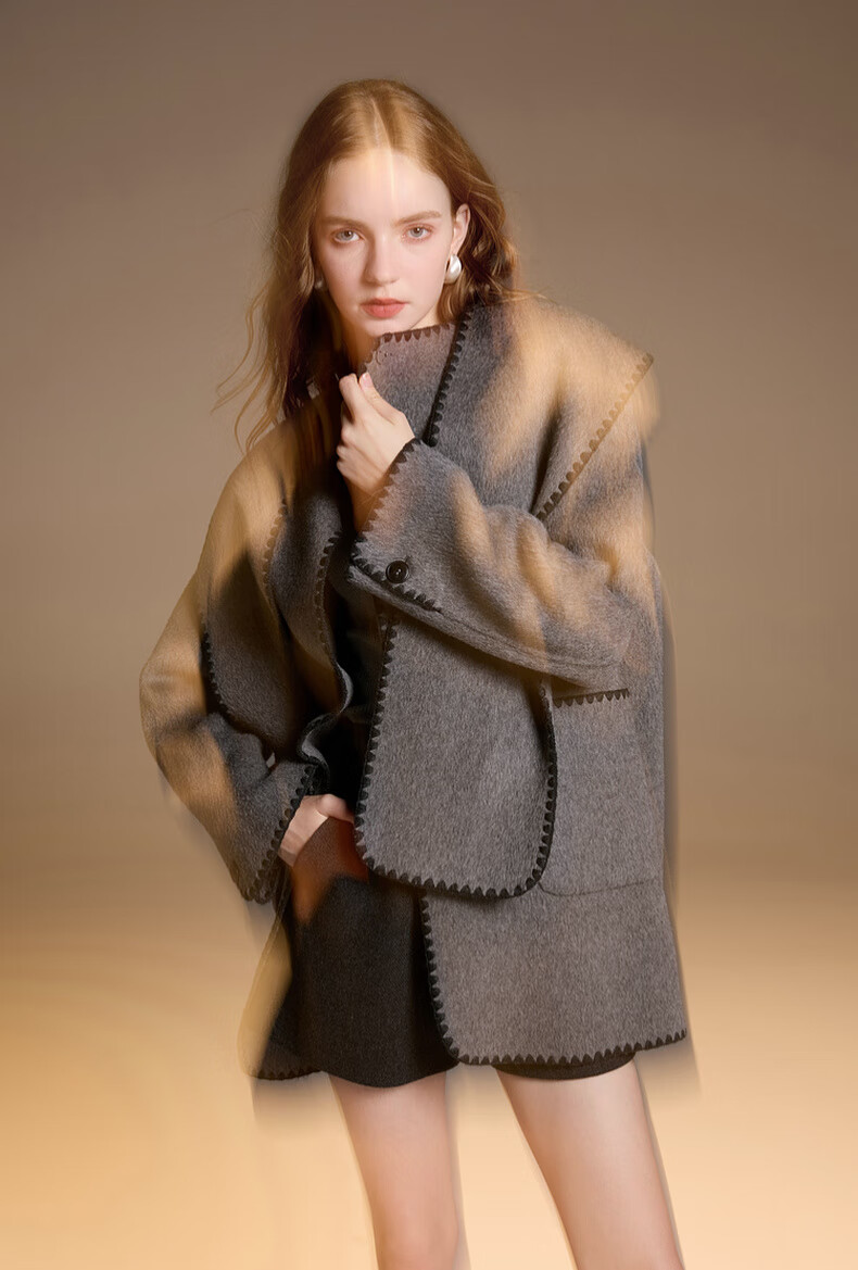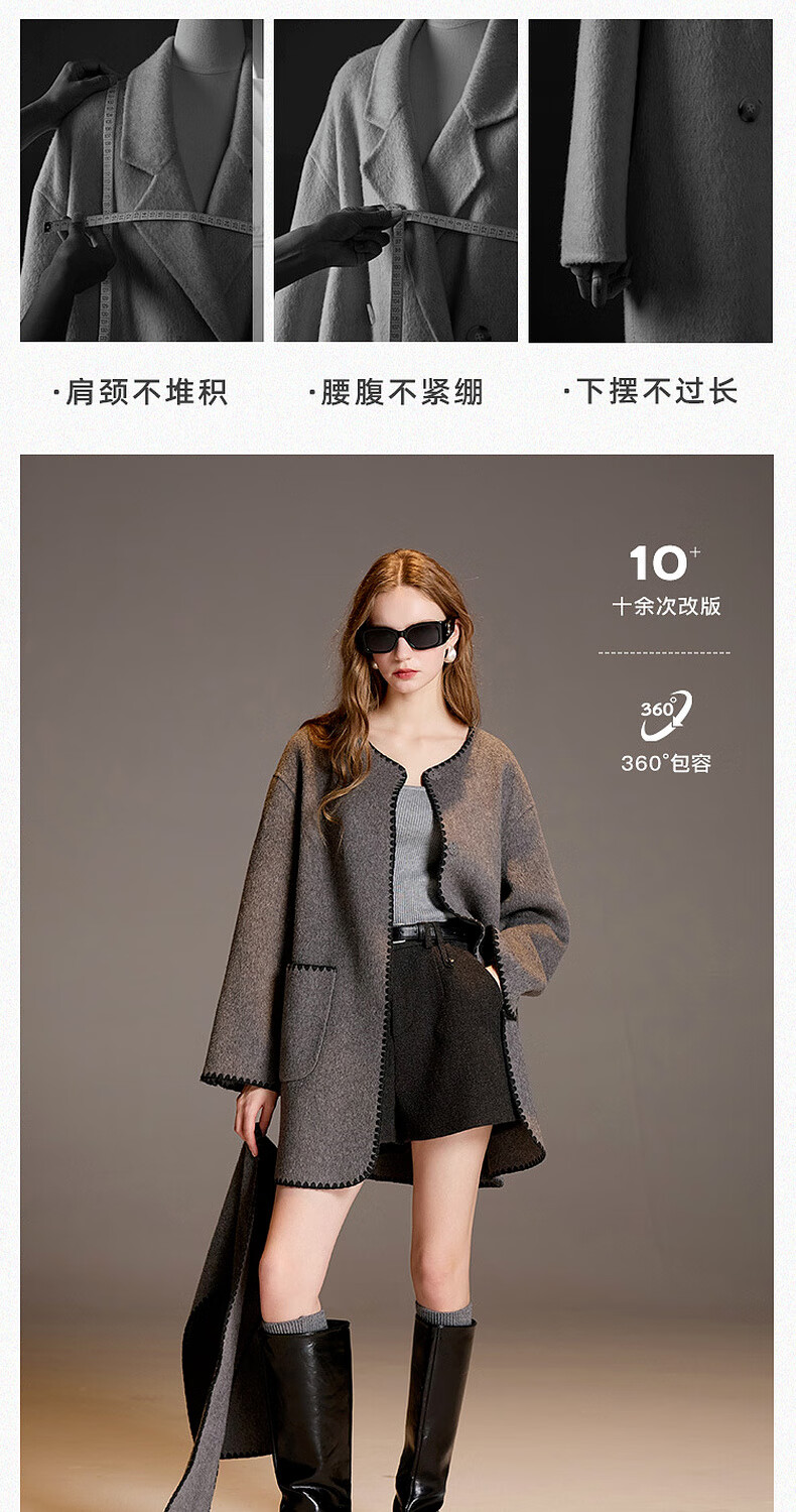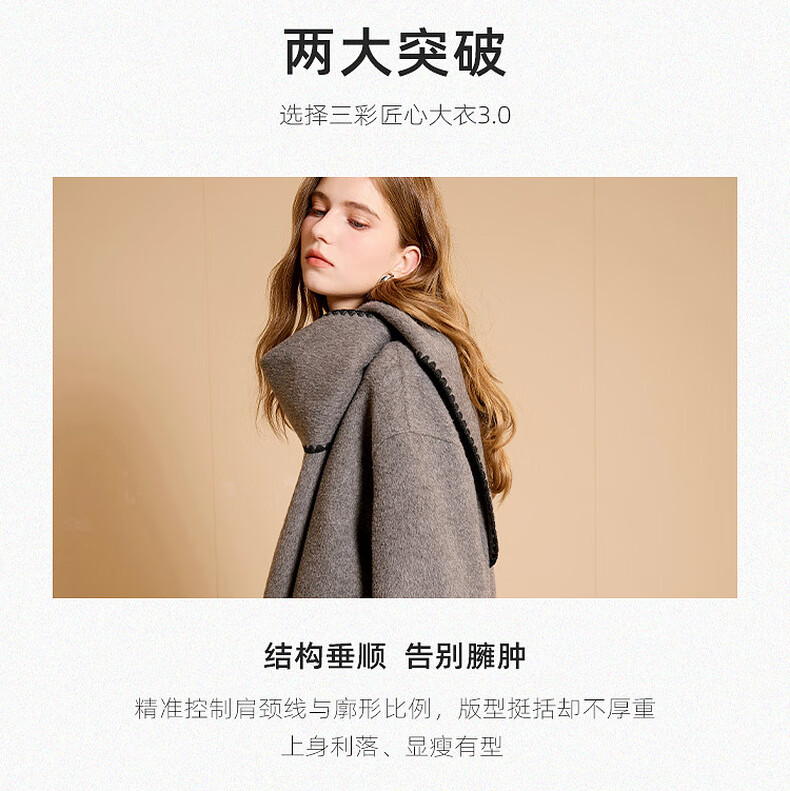 Sancai Ingenious Coat 100 Sheep Wool Sancai 2025 Winter New Gray Double-Sided Woolen Coat Women S