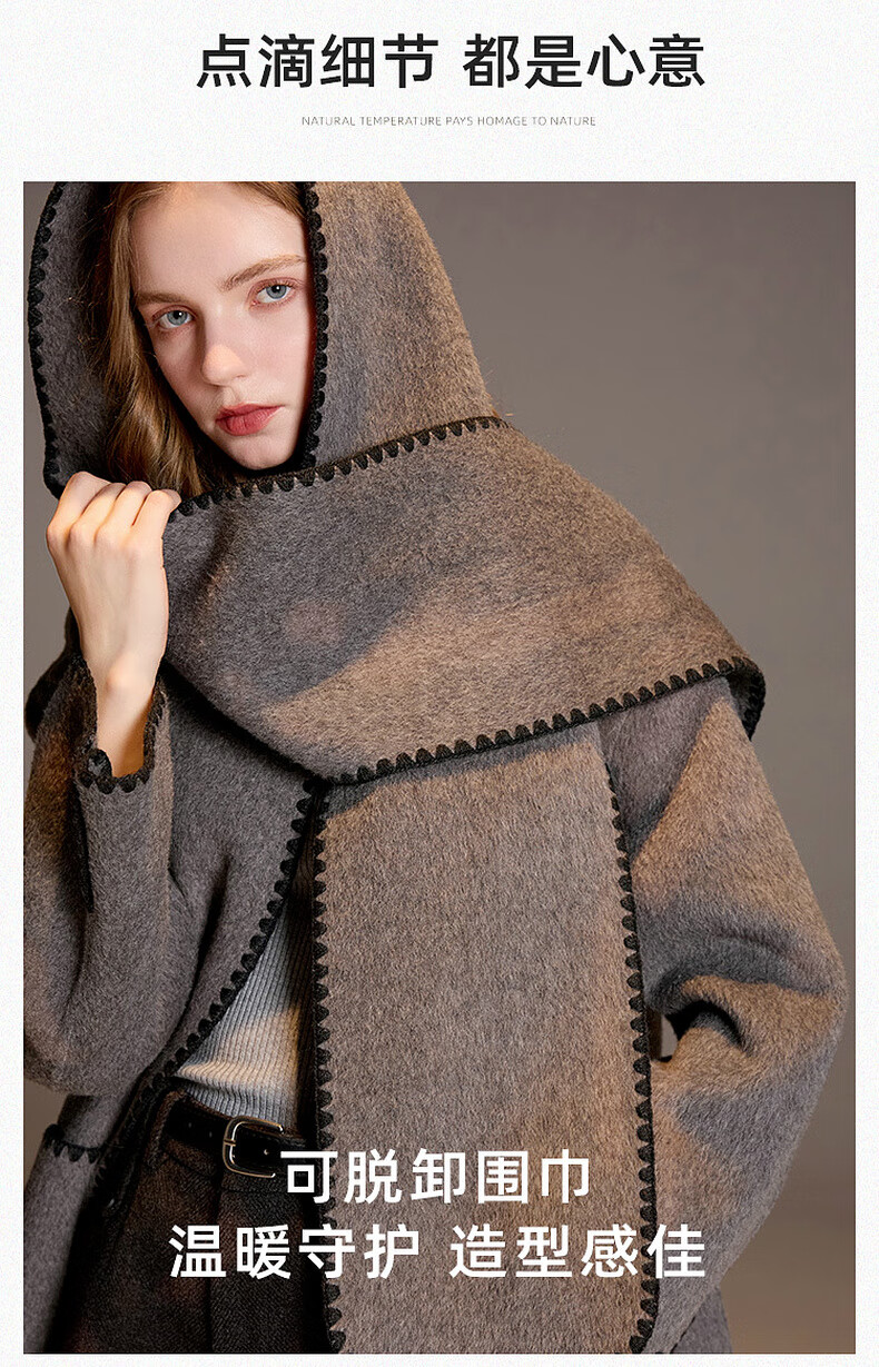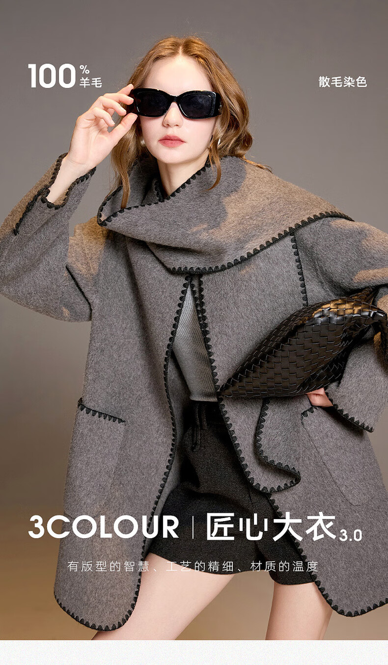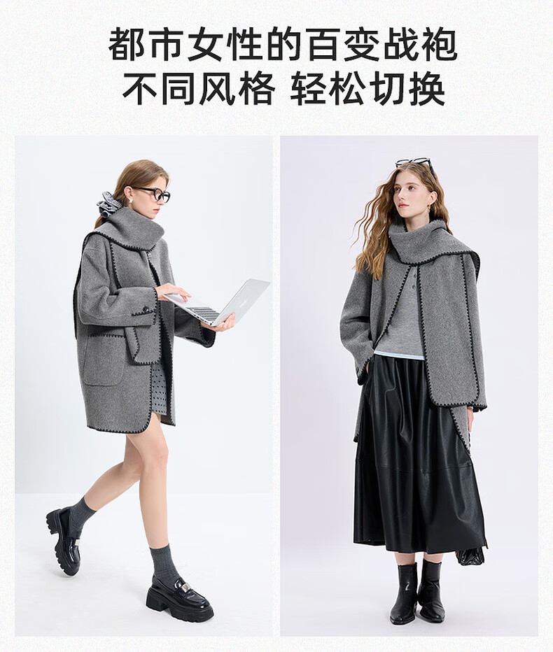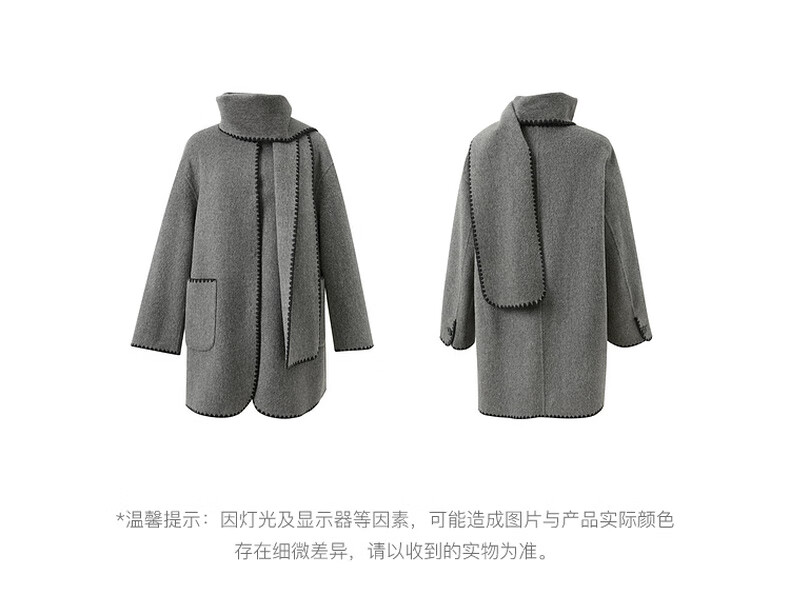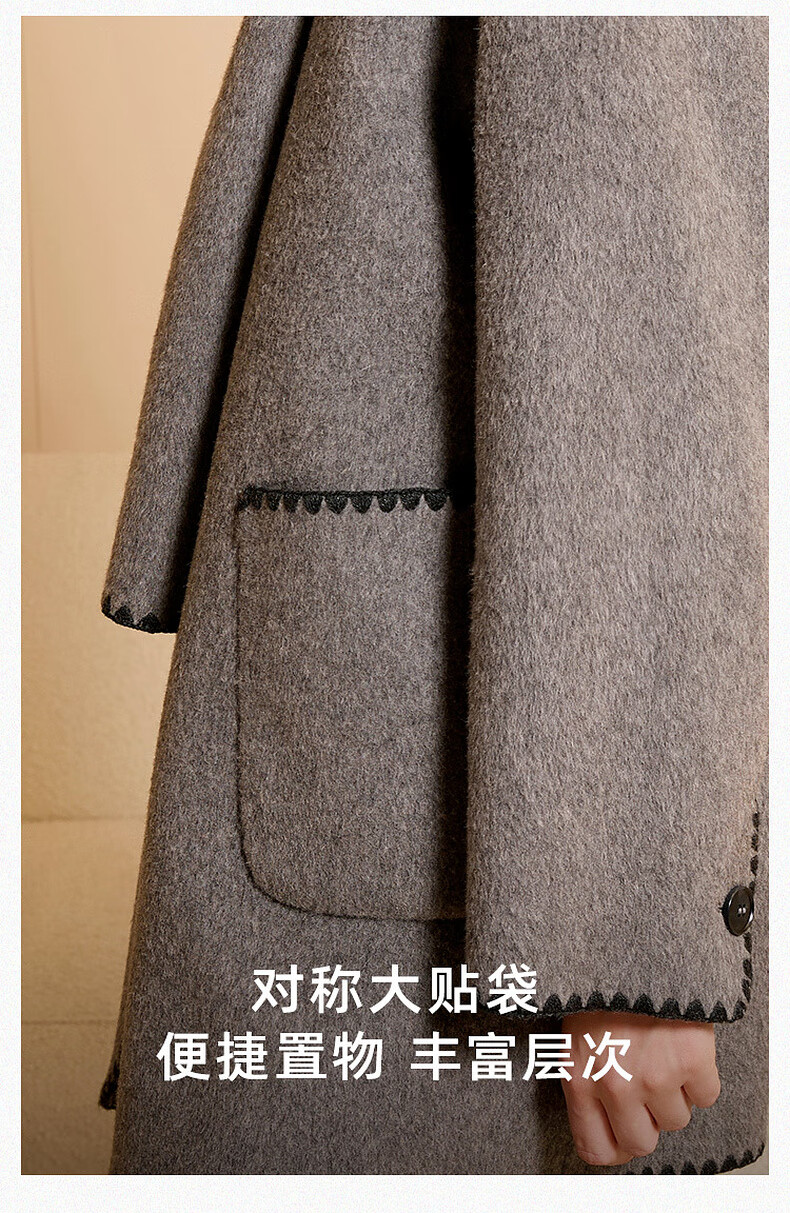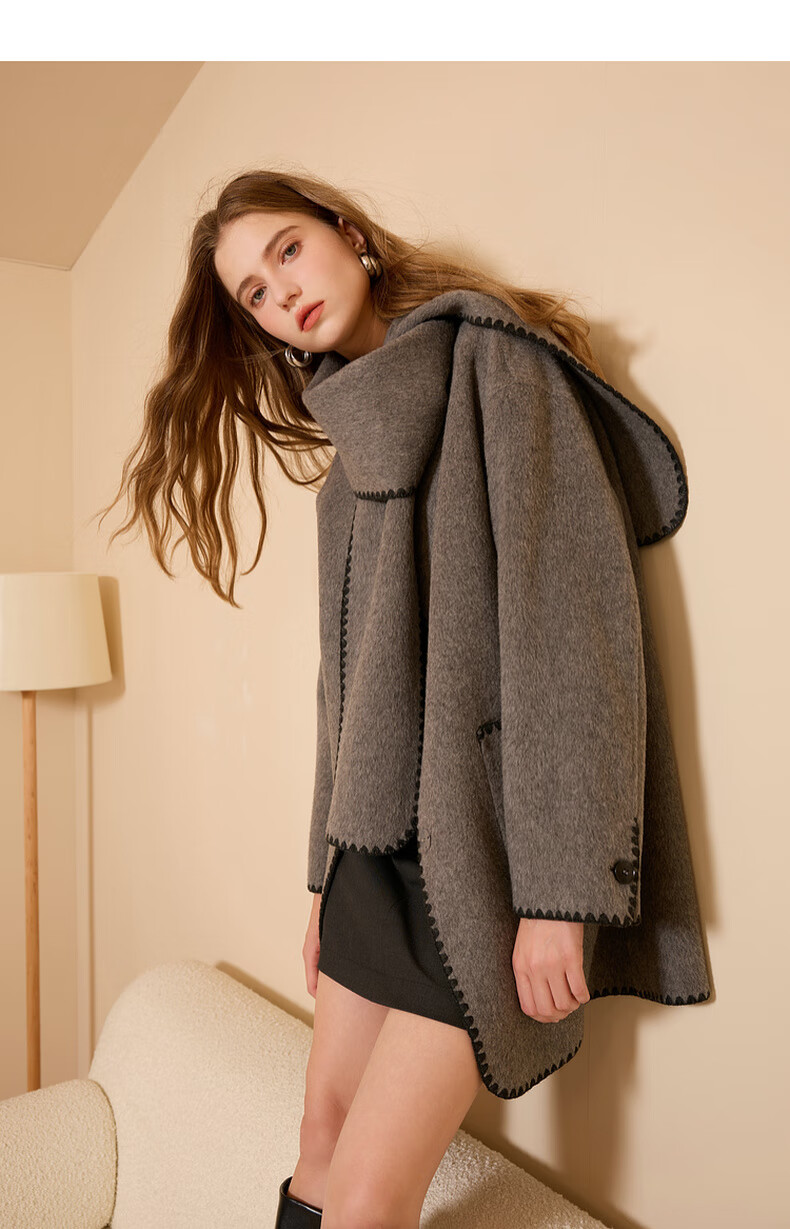 Sancai Ingenious Coat 100 Sheep Wool Sancai 2025 Winter New Gray Double-Sided Woolen Coat Women S