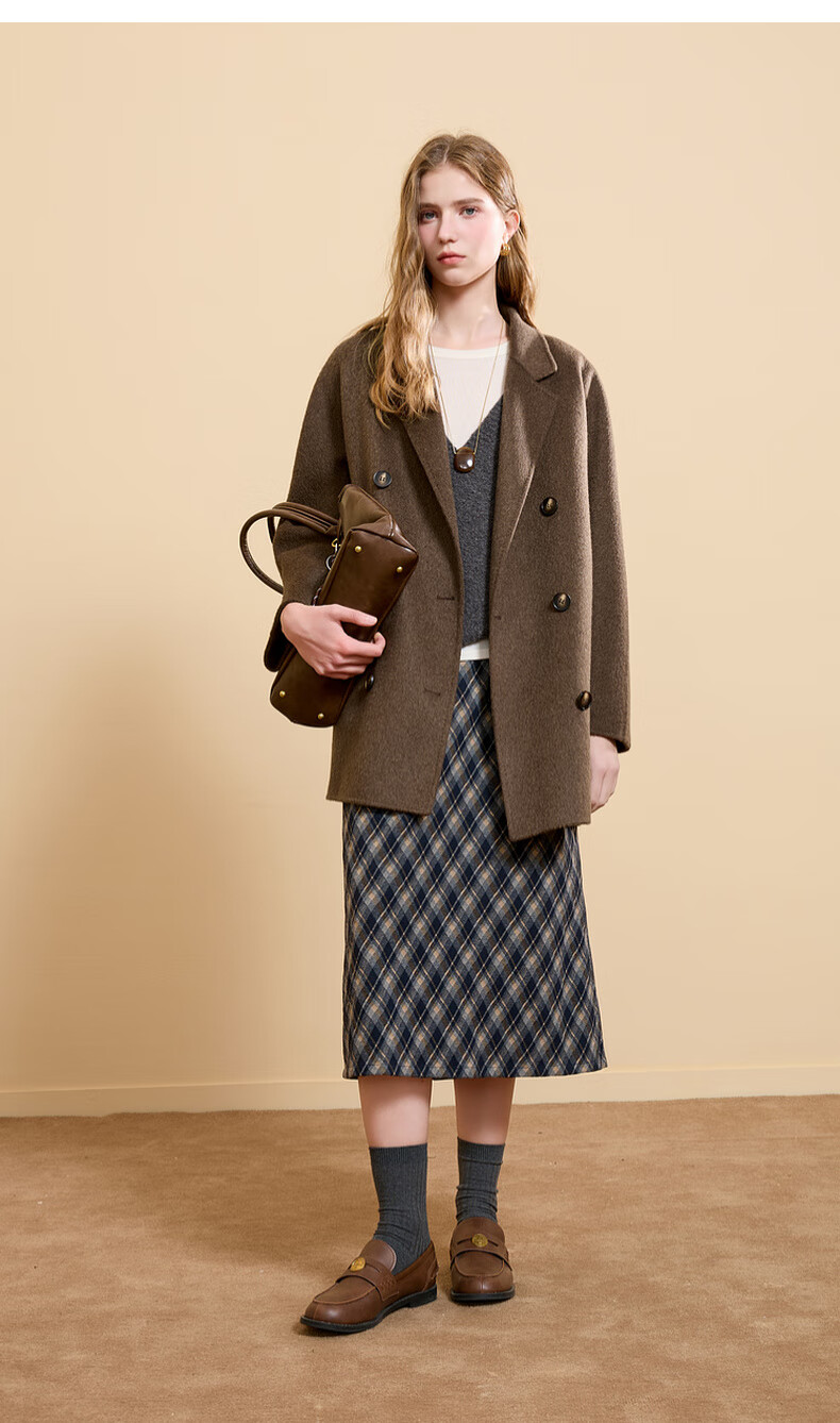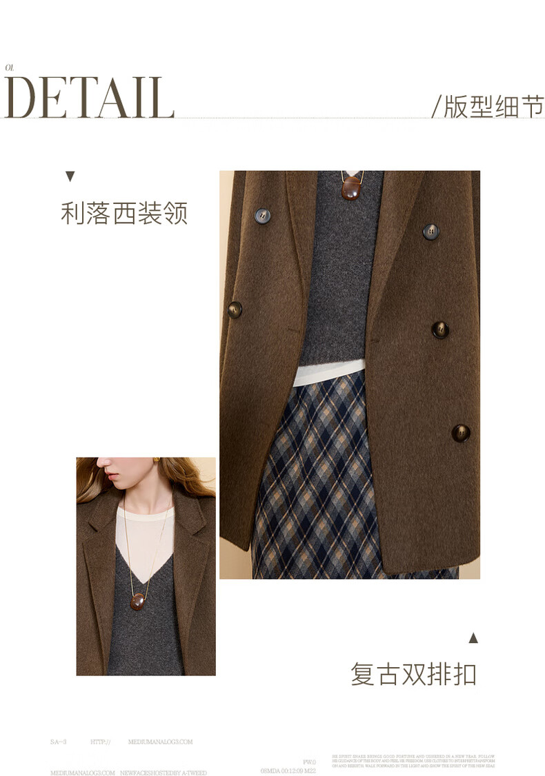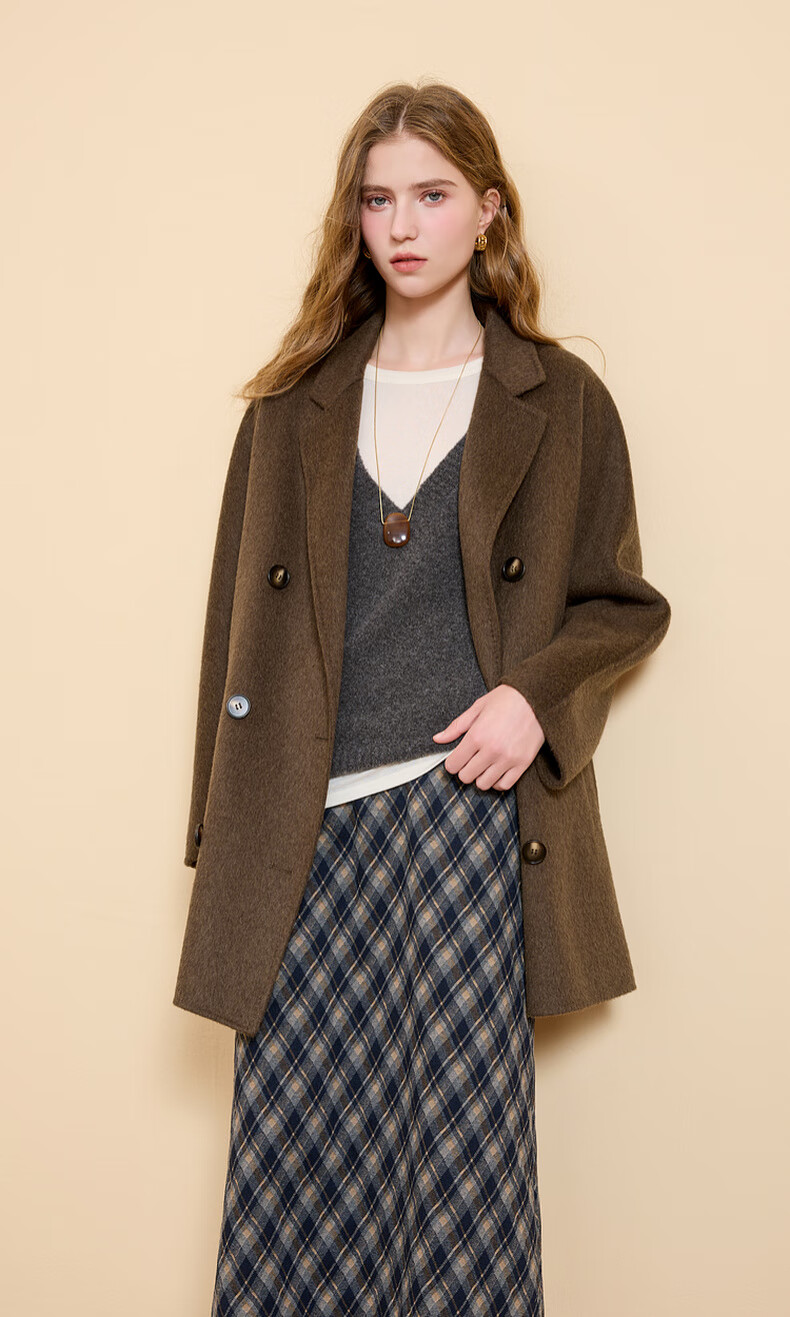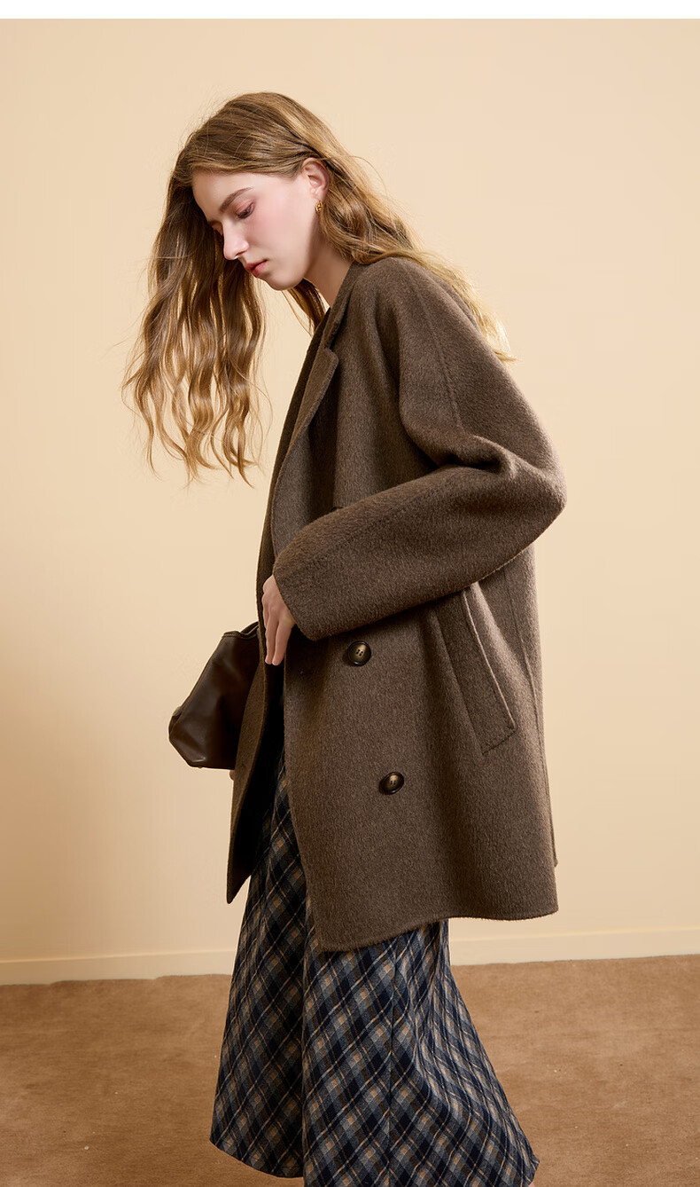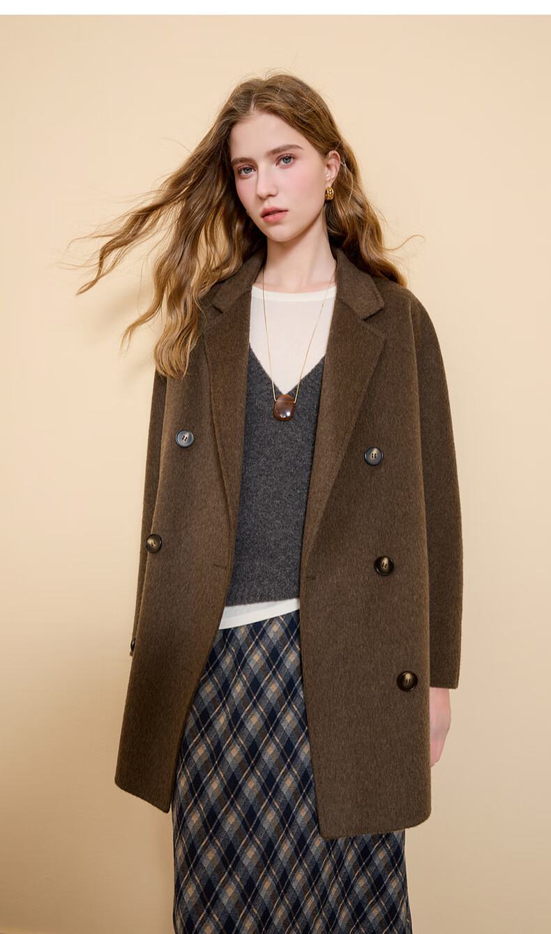 Tricolor 100 sheep wool 2025 winter new double-sided woolen coat double-breasted woolen coat M