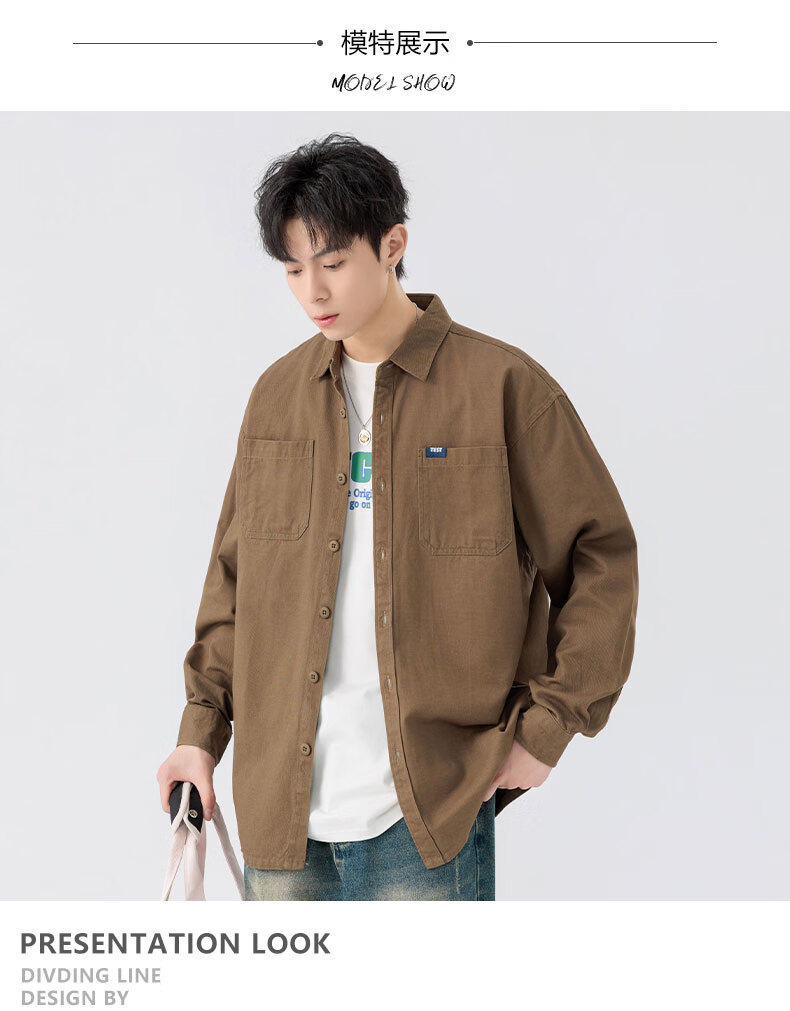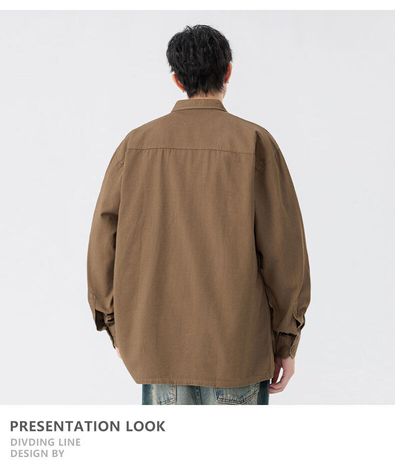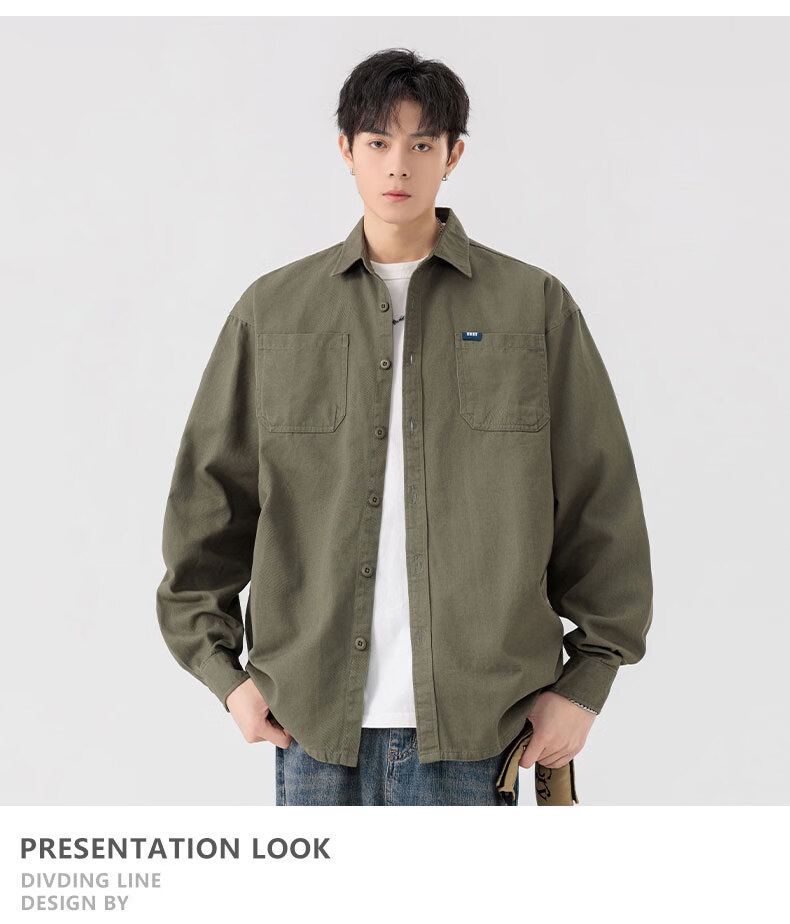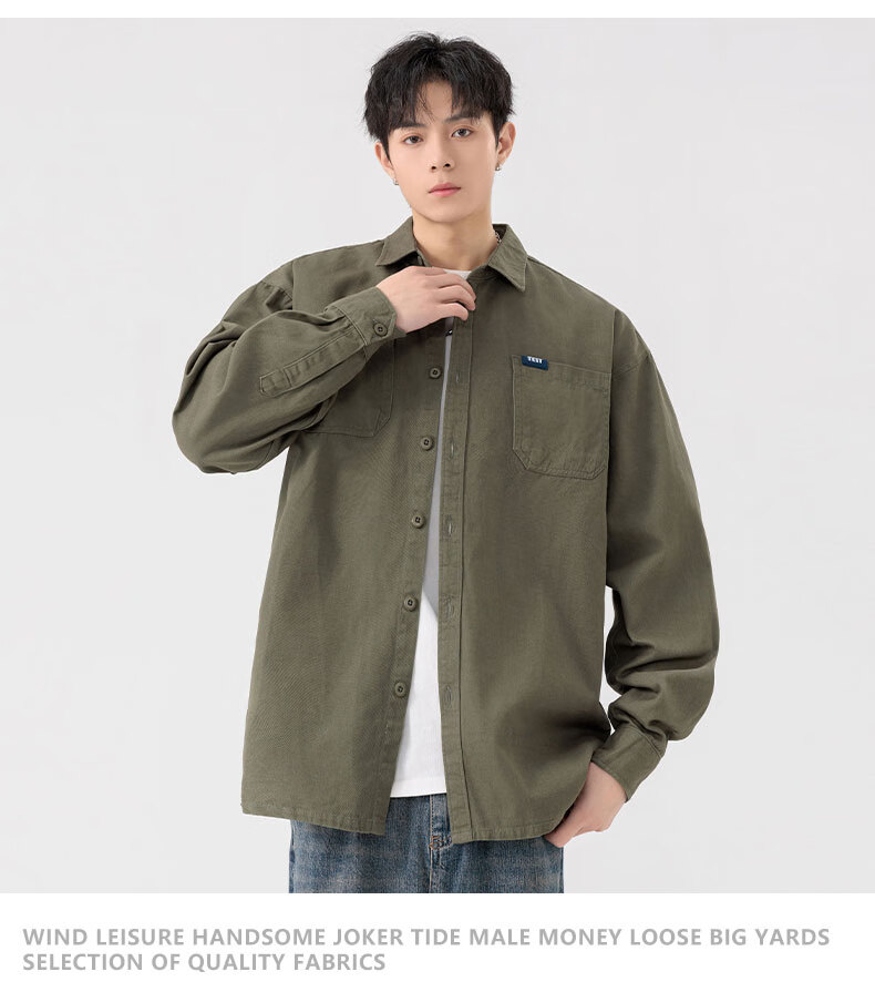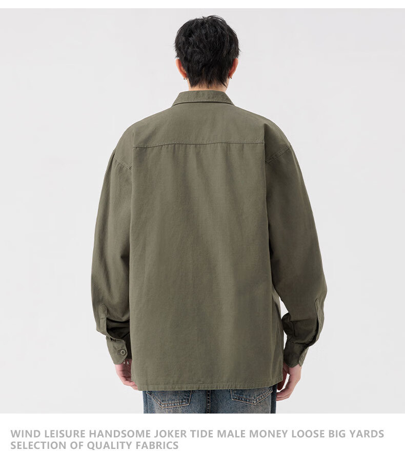 MONPOC Hong Kong style retro shirt men's spring and autumn style couple high-end casual long-sleeved shirt jacket MOC01 military green 4XL