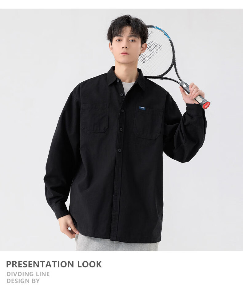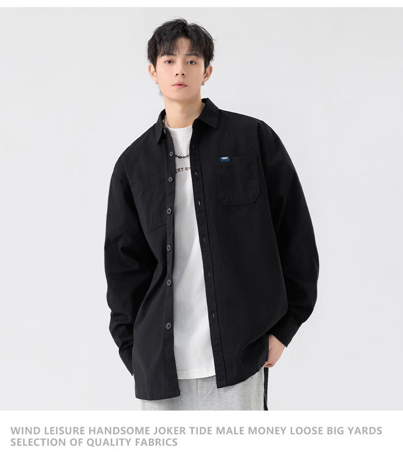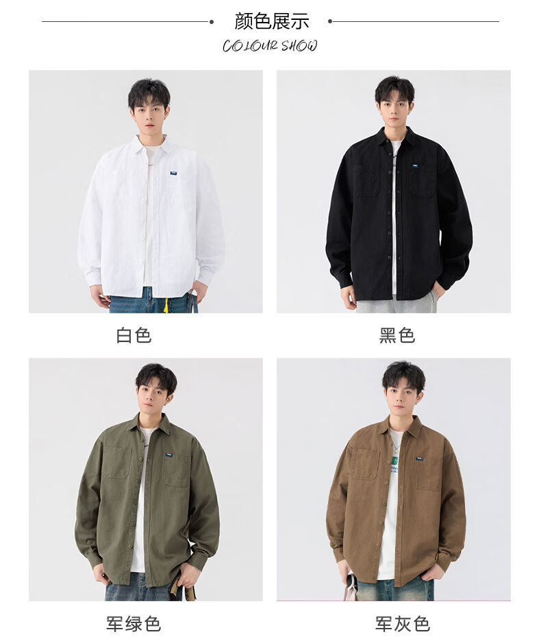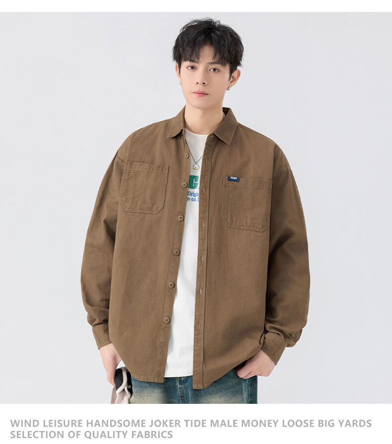 MONPOC Hong Kong style retro shirt men's spring and autumn style couple high-end casual long-sleeved shirt jacket MOC01 military green 4XL