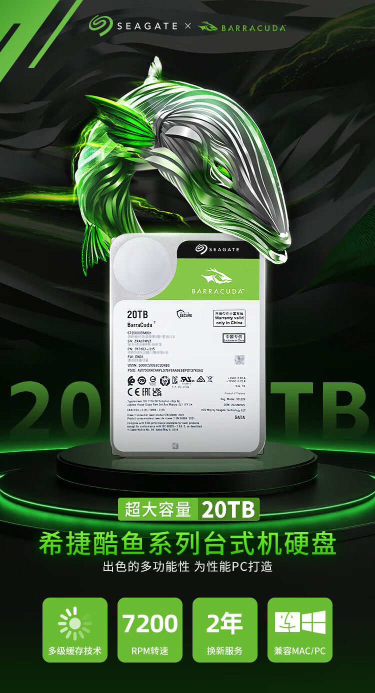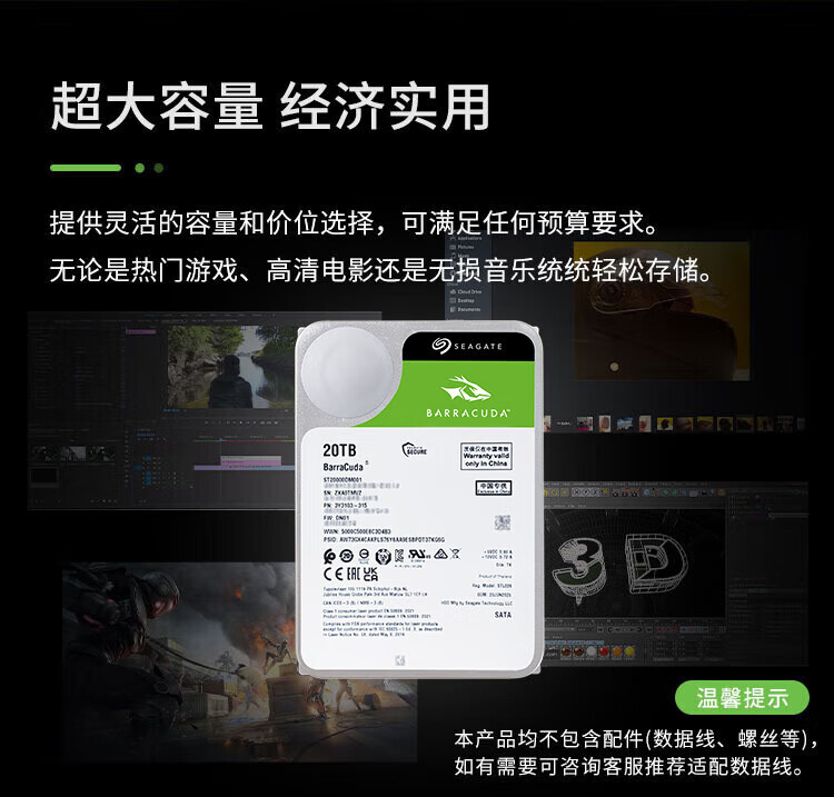 Seagate (SEAGATE) desktop hard drive 20TB 7200 rpm 512MB mechanical hard drive SATA Seagate Barracuda series computer hard drive 3.5 inches ST20000DM001
