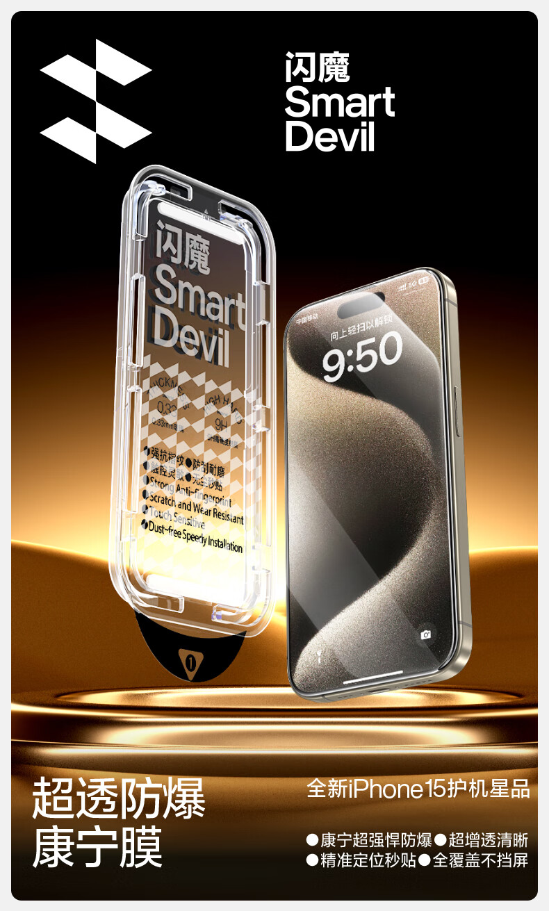 Flash Magic Tempered Film for iPhone 15promax Corning Film Apple 15promax mobile phone film Corning full coverage explosion-proof and fall-proof fingerprint-free dust-free warehouse