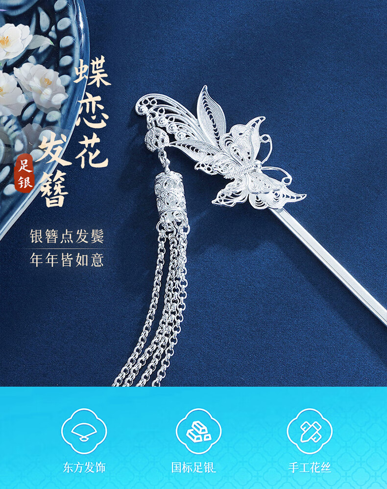 Enchanting cat sterling silver hairpin headwear for women, high-end 2025 antique style hairpin, practical ladies birthday gift, niche high-end