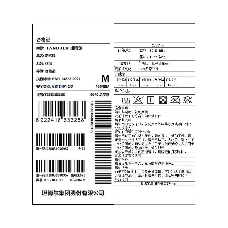 China (cm) 165 / 88-90 170 / 96-98 175 / 108-110 180 / 118-122 185 / 126-130