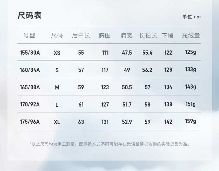 China (cm) 160-165/84-86 165-170 / 88-90 167-172 / 92-96 168-173 / 98-102 170-176 / 106-110