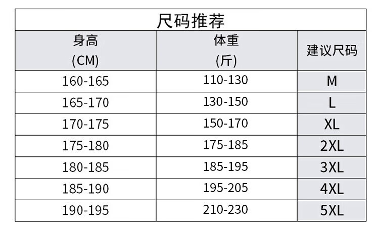 China (cm) 165 / 88-90 170 / 96-98 175 / 108-110 180 / 118-122 185 / 126-130