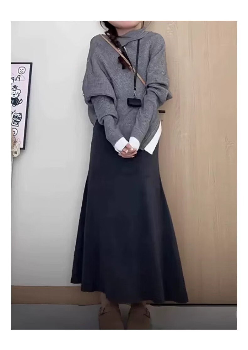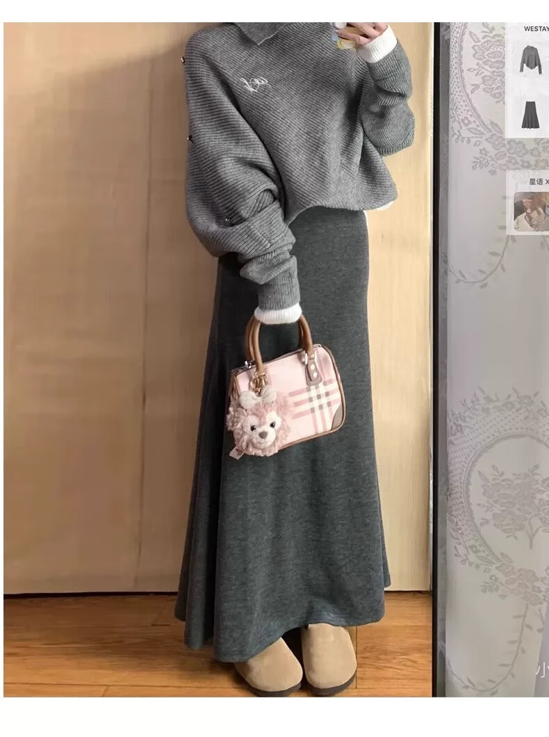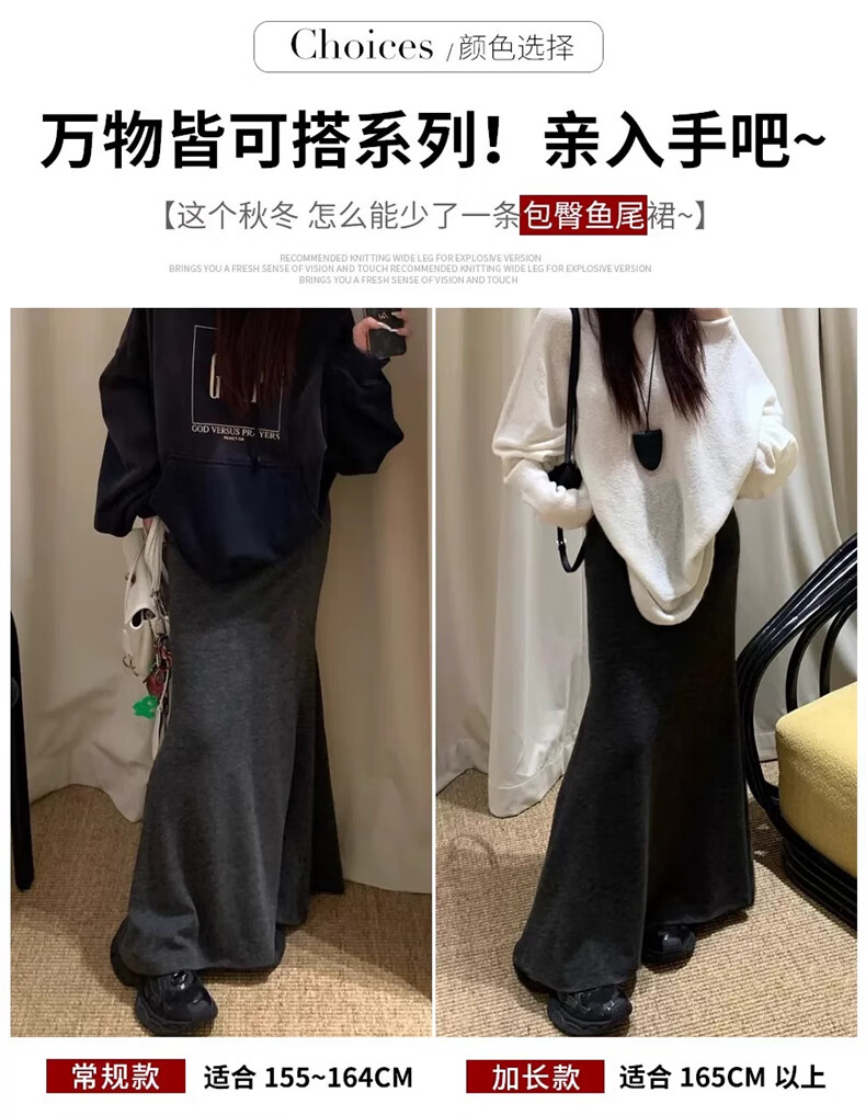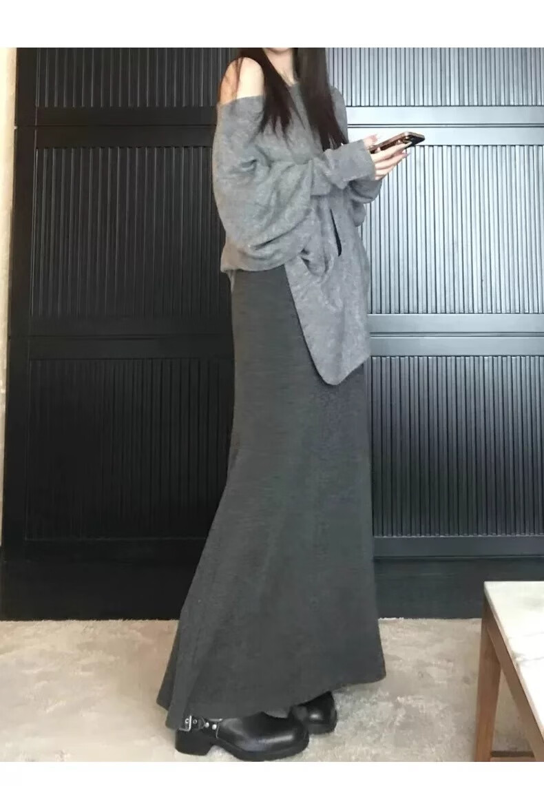 Langsha fishtail skirt women's autumn and winter 2025 new knitted high-waist slimming A-line hip skirt temperament high-end skirt
