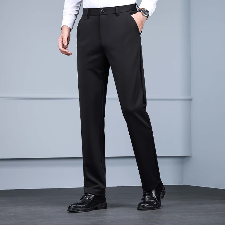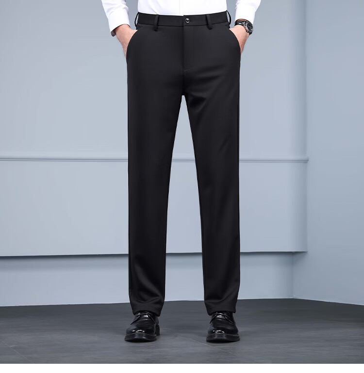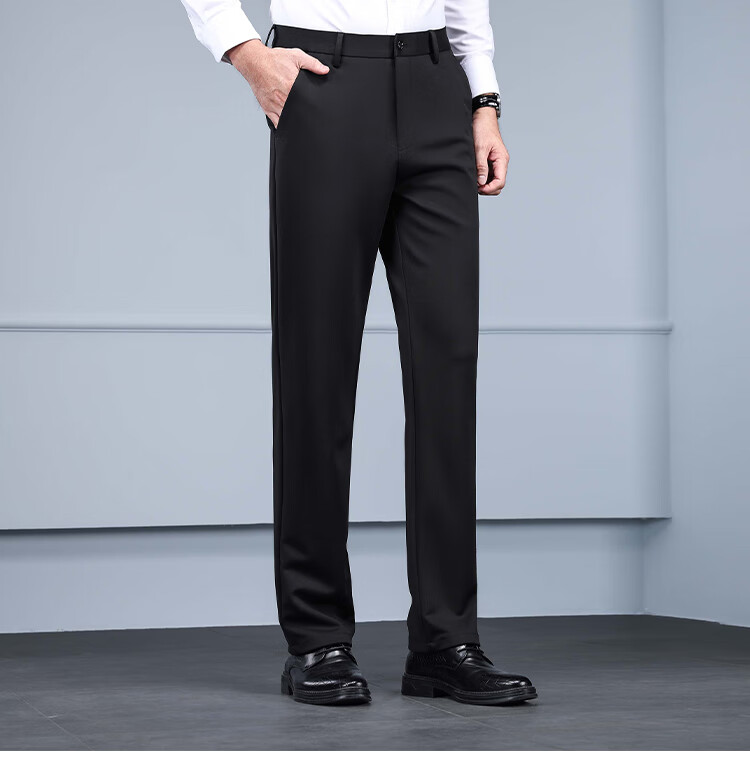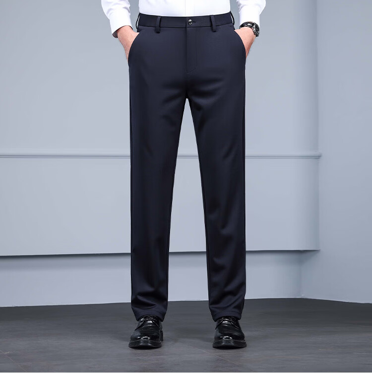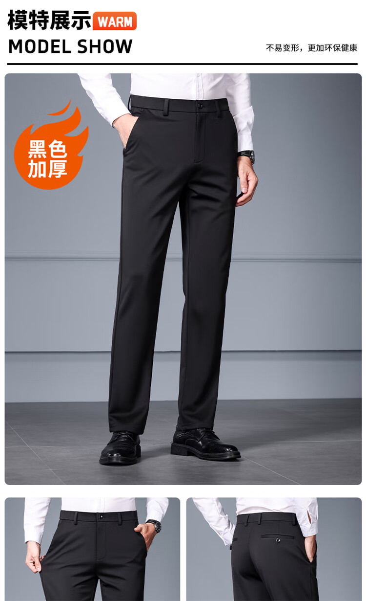 RED DRAGONFLY Casual Pants Men's Autumn and Winter Thick Suit Pants for Young and Middle-aged Business Commuting Elastic Versatile Loose Men's Long Pants Black 33