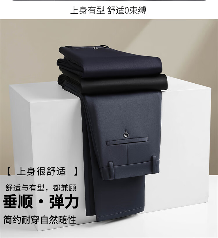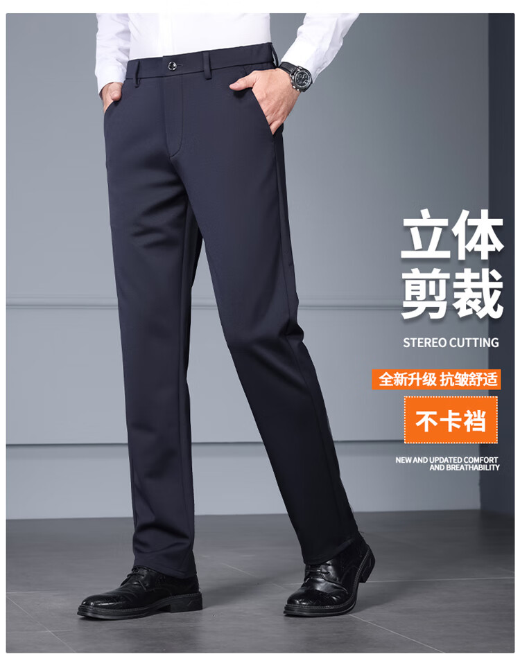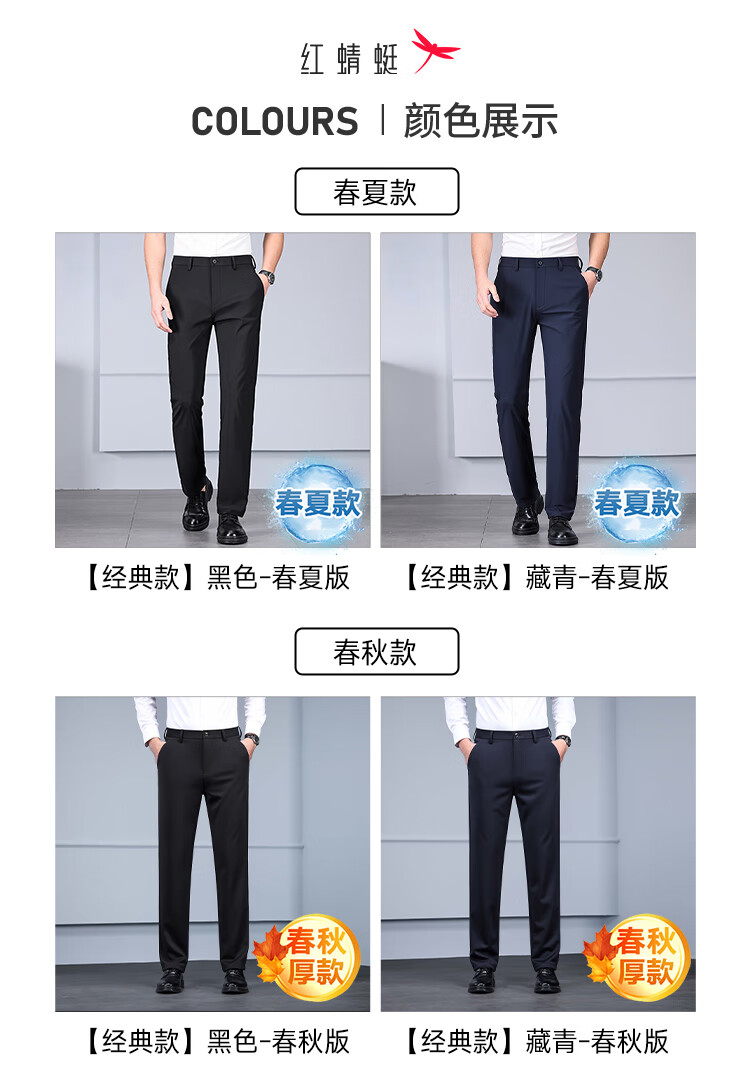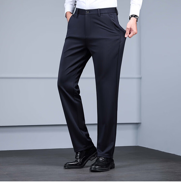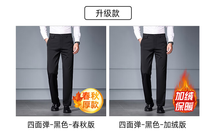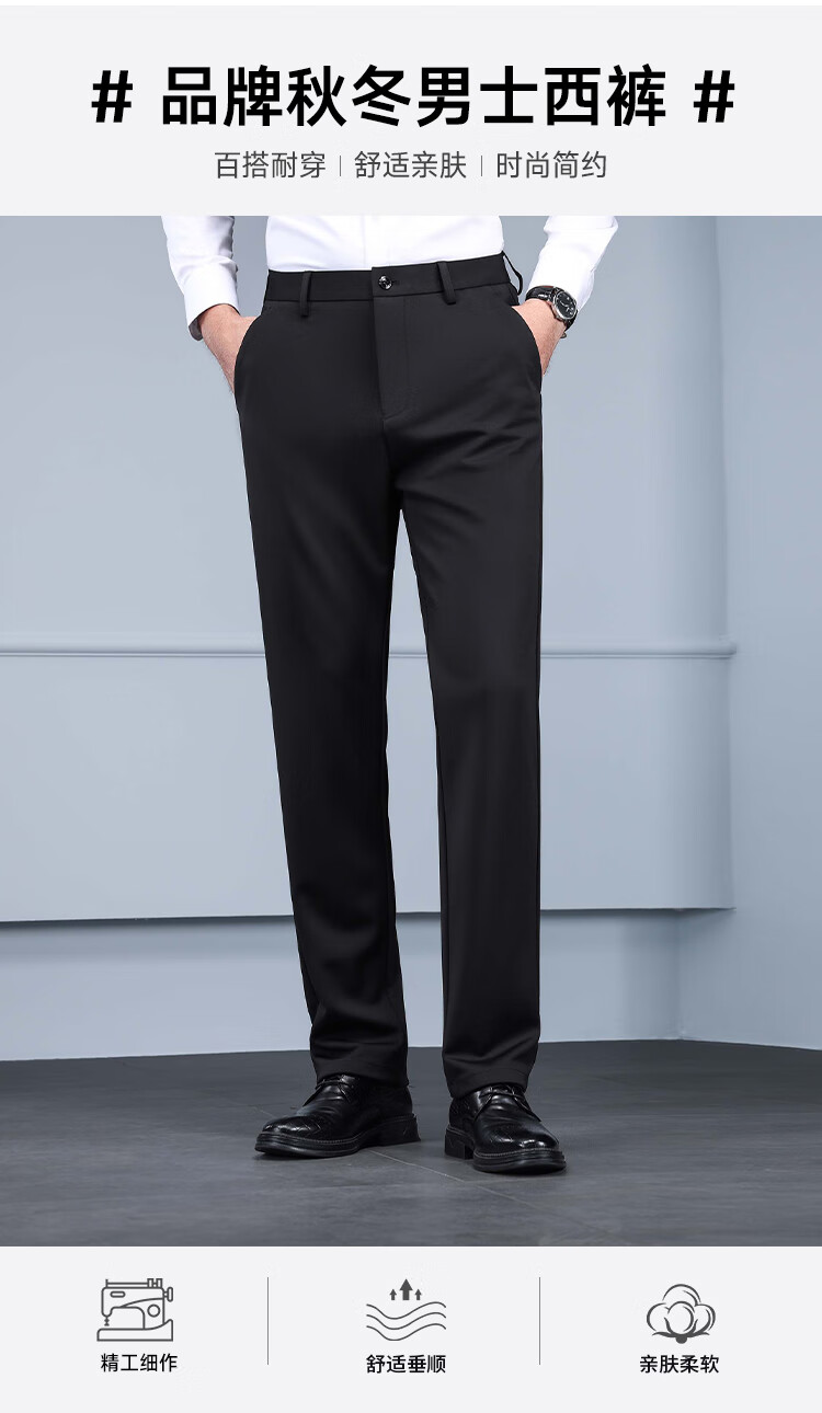 RED DRAGONFLY Casual Pants Men's Autumn and Winter Thick Suit Pants for Young and Middle-aged Business Commuting Elastic Versatile Loose Men's Long Pants Black 33