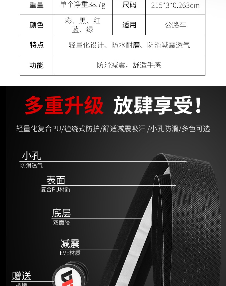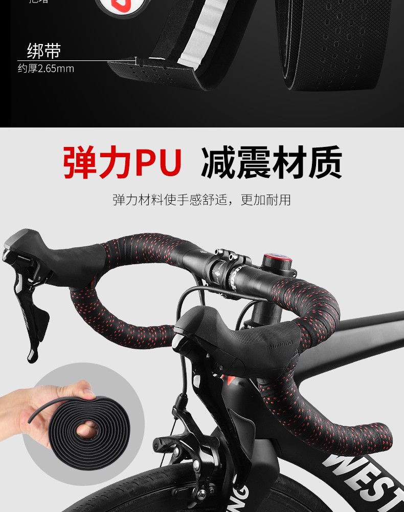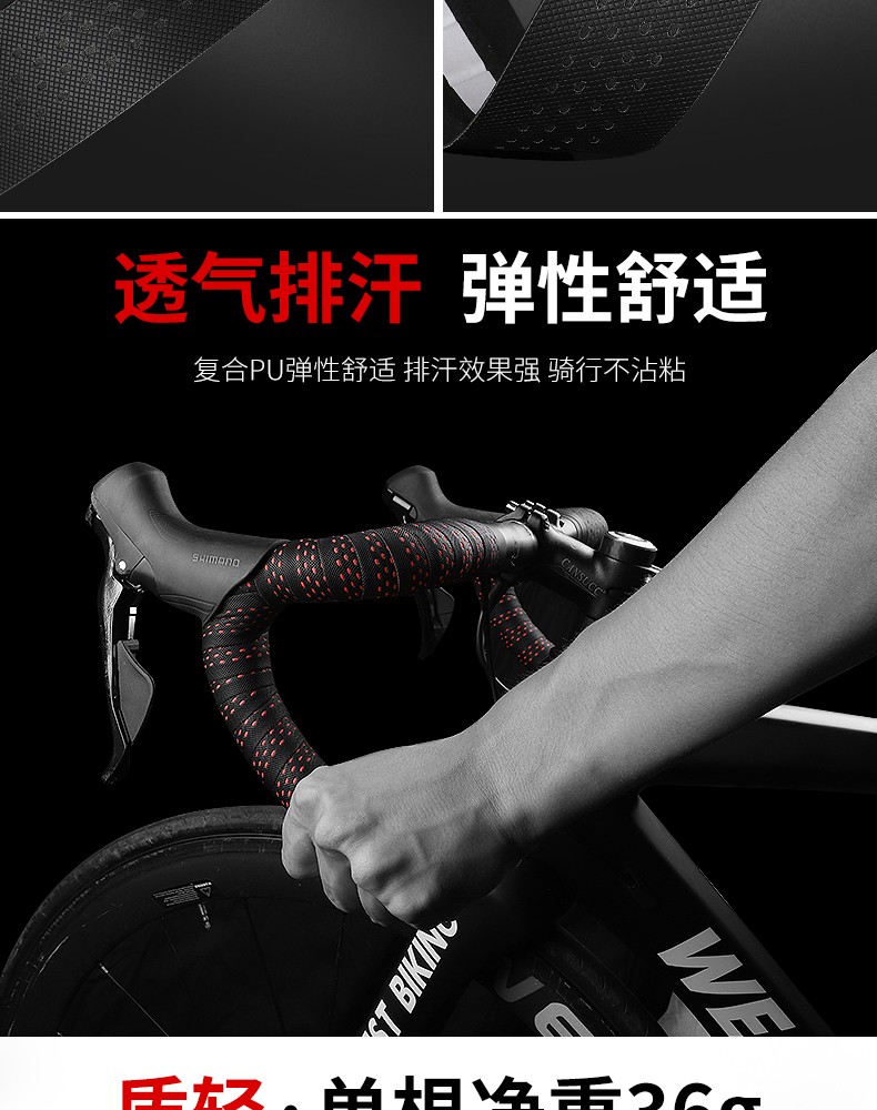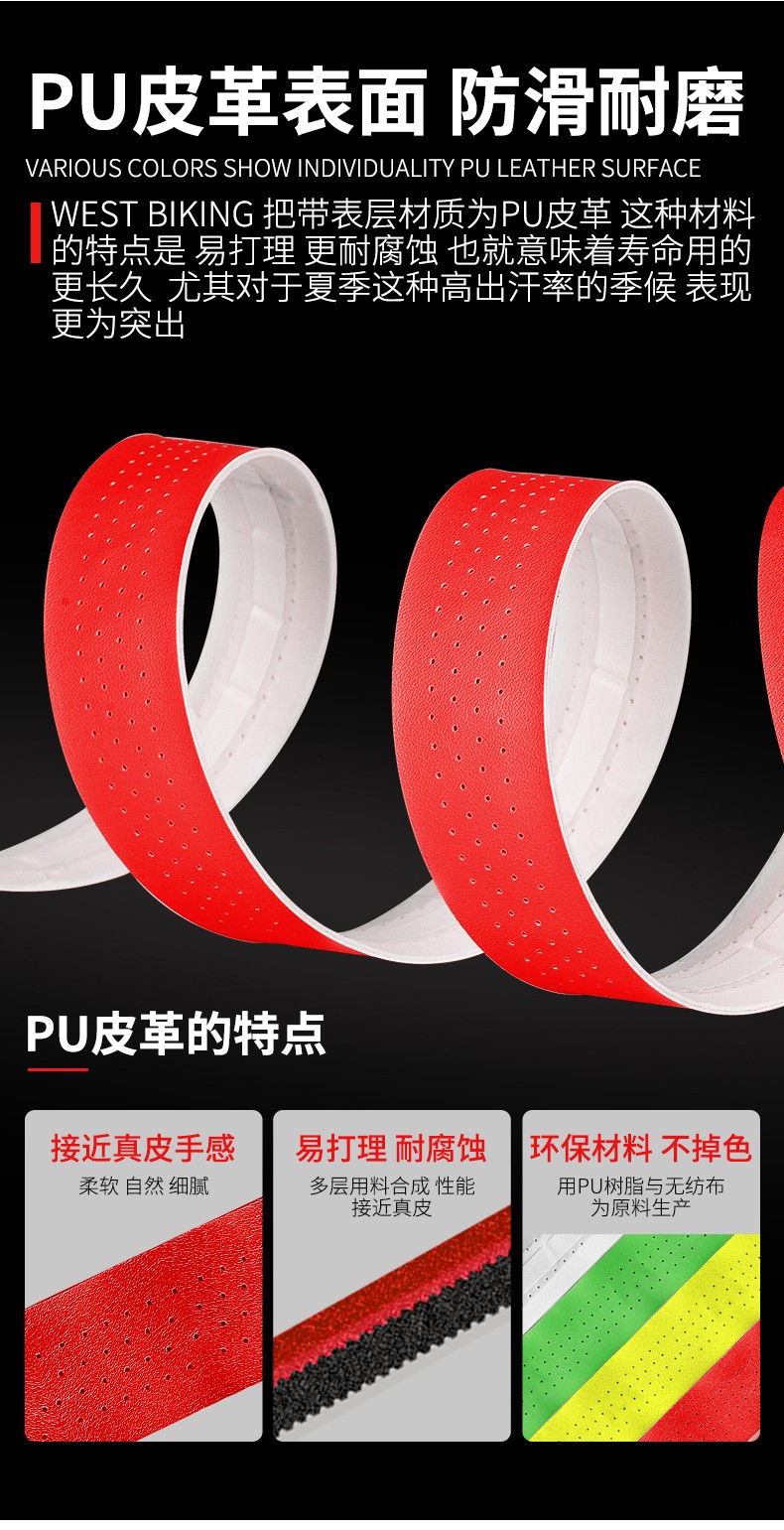 WEST BIKING road handlebar with bicycle handlebar strap anti-slip strap colorful dead speed bike strap accessories solid color with holes and breathable black