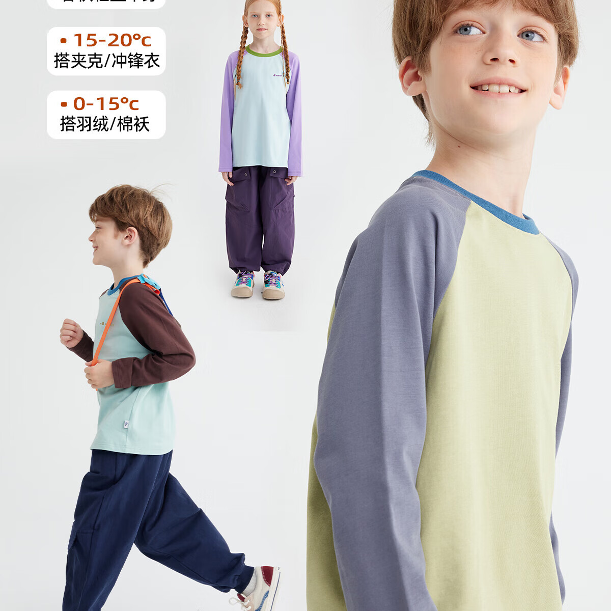 Gulu Diary Breathing Cotton Children's Long Sleeve T-Shirt Pure Cotton Long Sleeve Bottoming Shirt for Boys and Girls Brown and Blue 110