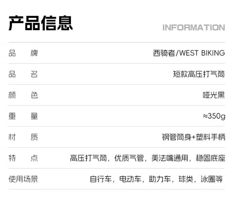 WestBiking bicycle pump household inflatable pump universal high pressure pump black with pump