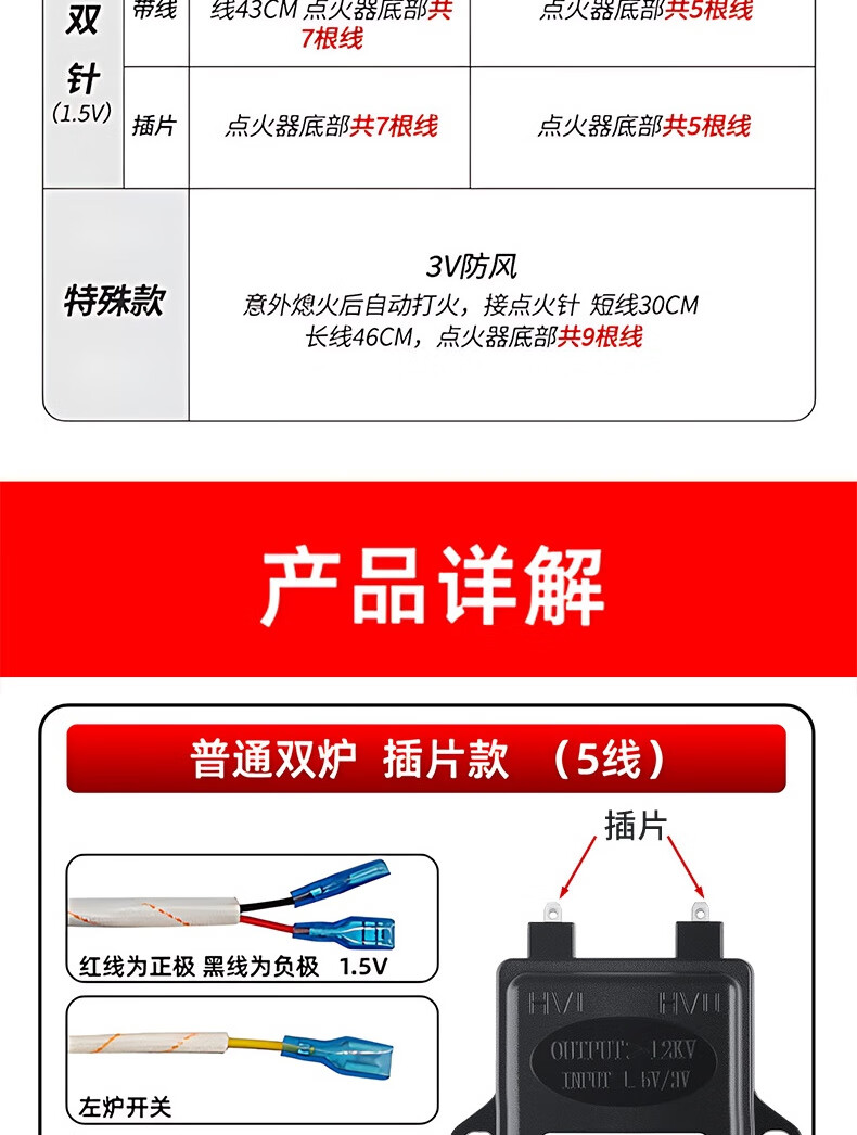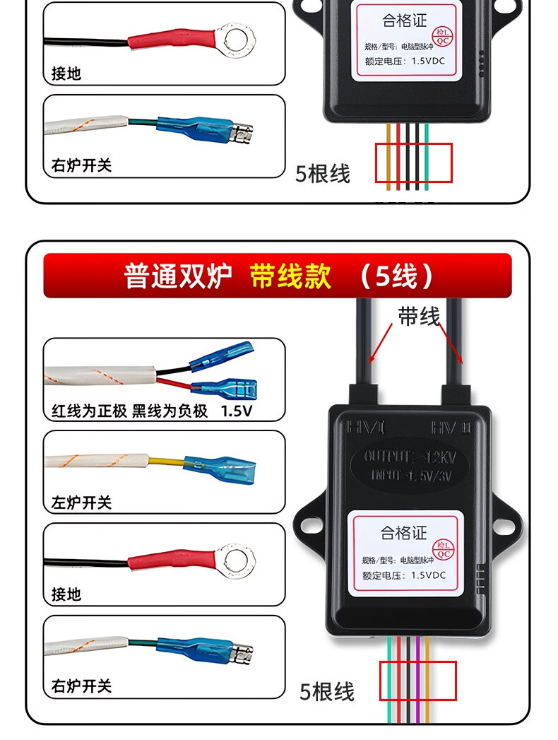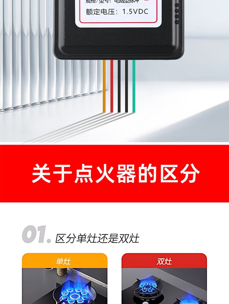 Bohuida is suitable for embedded double-burner gas stove pulse ignition controller with self-priming solenoid valve and flameout protection natural gas stove accessories. Double stove 1.5V pulse (with wire)