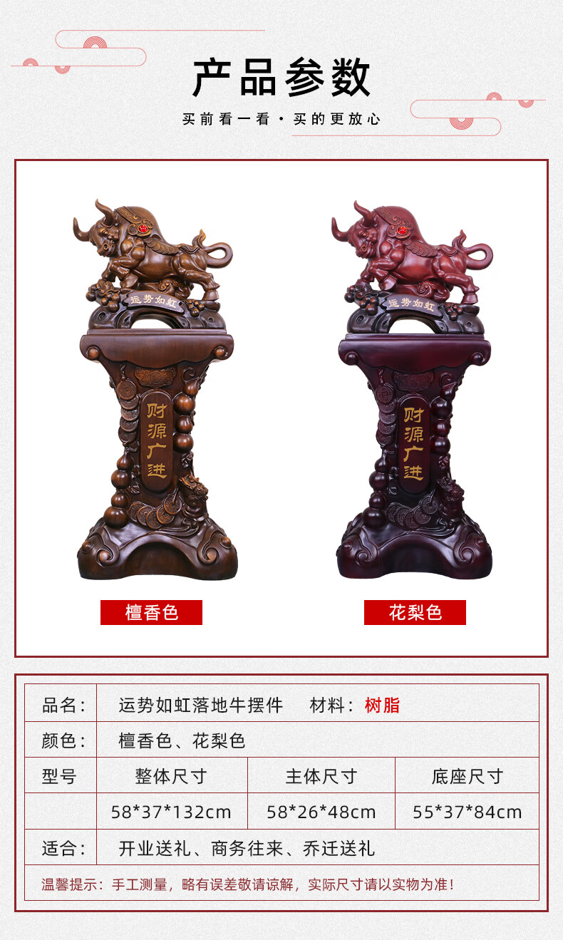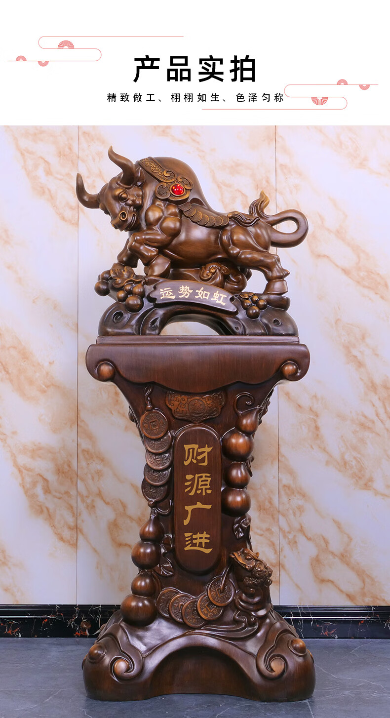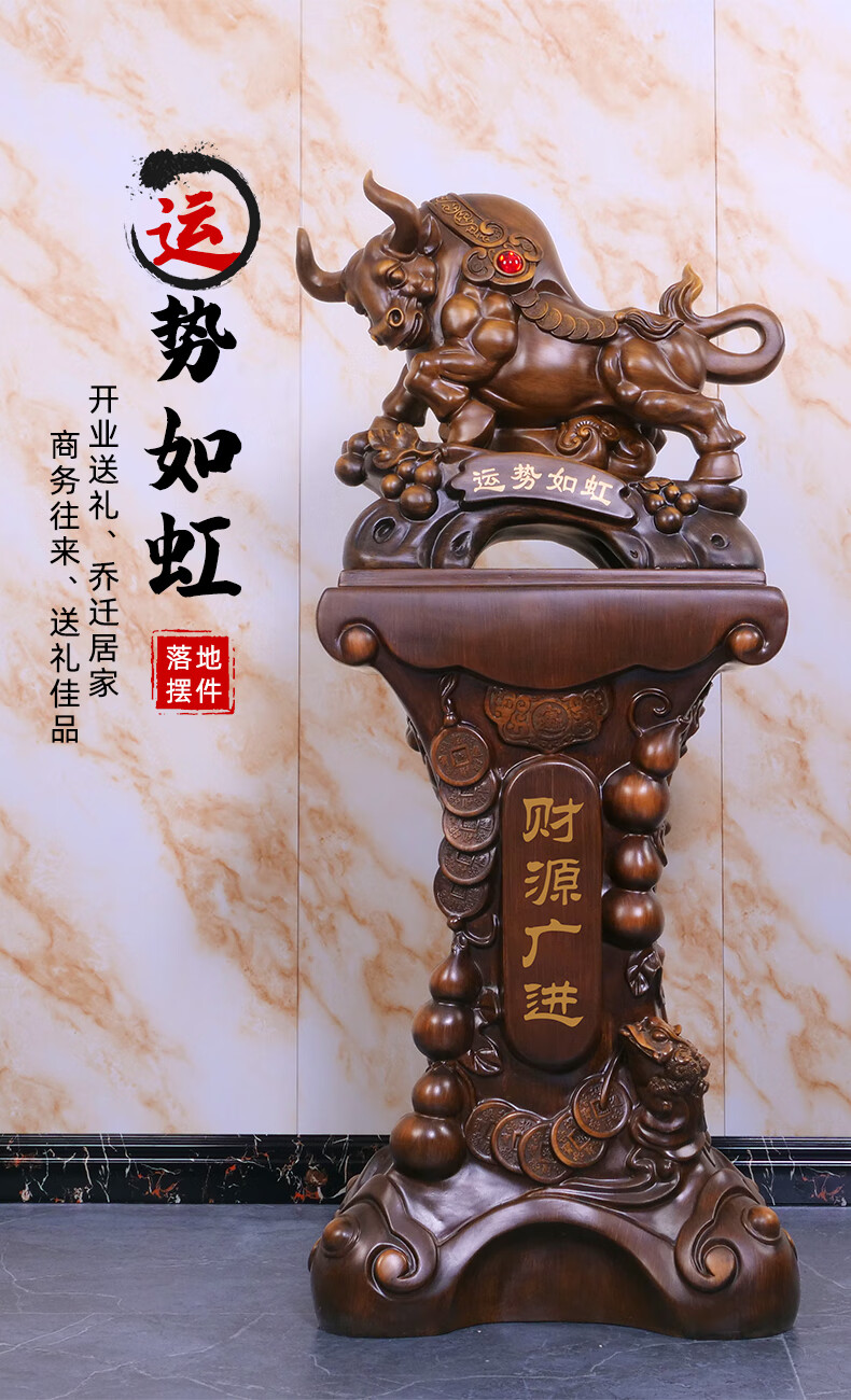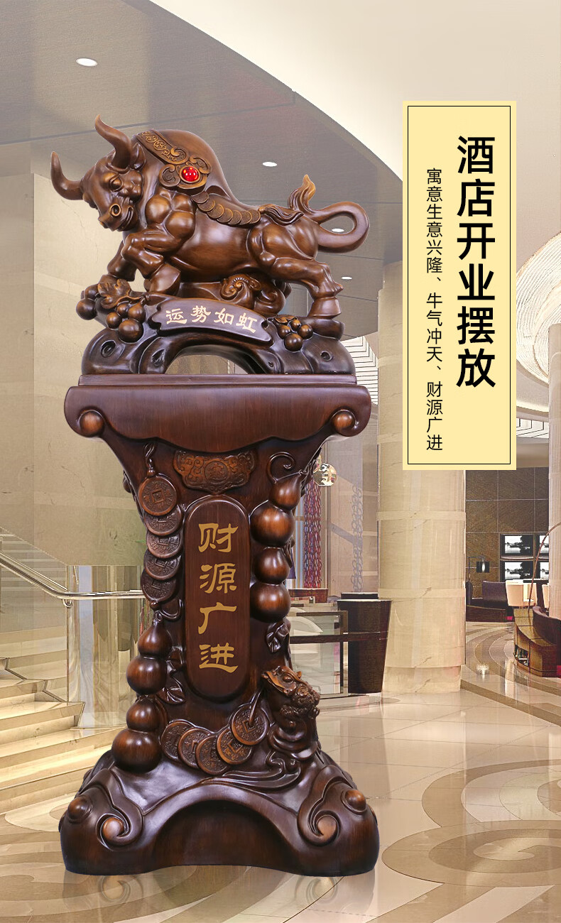 Dingxin Jingcheng cow ornaments, fortune is like a rainbow, company opening housewarming gift large ornaments, office God rewards those who work hard, floor-standing decorations 1.32 meters - fortune is like a rainbow, sandalwood color