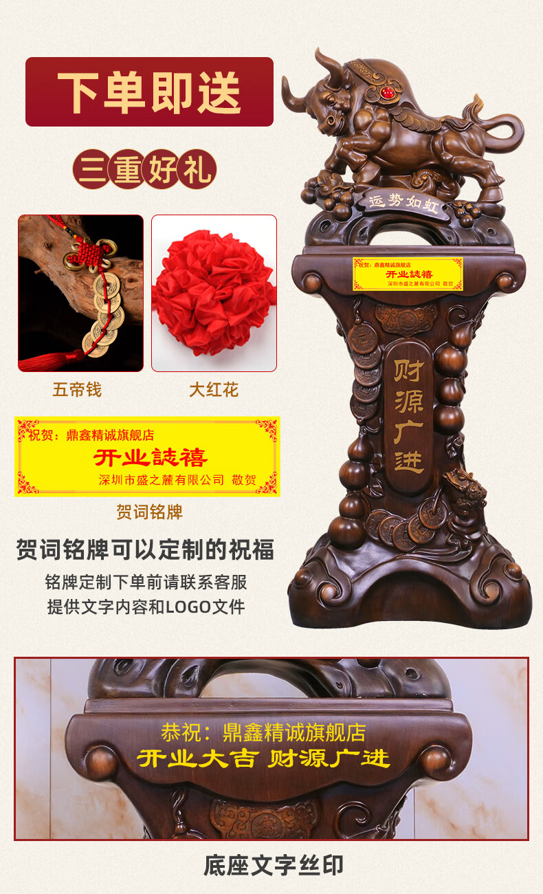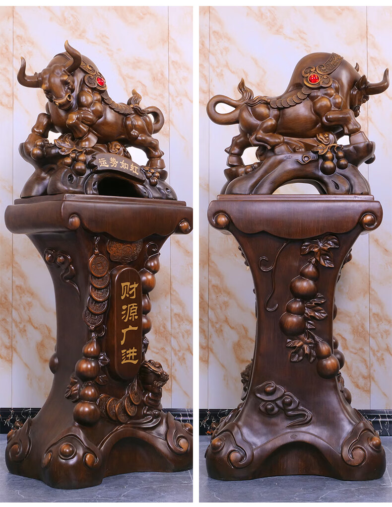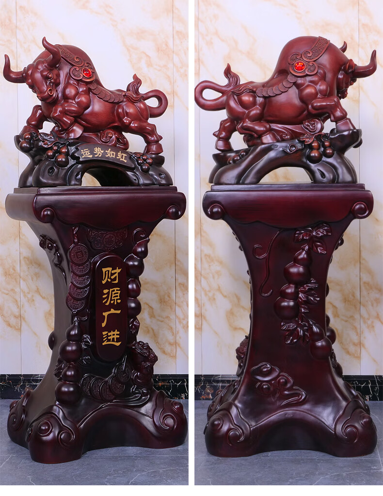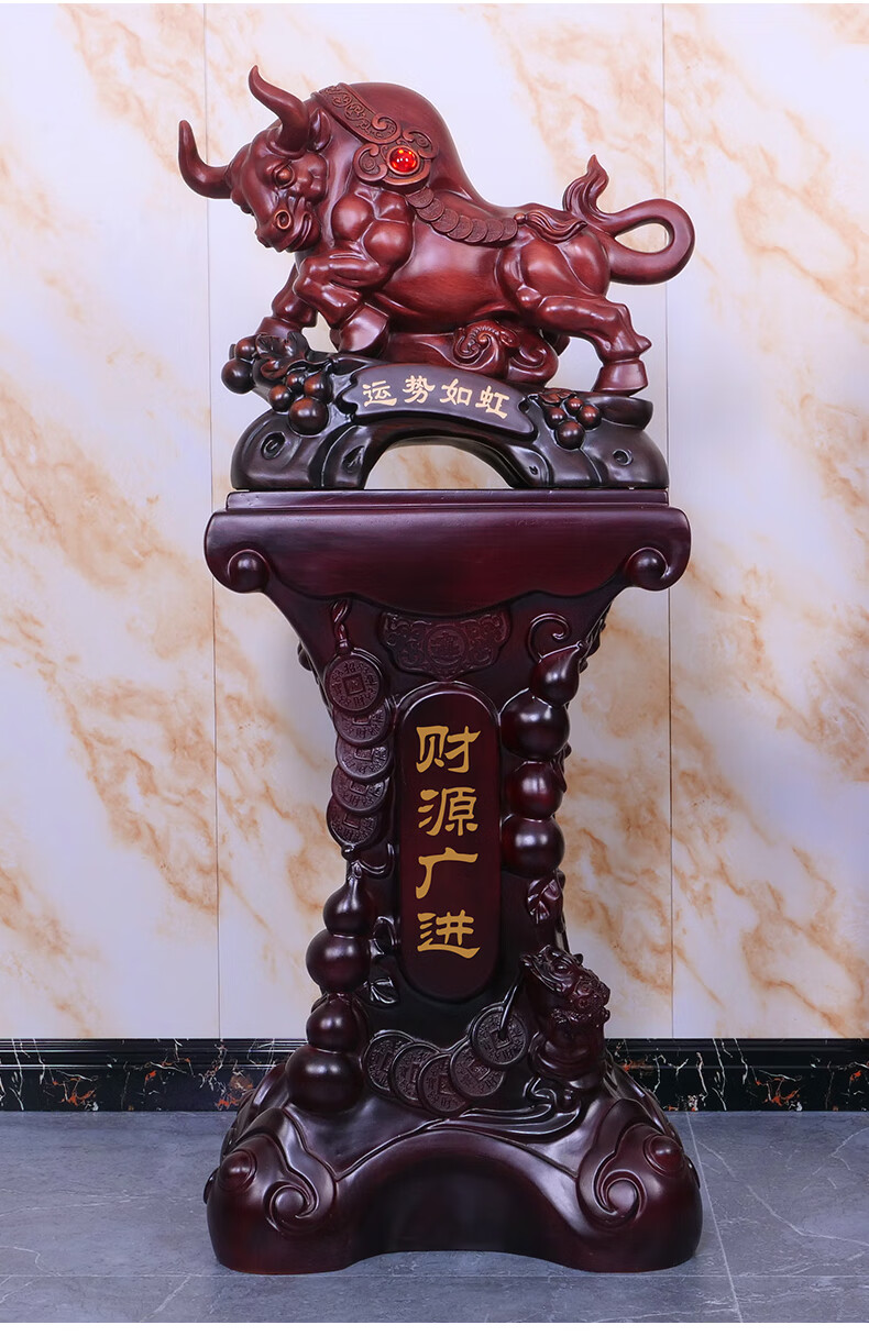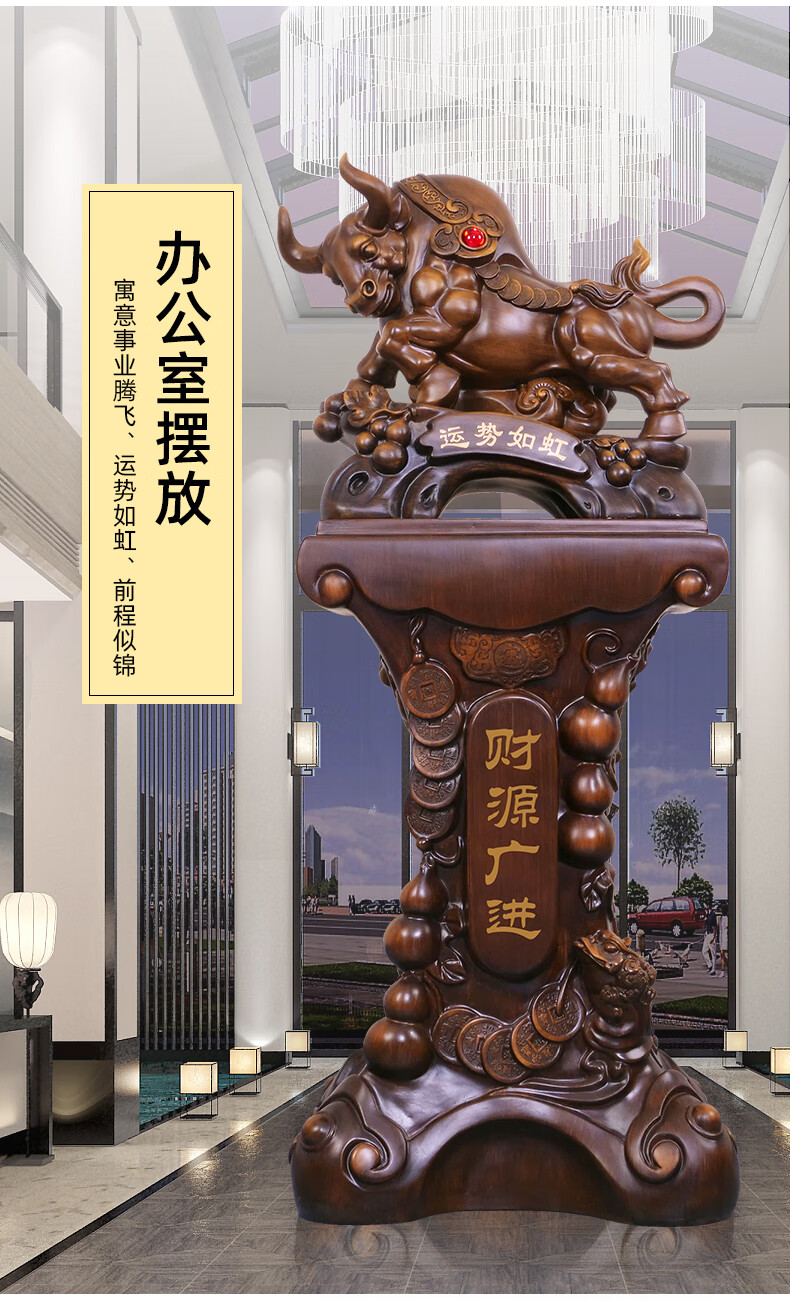 Dingxin Jingcheng cow ornaments, fortune is like a rainbow, company opening housewarming gift large ornaments, office God rewards those who work hard, floor-standing decorations 1.32 meters - fortune is like a rainbow, sandalwood color