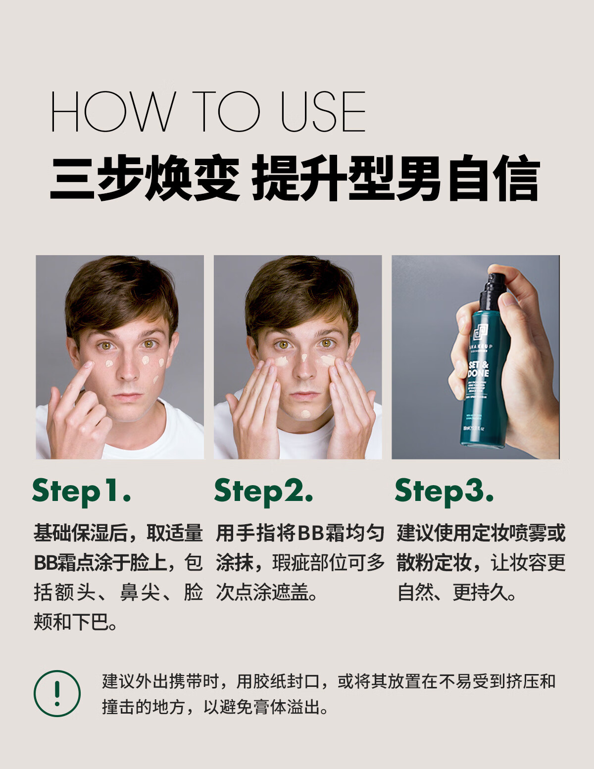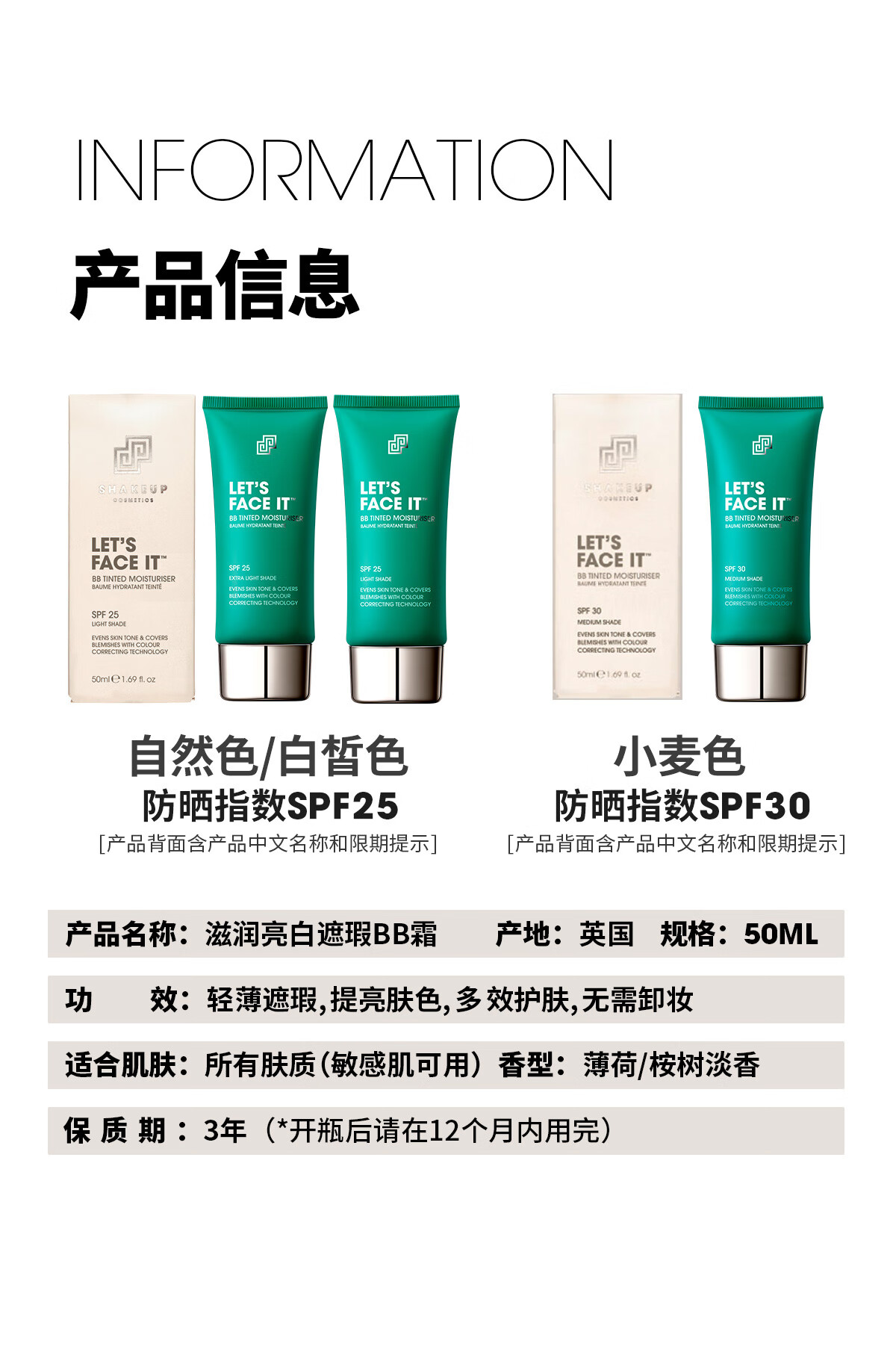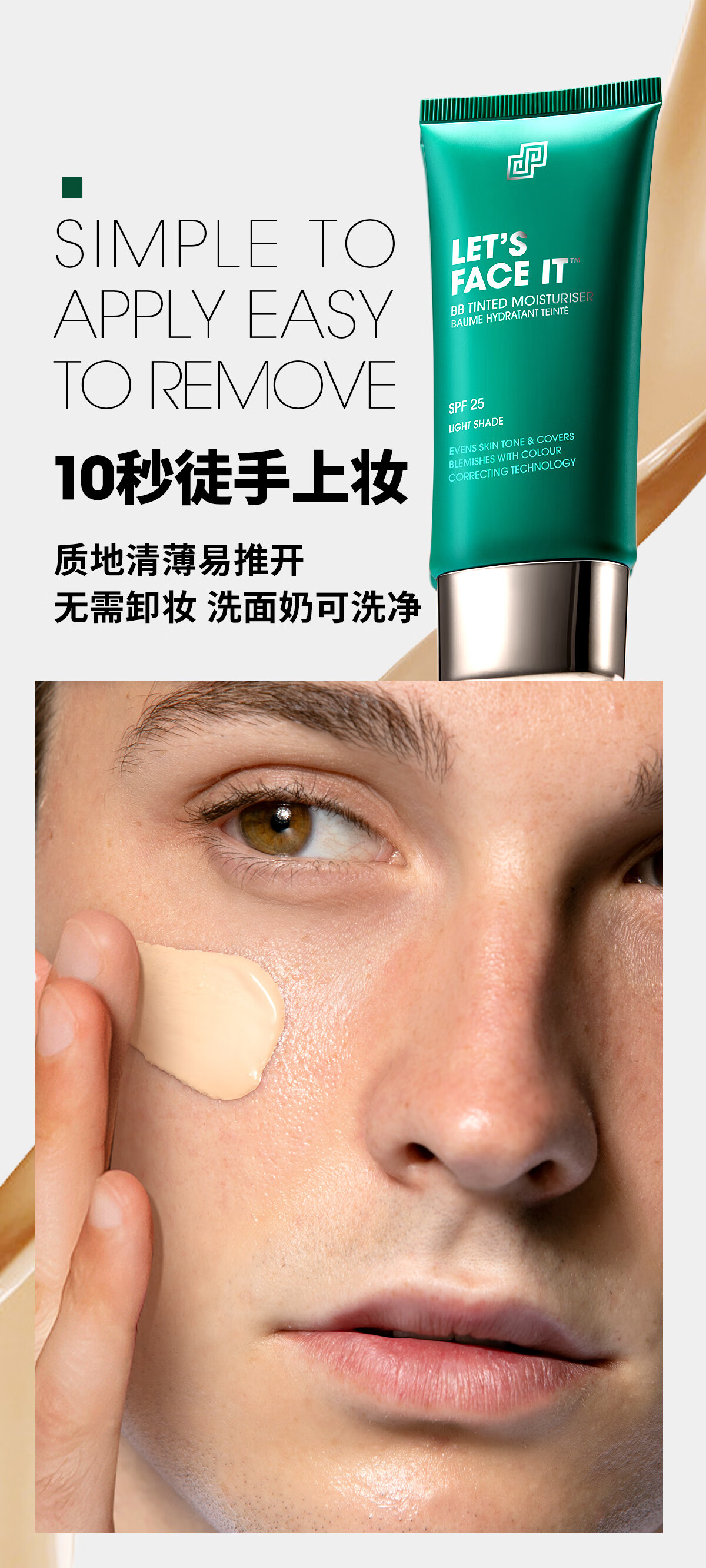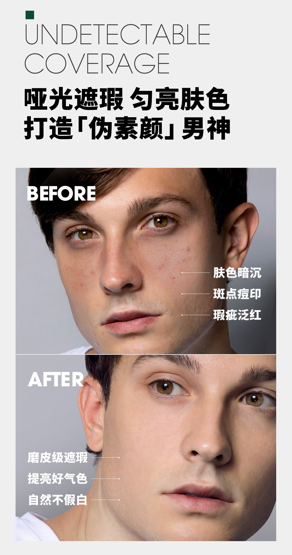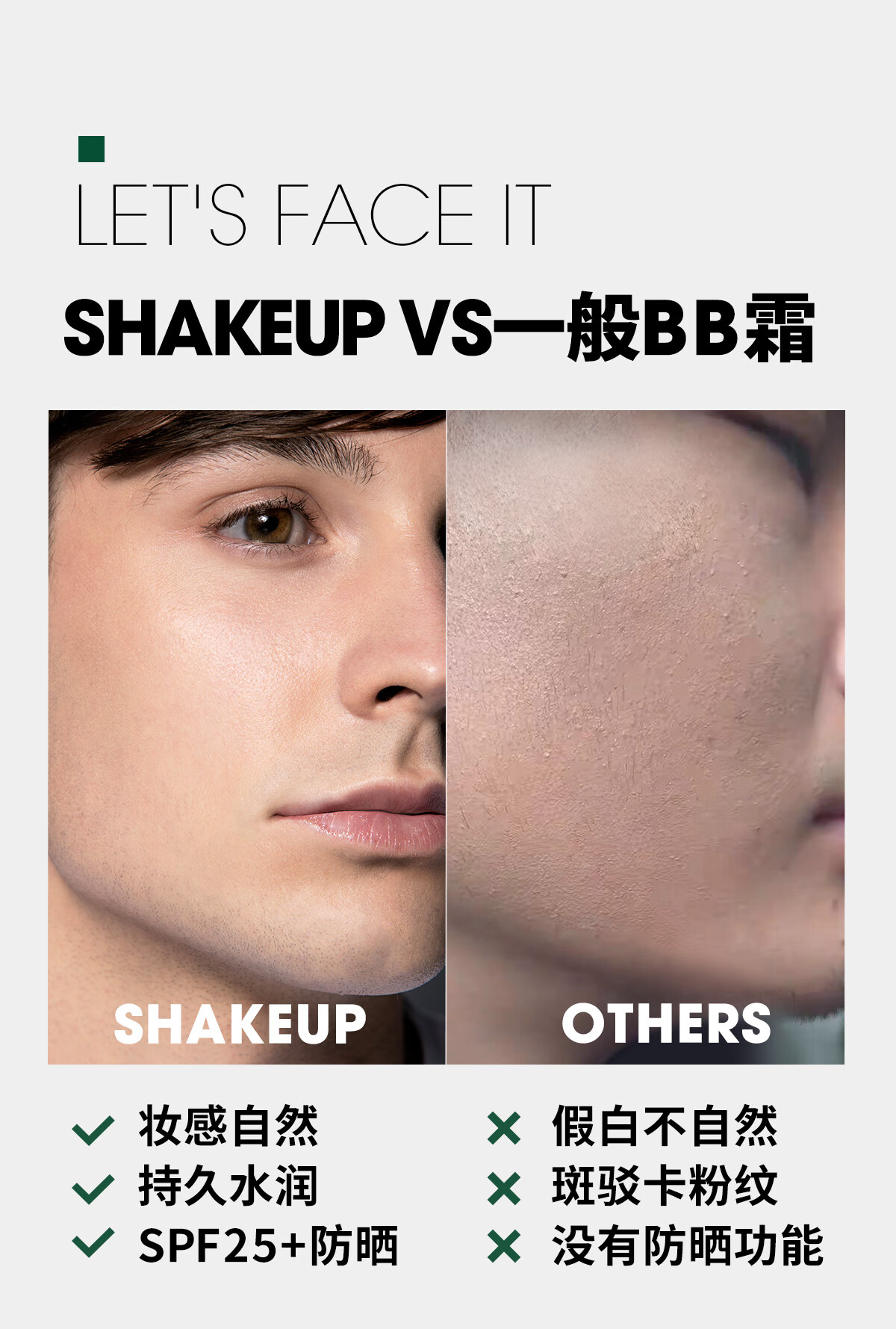 SHAKEUP Men's BB Cream No Makeup Cream Concealer No Fake White Natural Color Sunscreen Birthday Gift for Men 50ml*2