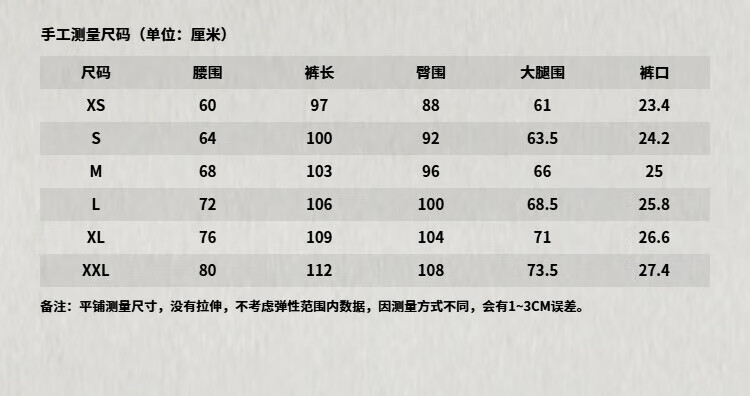 Outseam (cm) 99 cm 101.5 cm 104 cm 106.5 cm 109 cm