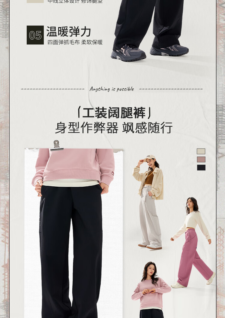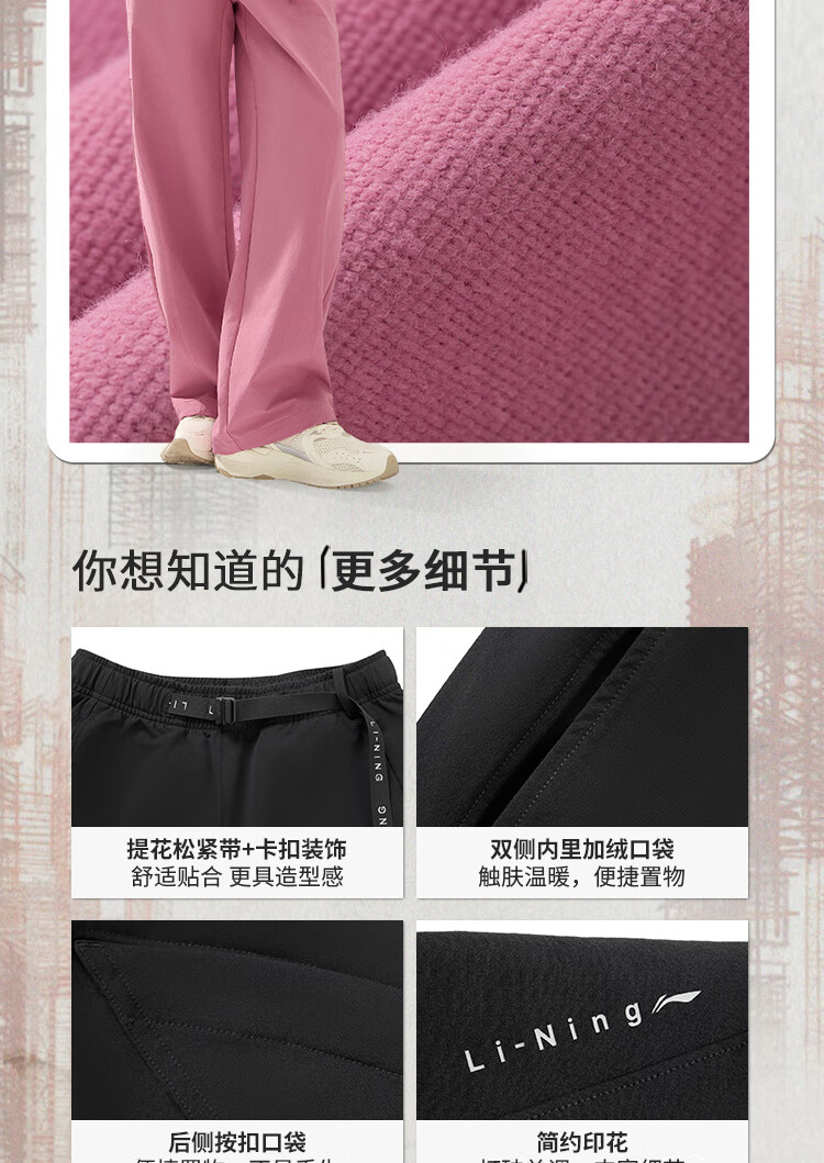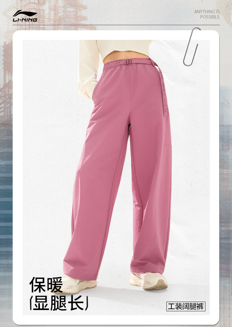 Li Ning velvet warm sports pants women's 25 autumn and winter soft and comfortable straight casual sports pants AYKV722