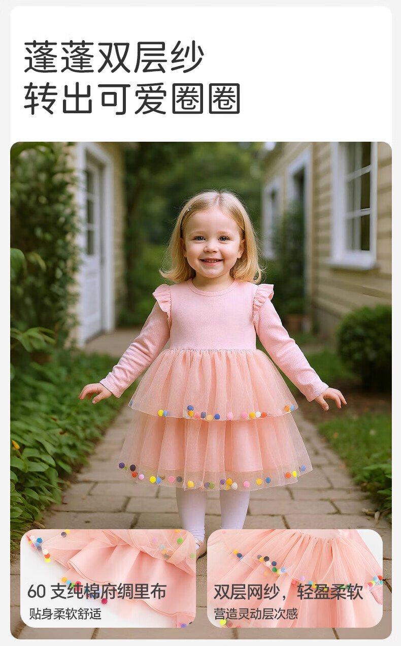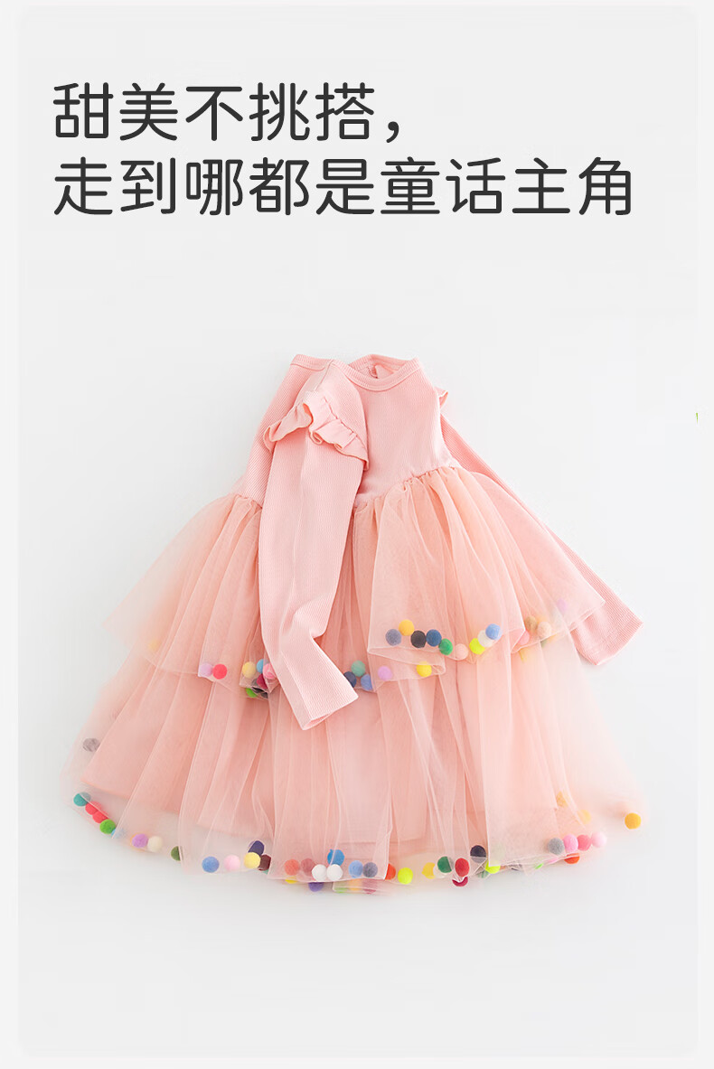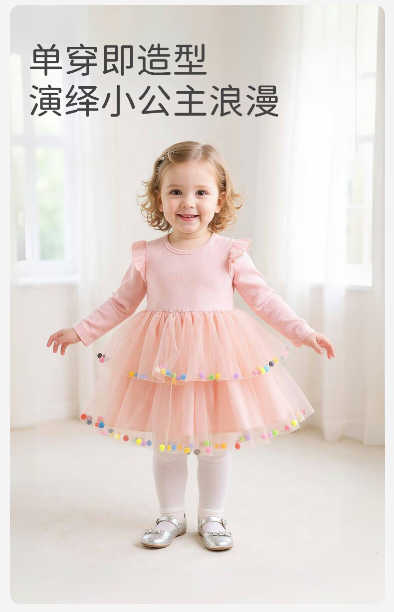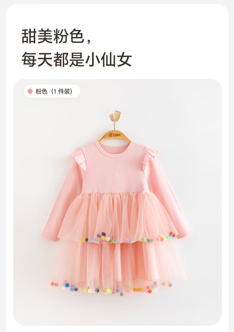 Berega (Babyprints) girl's dress sweet gauze skirt long-sleeved baby skirt spring and autumn princess skirt girl's first birthday dress 100