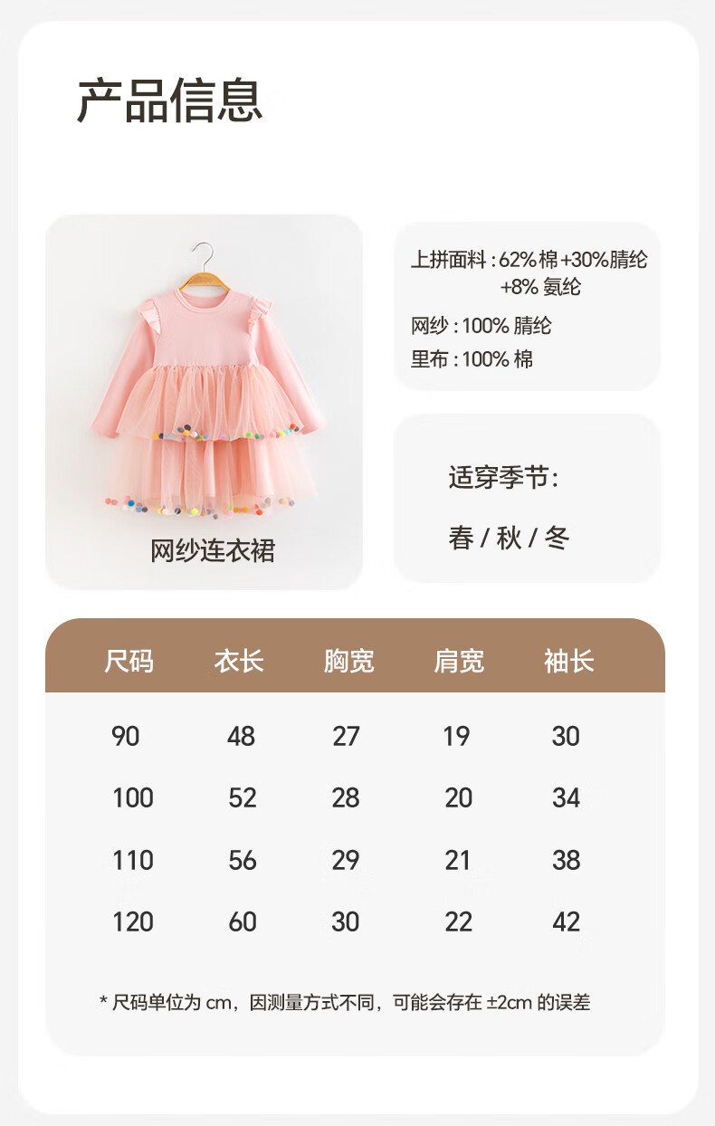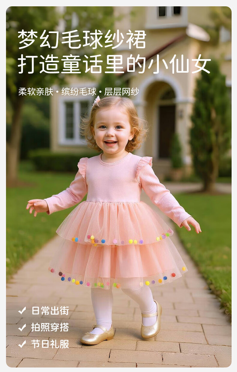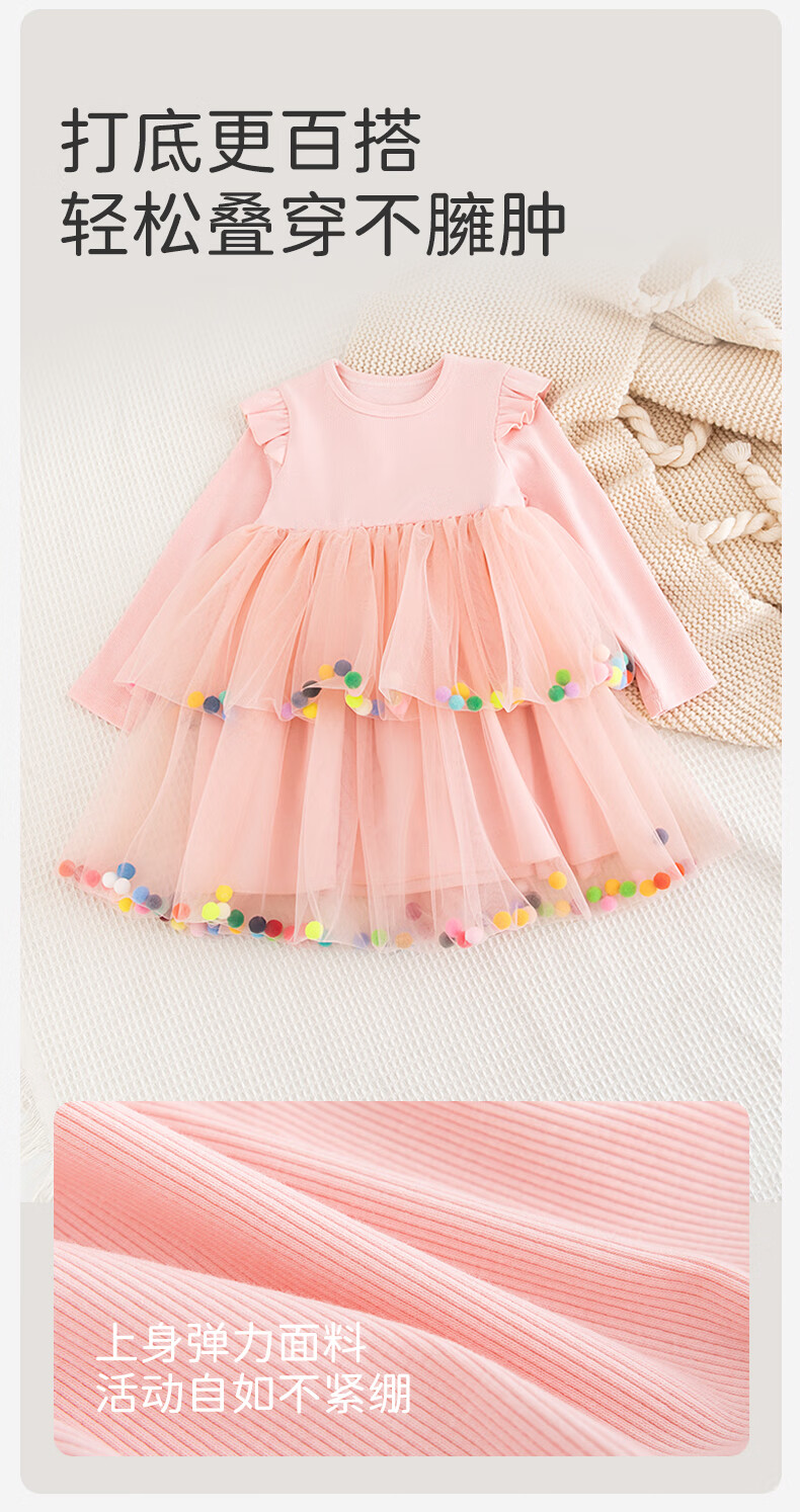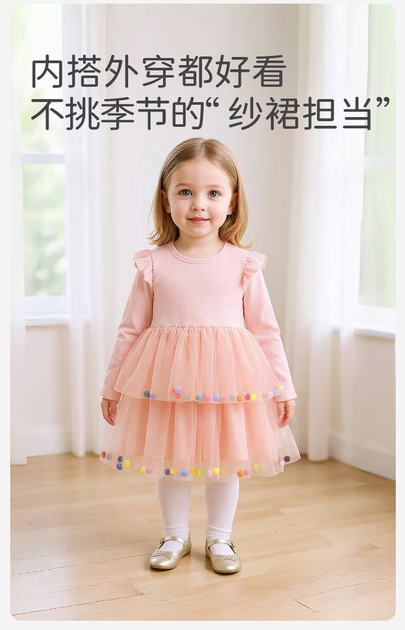 Berega (Babyprints) girl's dress sweet gauze skirt long-sleeved baby skirt spring and autumn princess skirt girl's first birthday dress 100