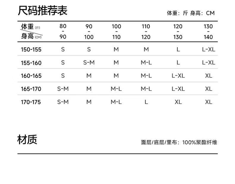 China (cm) 160-165/84-86 165-170 / 88-90 167-172 / 92-96 168-173 / 98-102 170-176 / 106-110