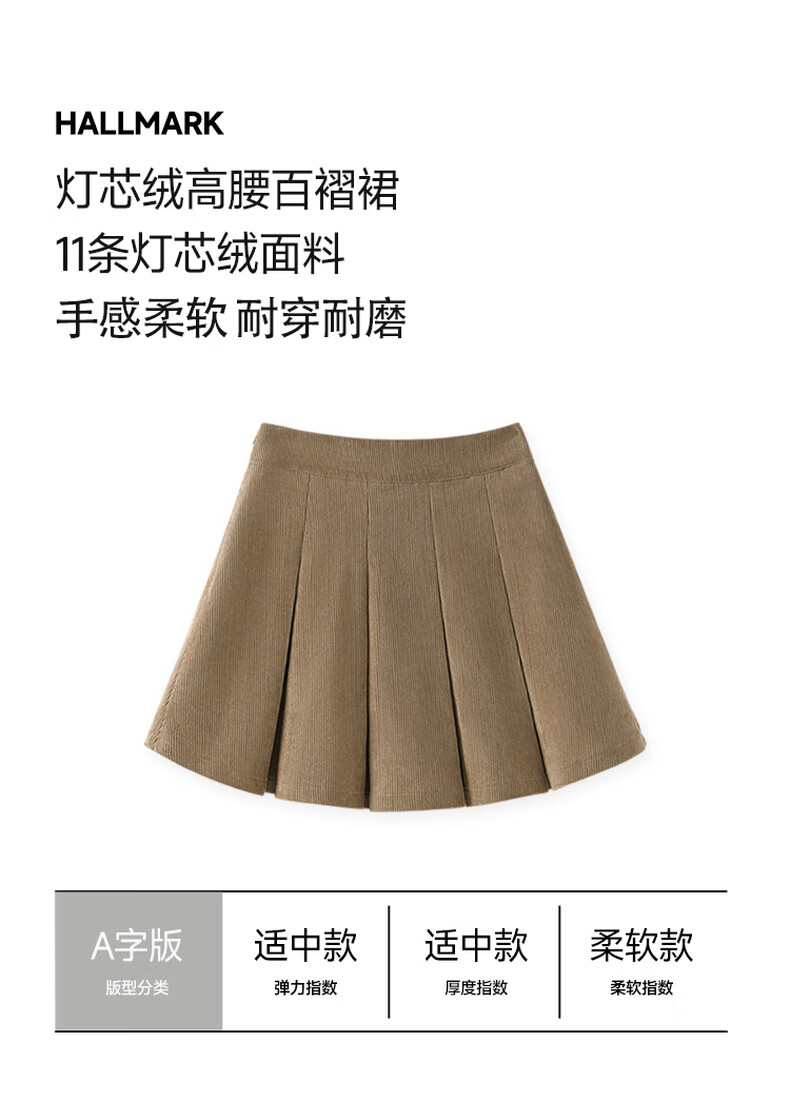 Baleno S&K Corduroy Pleated Skirt Women's Autumn and Winter 2025 New Maillard College Style High Waist A-Line Retro Skirt