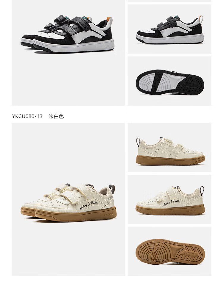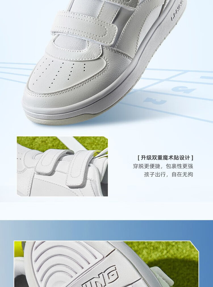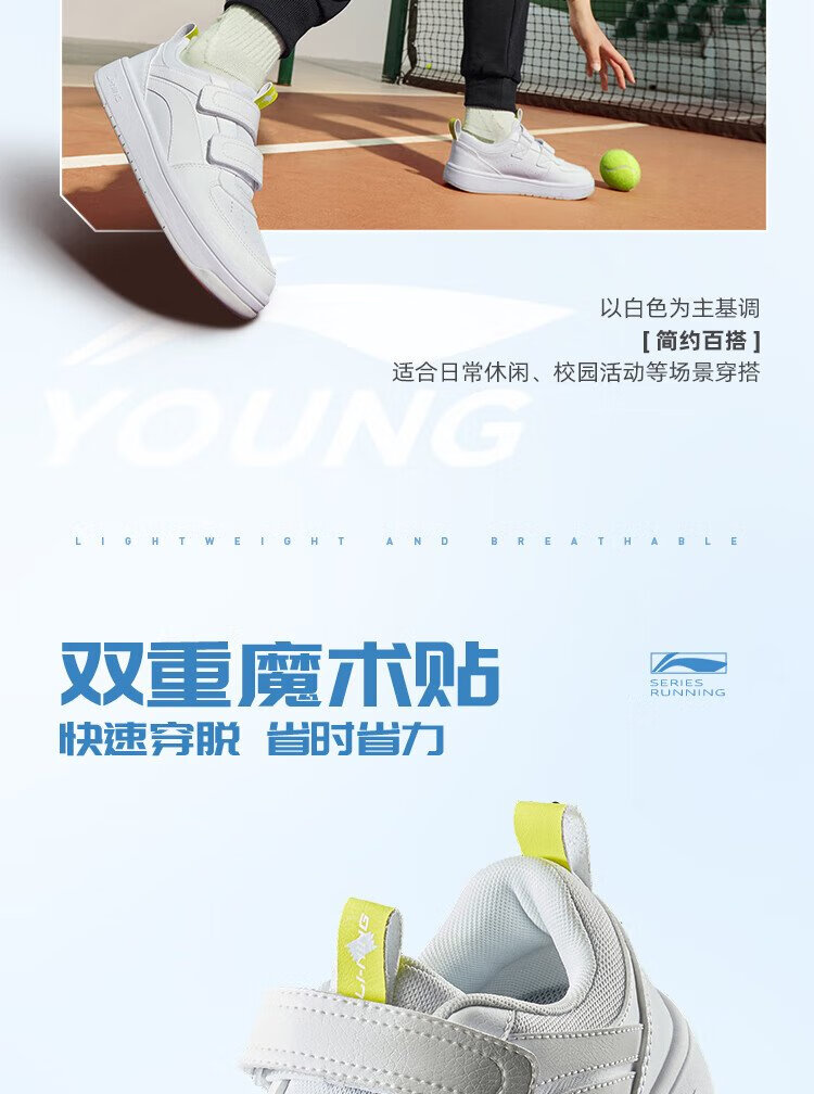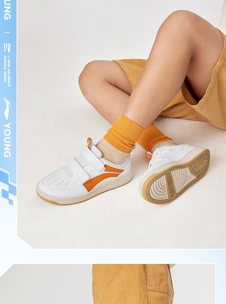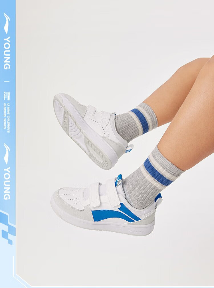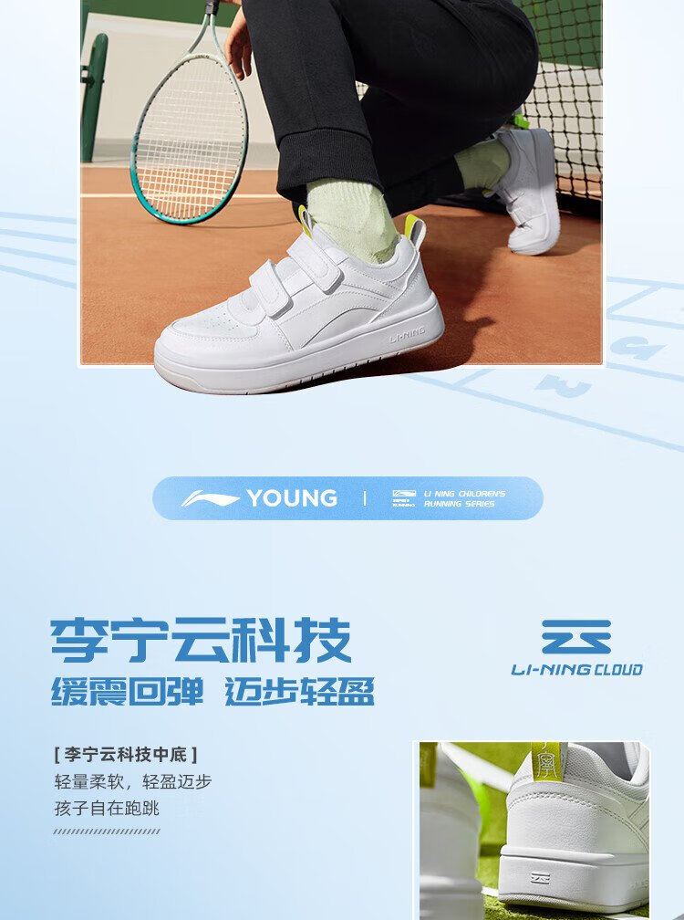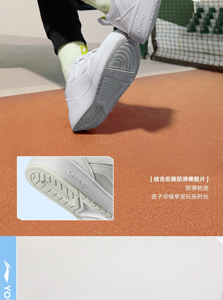 Li Ning children's shoes, children's sneakers, men's and women's white shoes, shock-absorbing casual sports shoes 35YKCU080-17