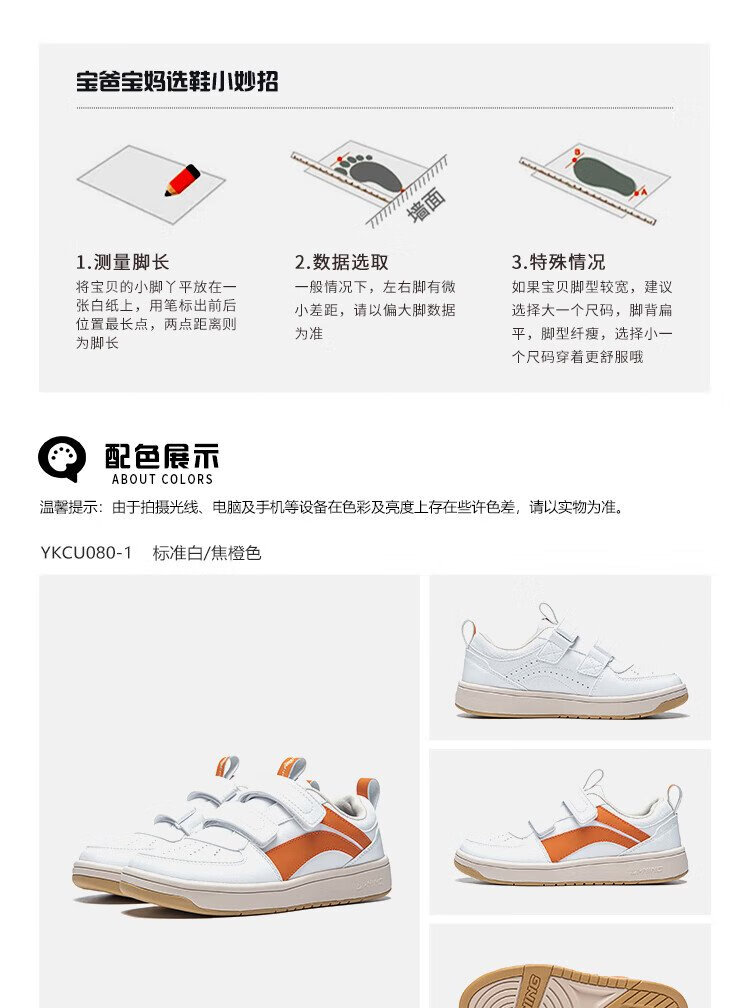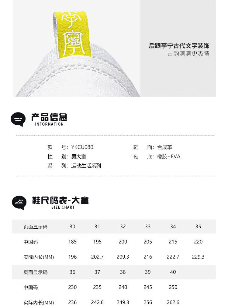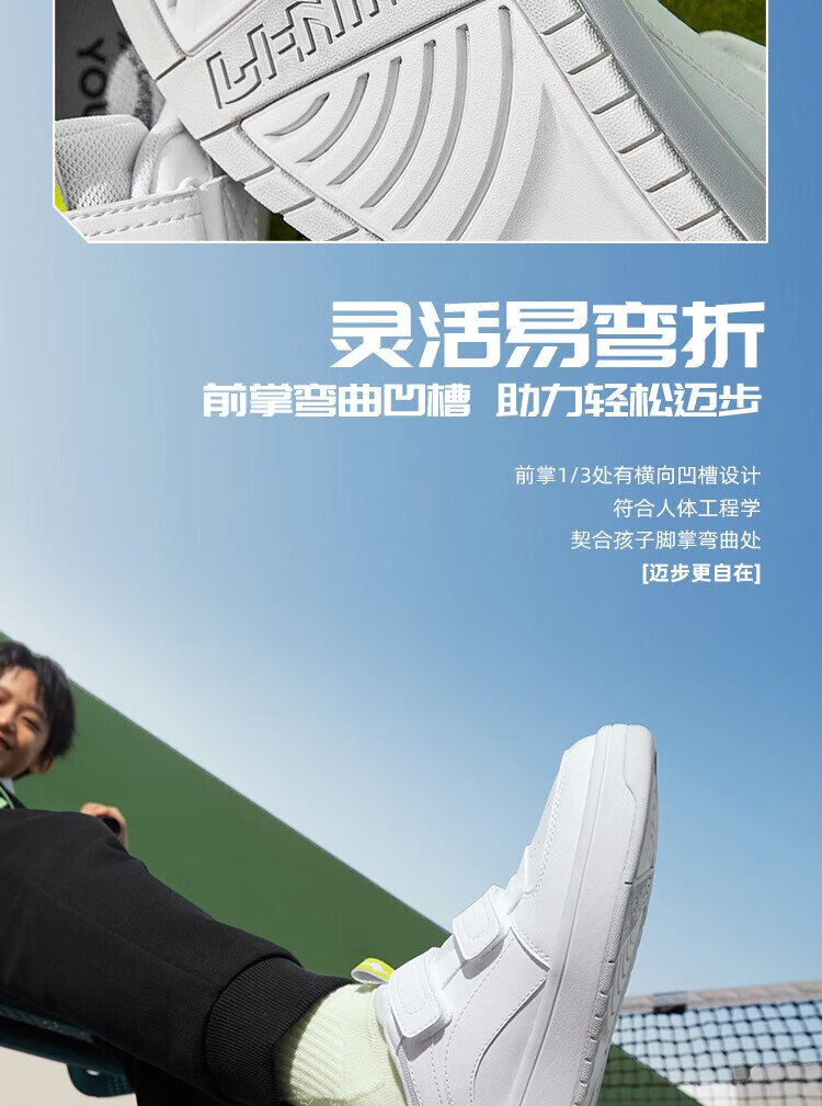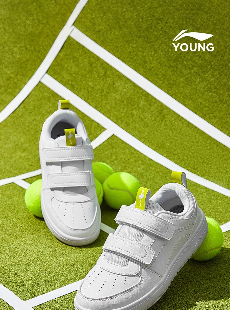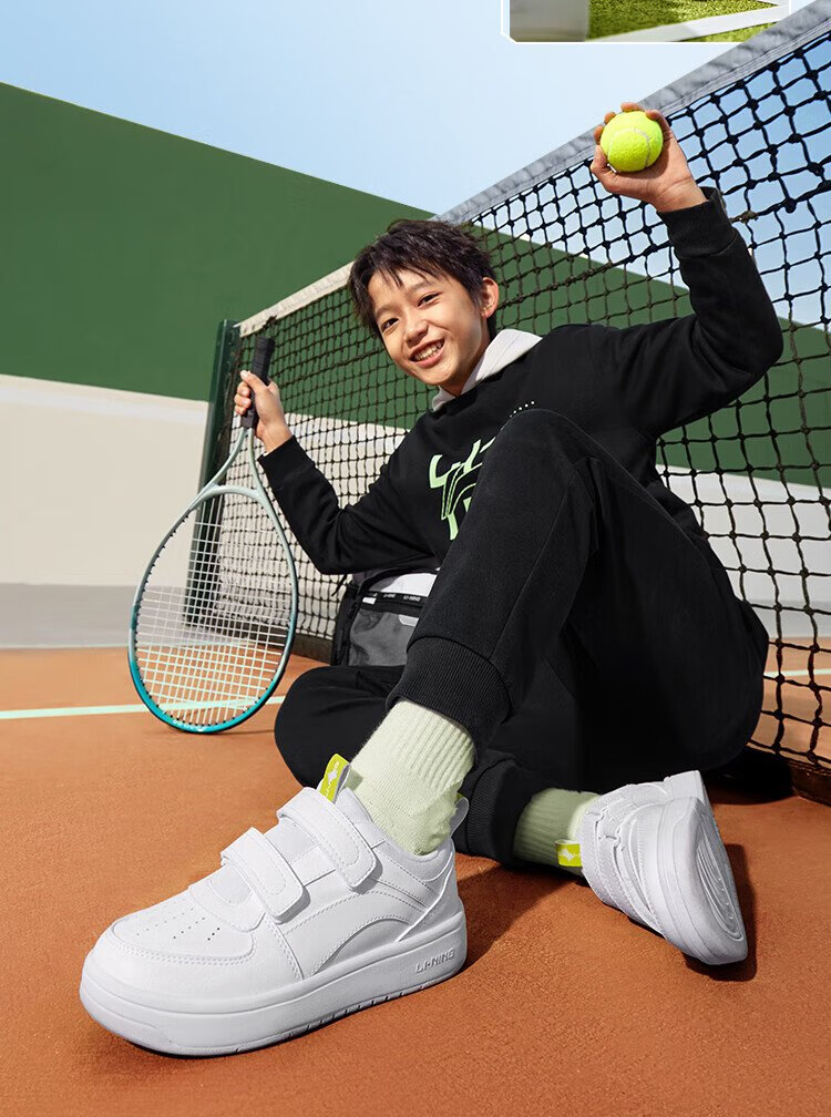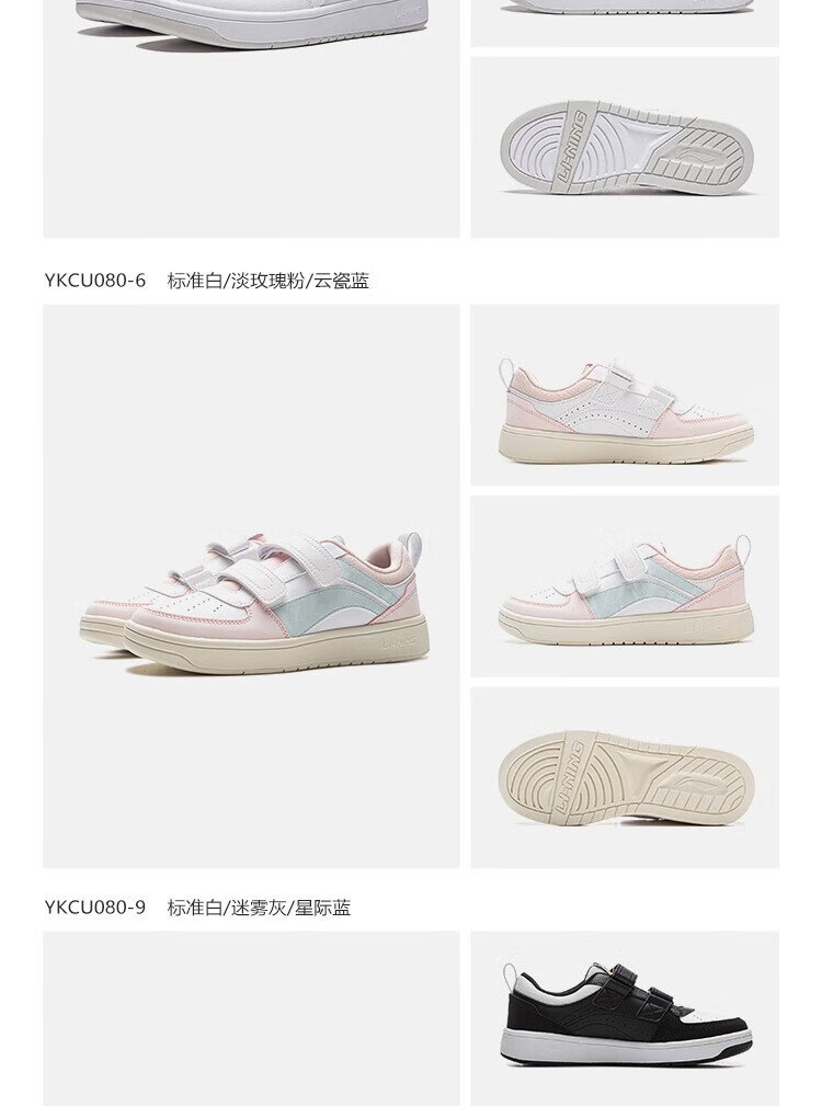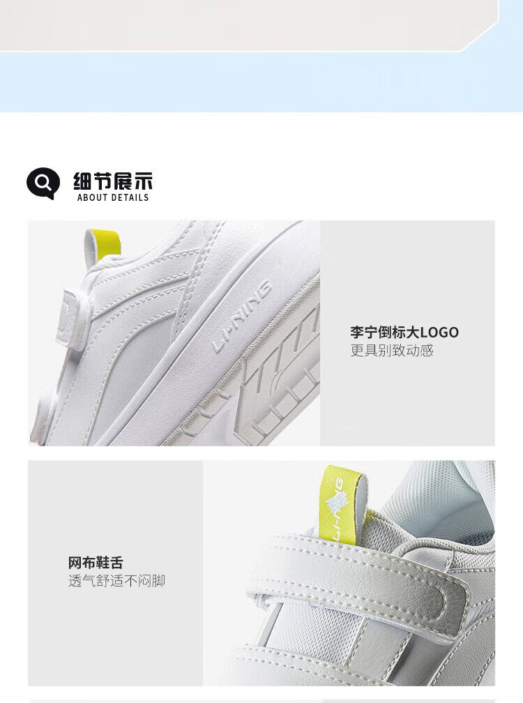 Li Ning children's shoes, children's sneakers, men's and women's white shoes, shock-absorbing casual sports shoes 35YKCU080-17