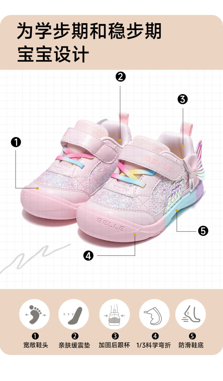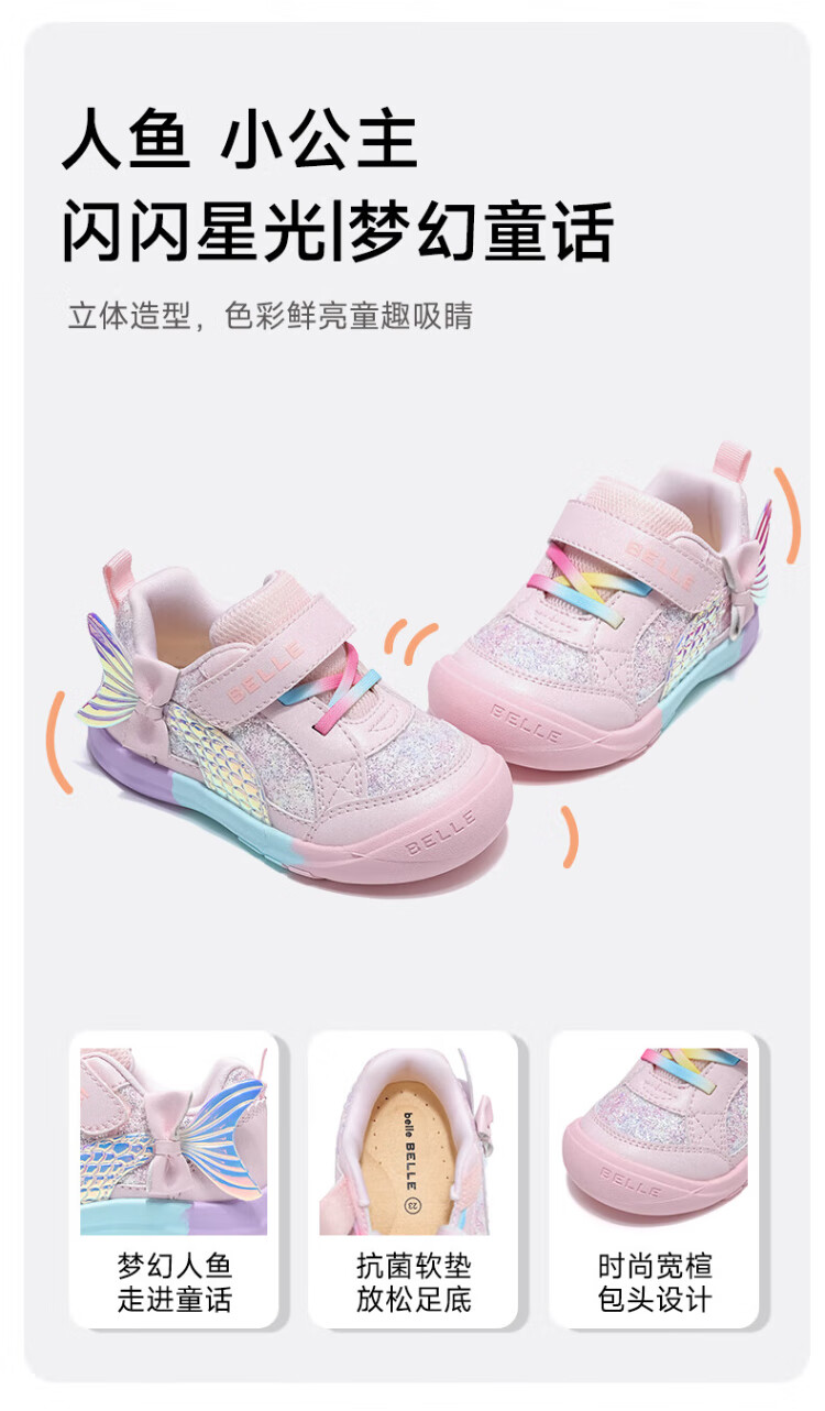 Belle Mermaid Children's Shoes Girls Baby Shoes 25th Autumn New Toddler Toddler Shoes Girls Sports Shoes 27