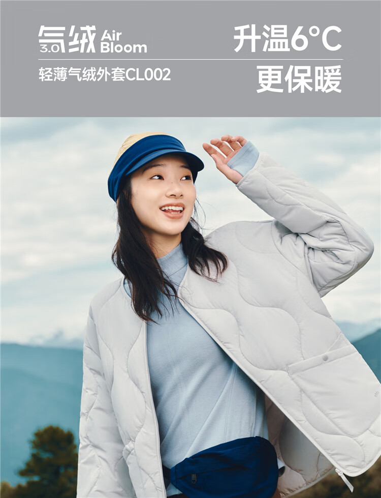 Beneunder jacket women's air velvet round neck cotton jacket spring and autumn warm and windproof outdoor CL002 blue soot L