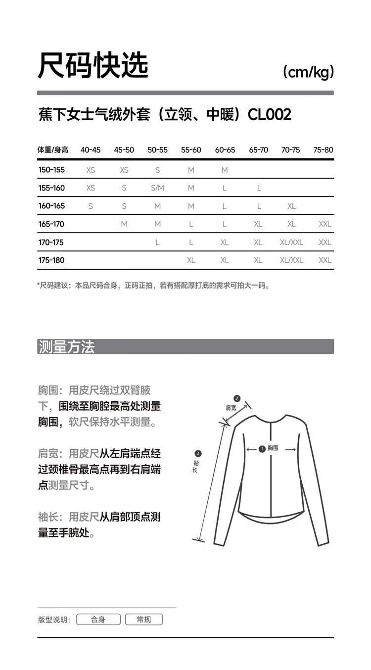 China (cm) 160-165/84-86 165-170 / 88-90 167-172 / 92-96 168-173 / 98-102 170-176 / 106-110