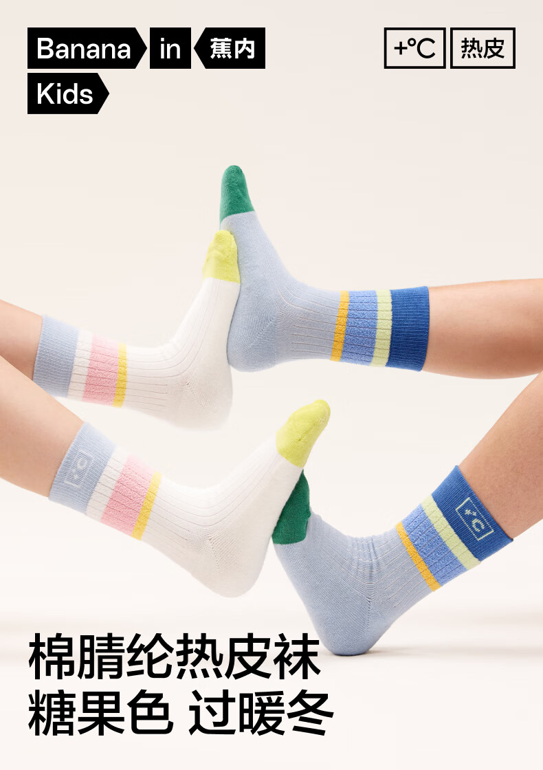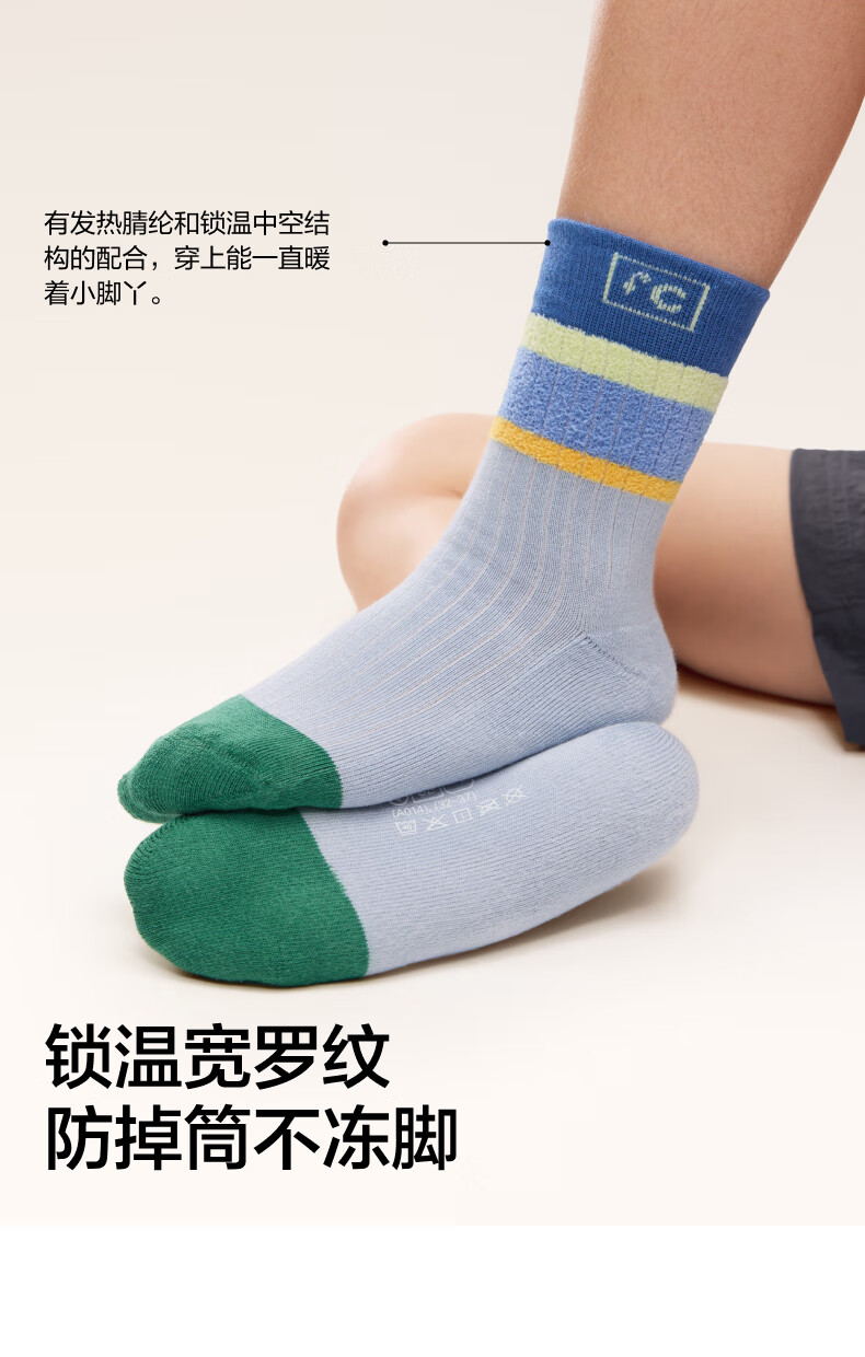 Jiao Nei Xiaorepi 502++ children's socks 7A antibacterial boys and girls warm color matching mid-calf socks autumn and winter 3 pairs of hot leather socks