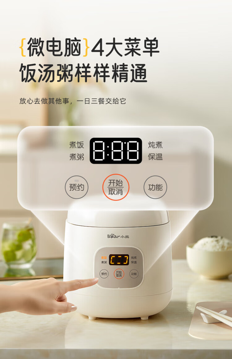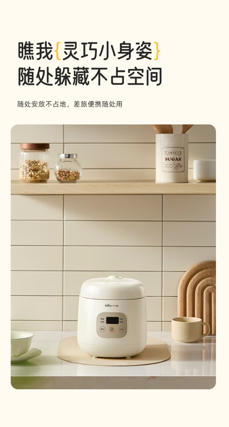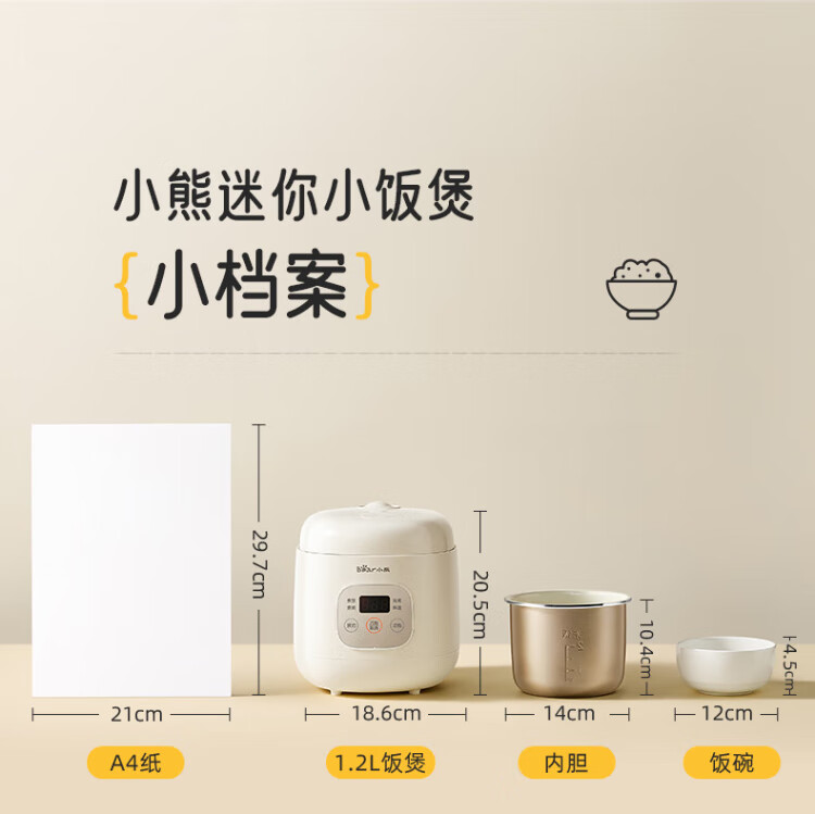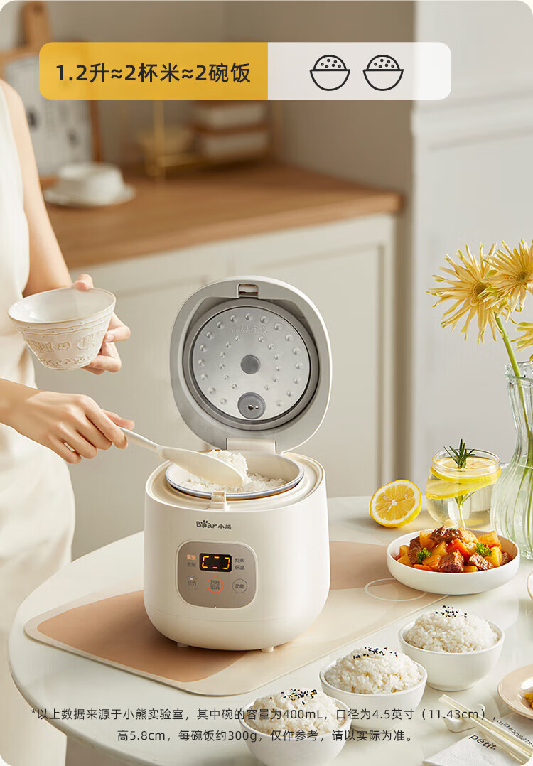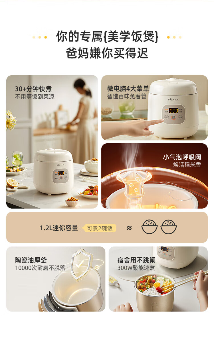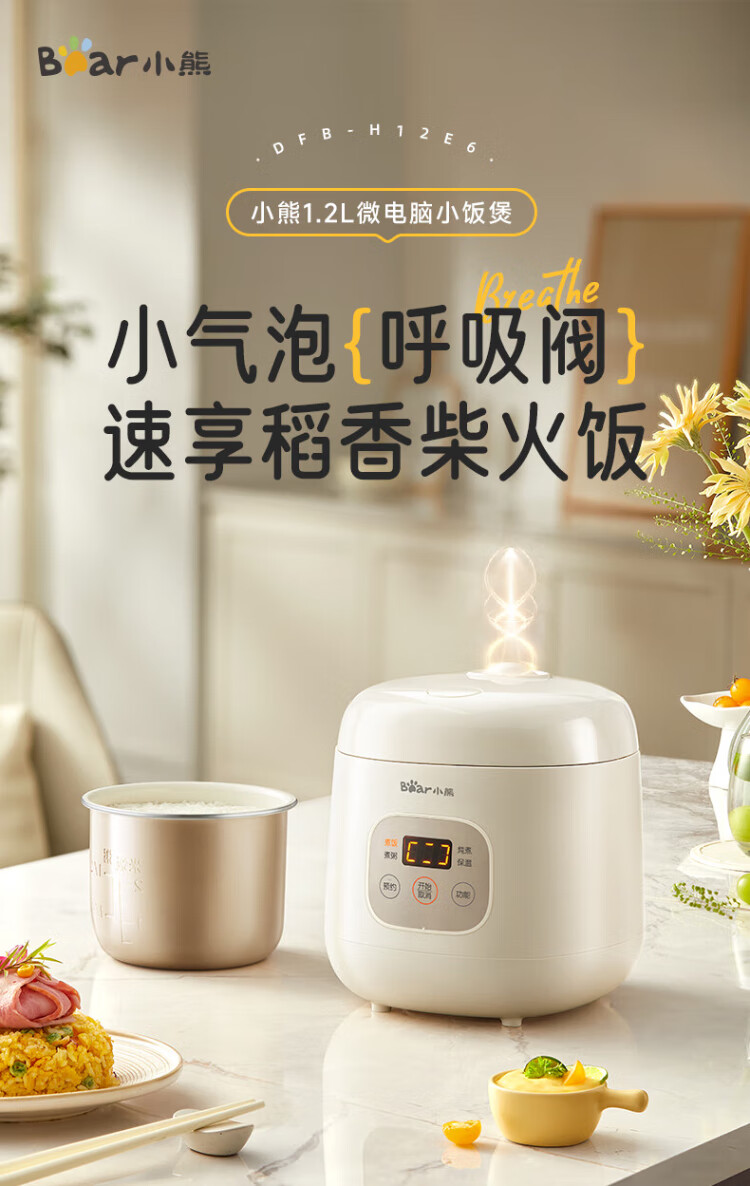 Bear rice cooker for 1-2 people mini reservable multifunctional rice cooker dormitory small capacity mini cooking rice porridge pressure rice cooker 1.2L DFB-H12E6 national subsidy