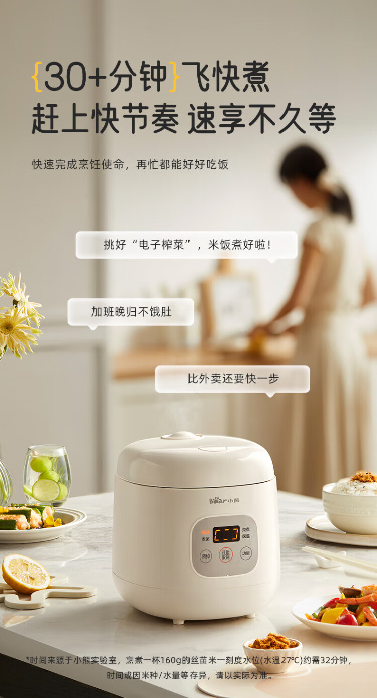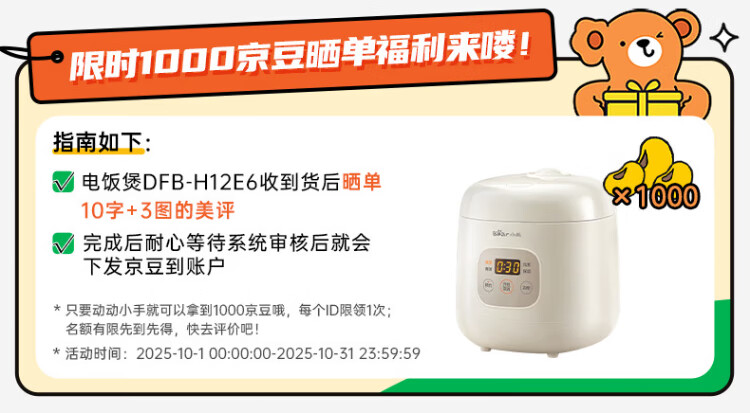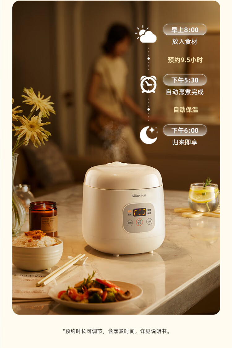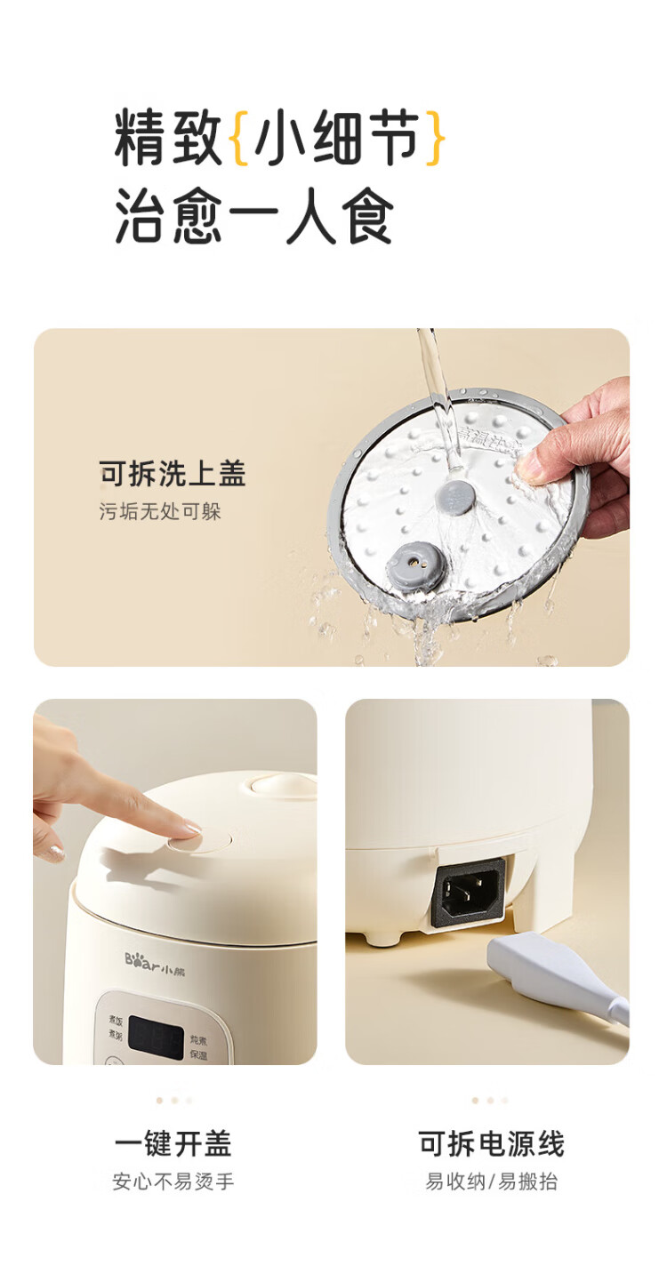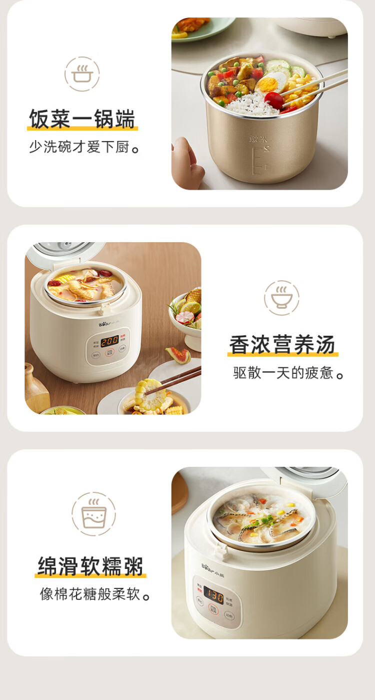 Bear rice cooker for 1-2 people mini reservable multifunctional rice cooker dormitory small capacity mini cooking rice porridge pressure rice cooker 1.2L DFB-H12E6 national subsidy