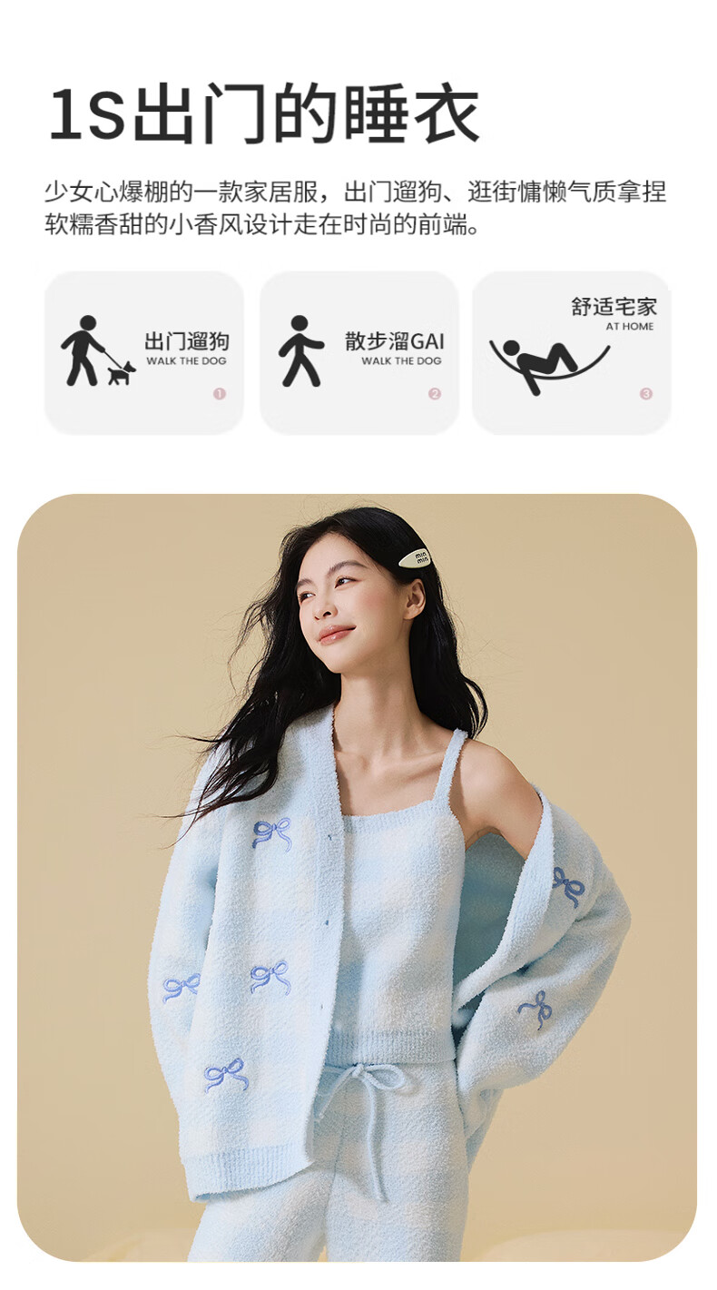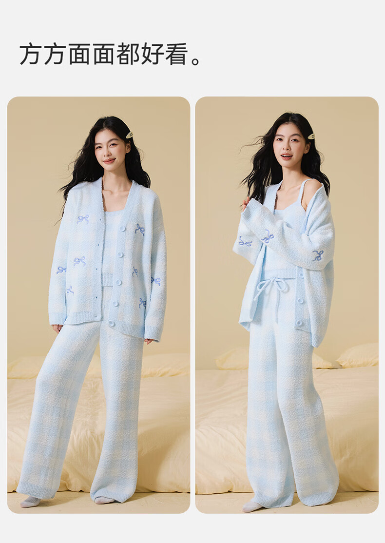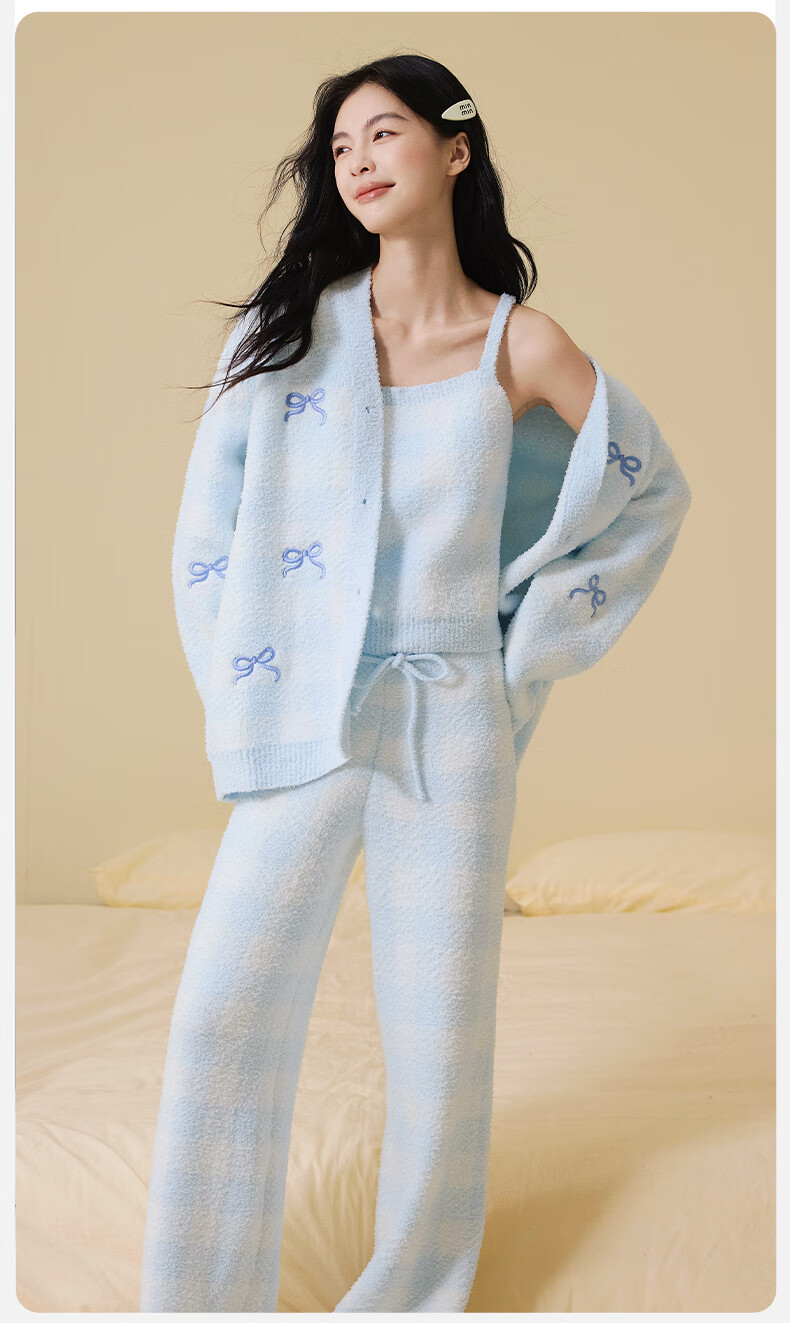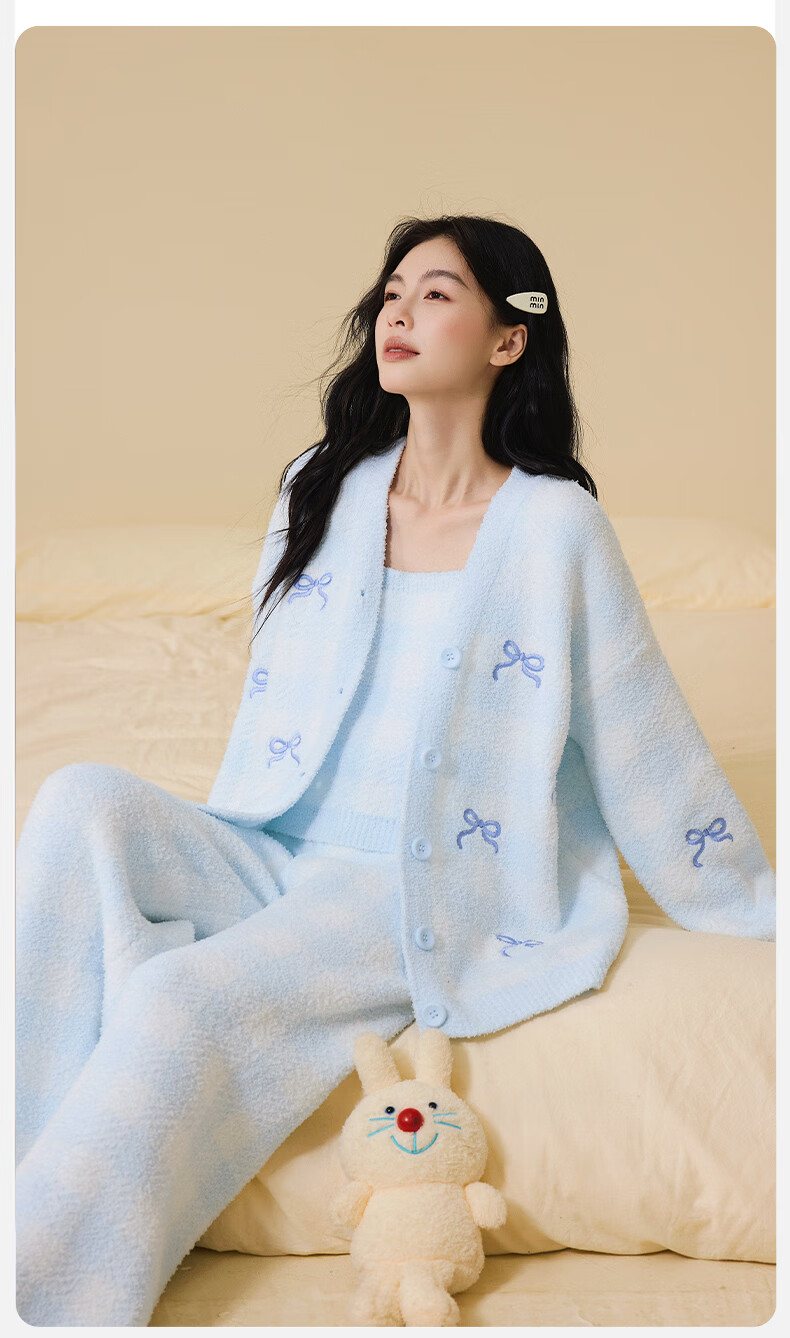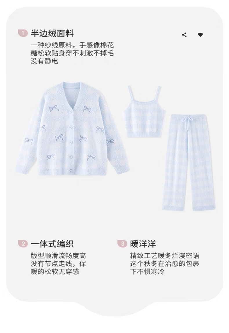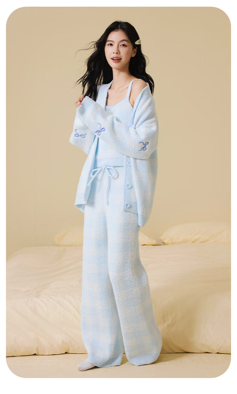 Ancient and modern (GUJIN) three-piece autumn and winter new half-velvet pajamas, women's home clothes, can be worn outside, pajamas, vests, warm and velvet thickening