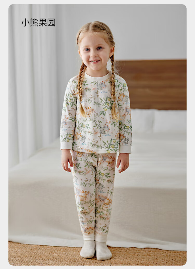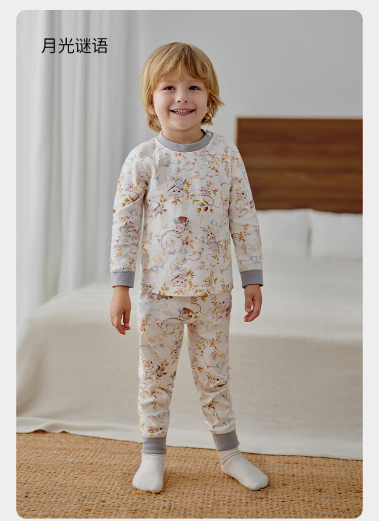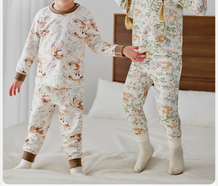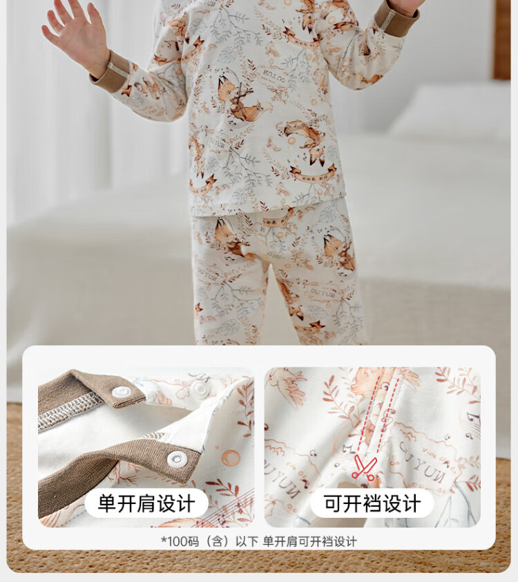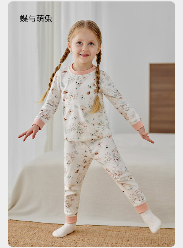 OUYUN baby and children's pajamas for boys and girls, autumn and winter home clothes, warm autumn clothes set, Butterfly and Cute Rabbit 100