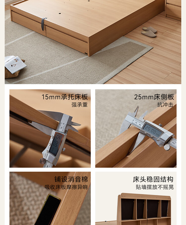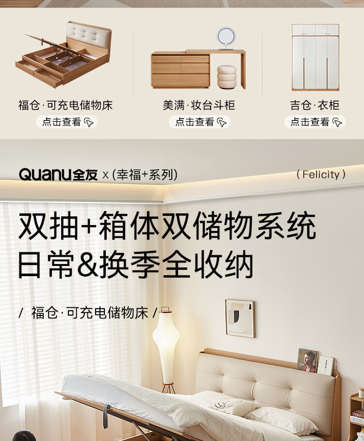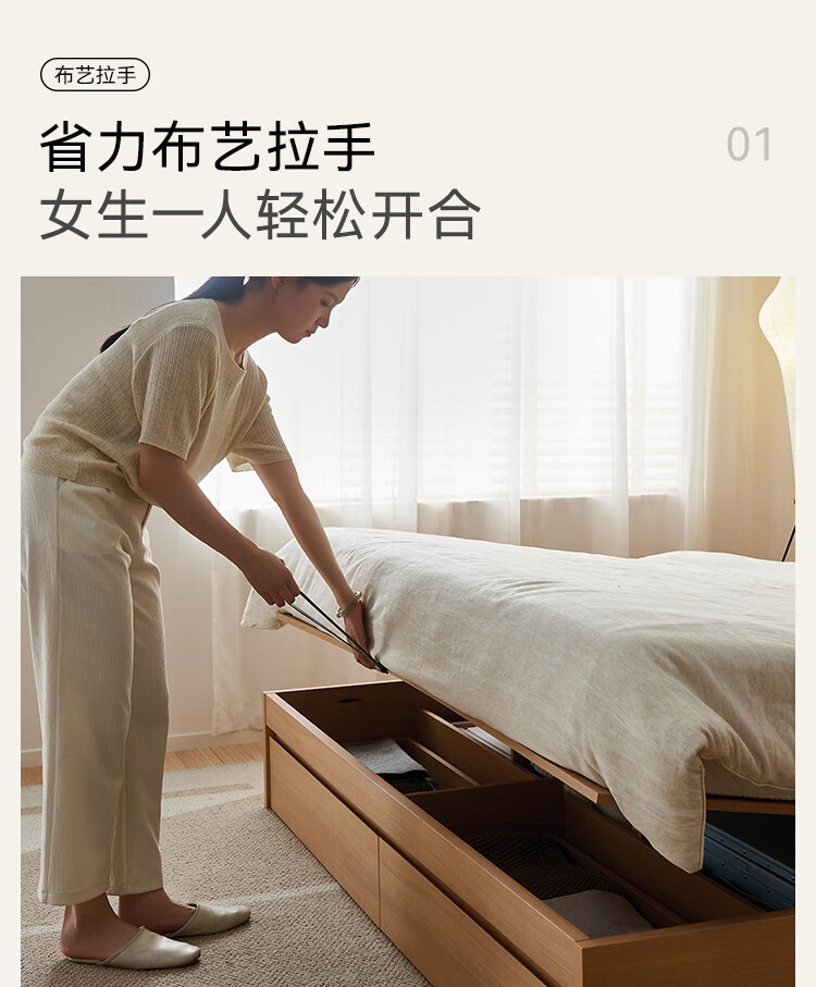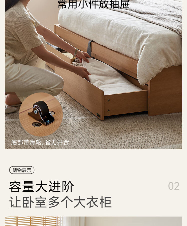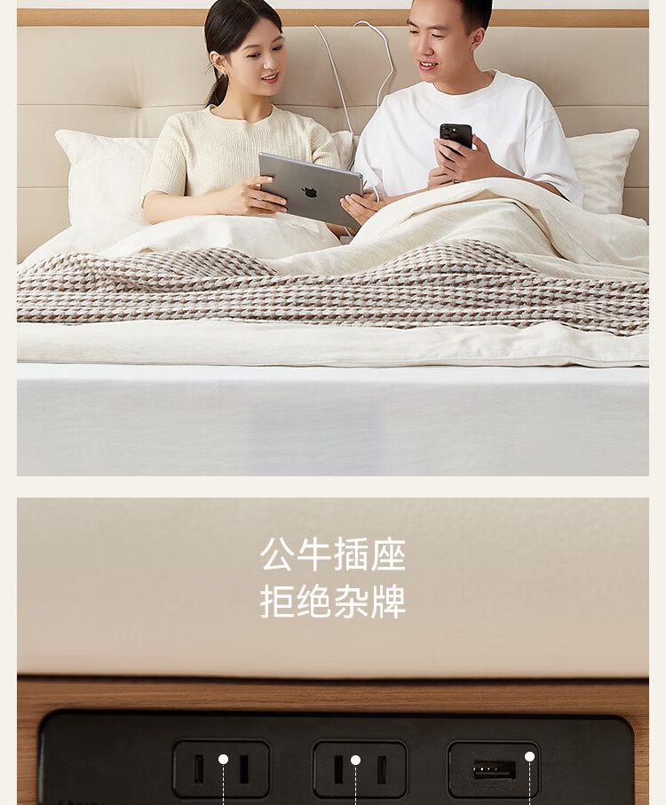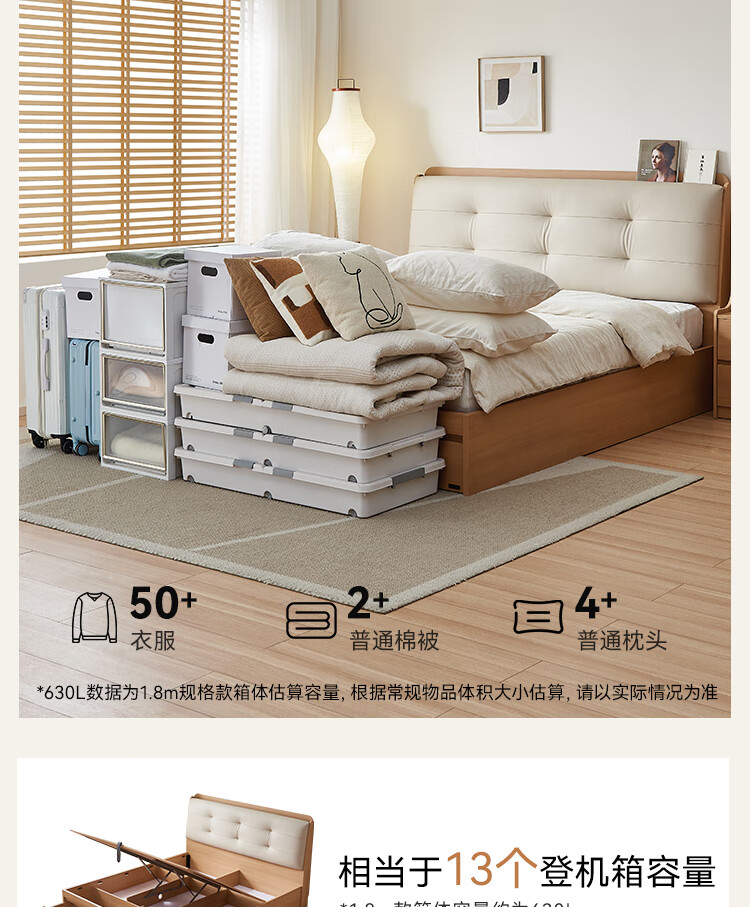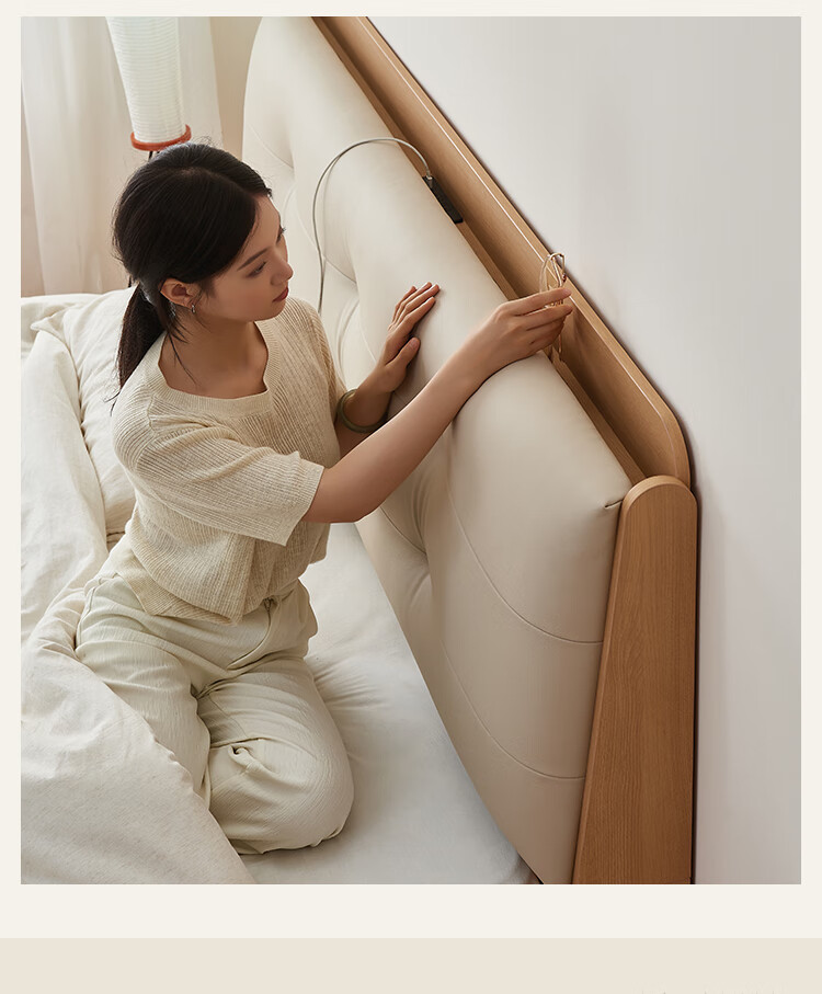 Quanyou Home Modern Simple Log Style Soft Pack Board Bed Bedroom 1.5 2 Meter Multifunctional High Box Storage Bed