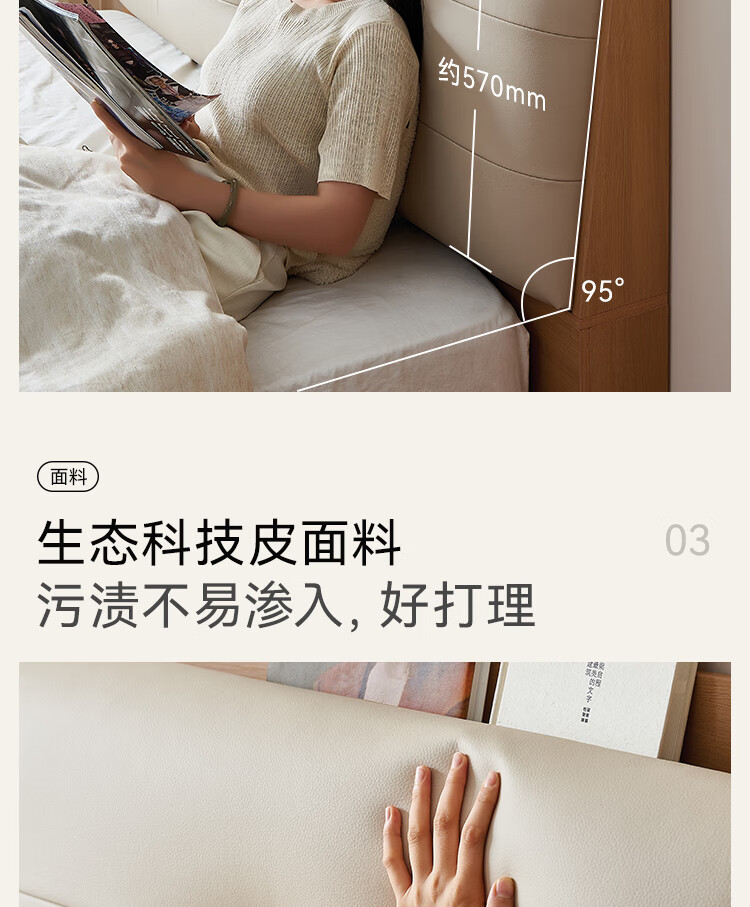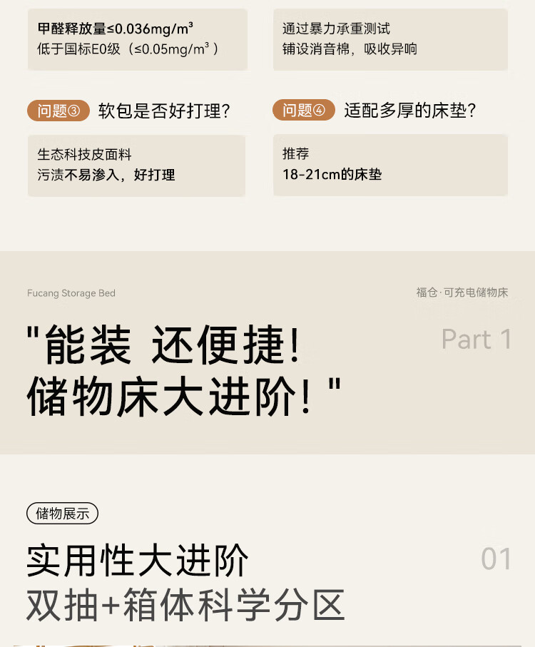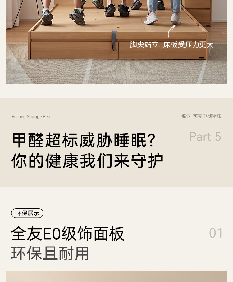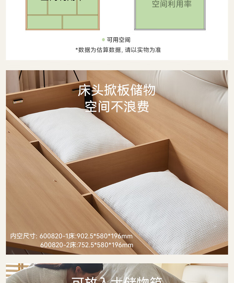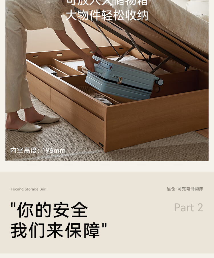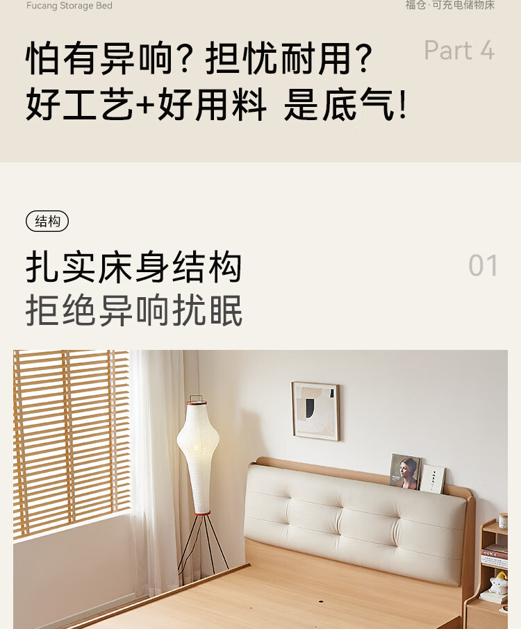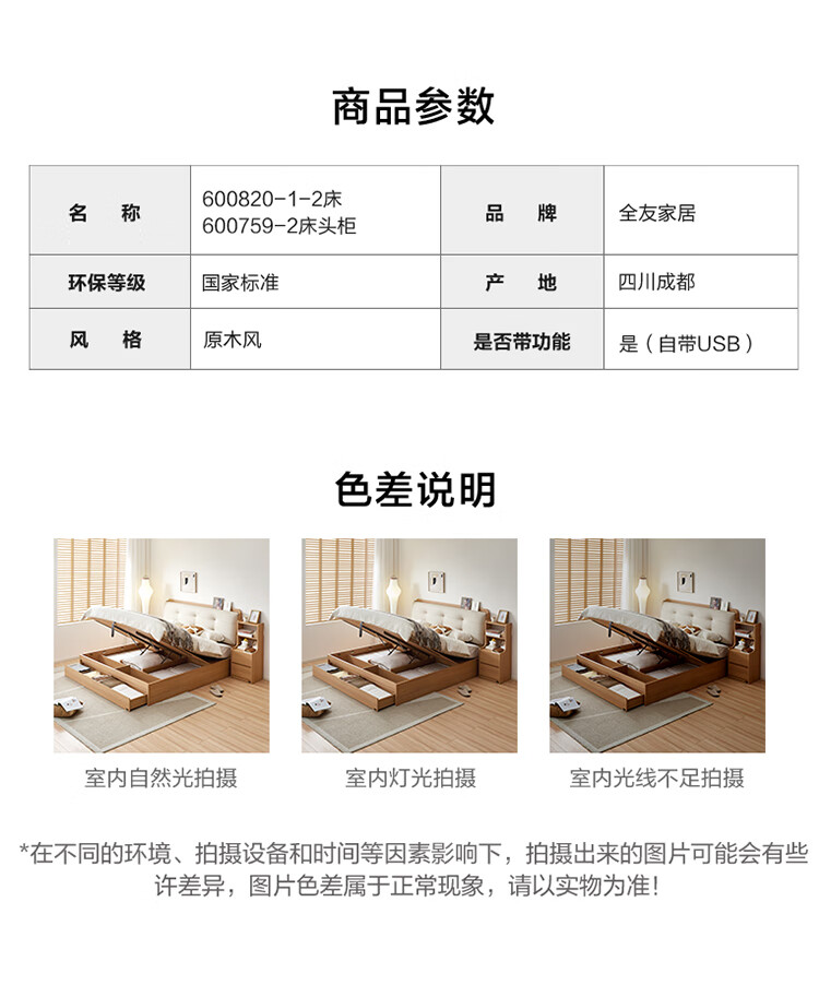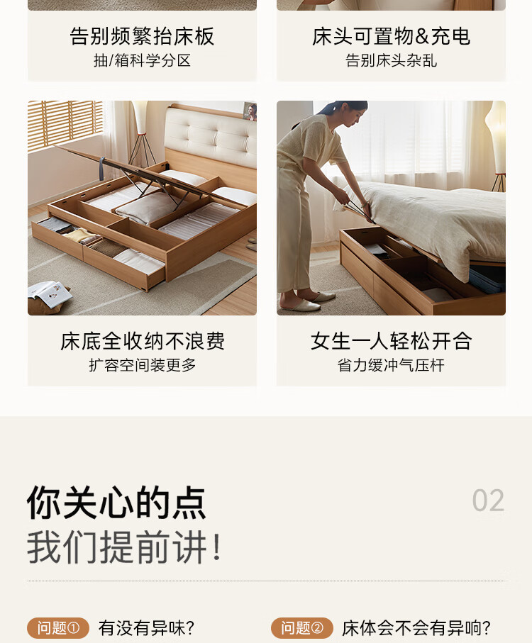 Quanyou Home Modern Simple Log Style Soft Pack Board Bed Bedroom 1.5 2 Meter Multifunctional High Box Storage Bed