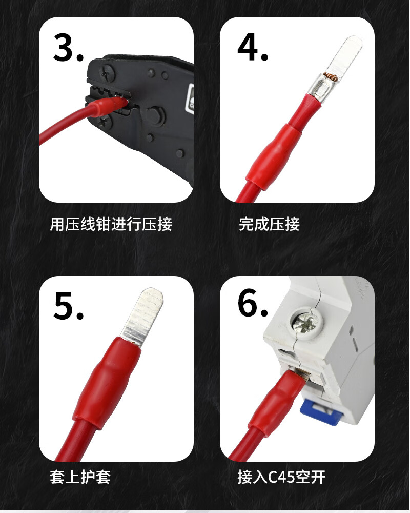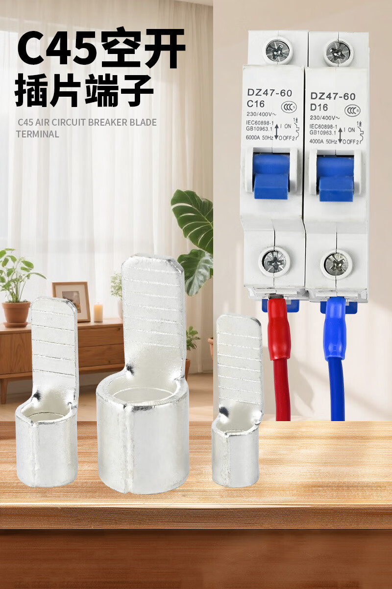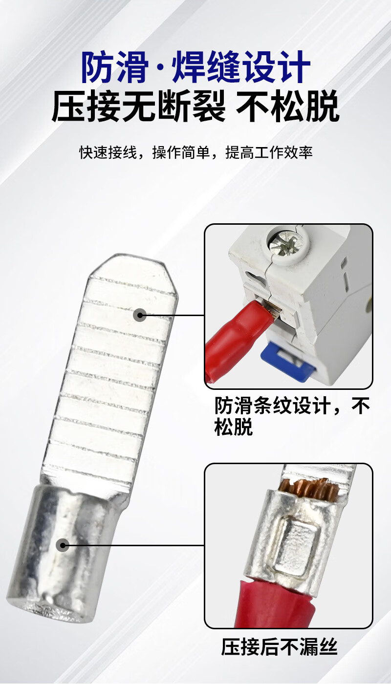 OLKWL(瓦力)C45空开接线端子紫铜加厚充电桩线鼻子4平方铜线耳冷压鸭嘴插片送红蓝护套 C45-4-5(50只装)