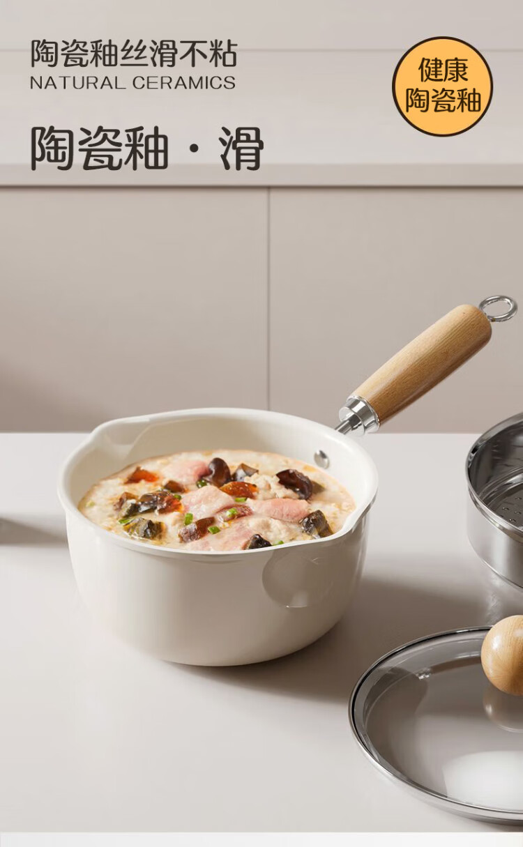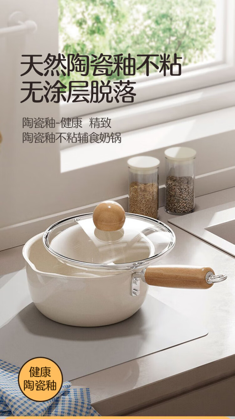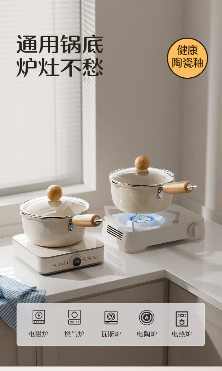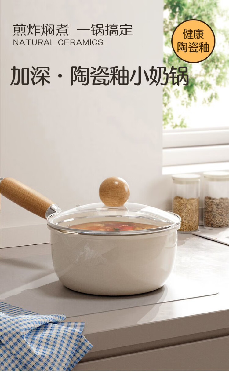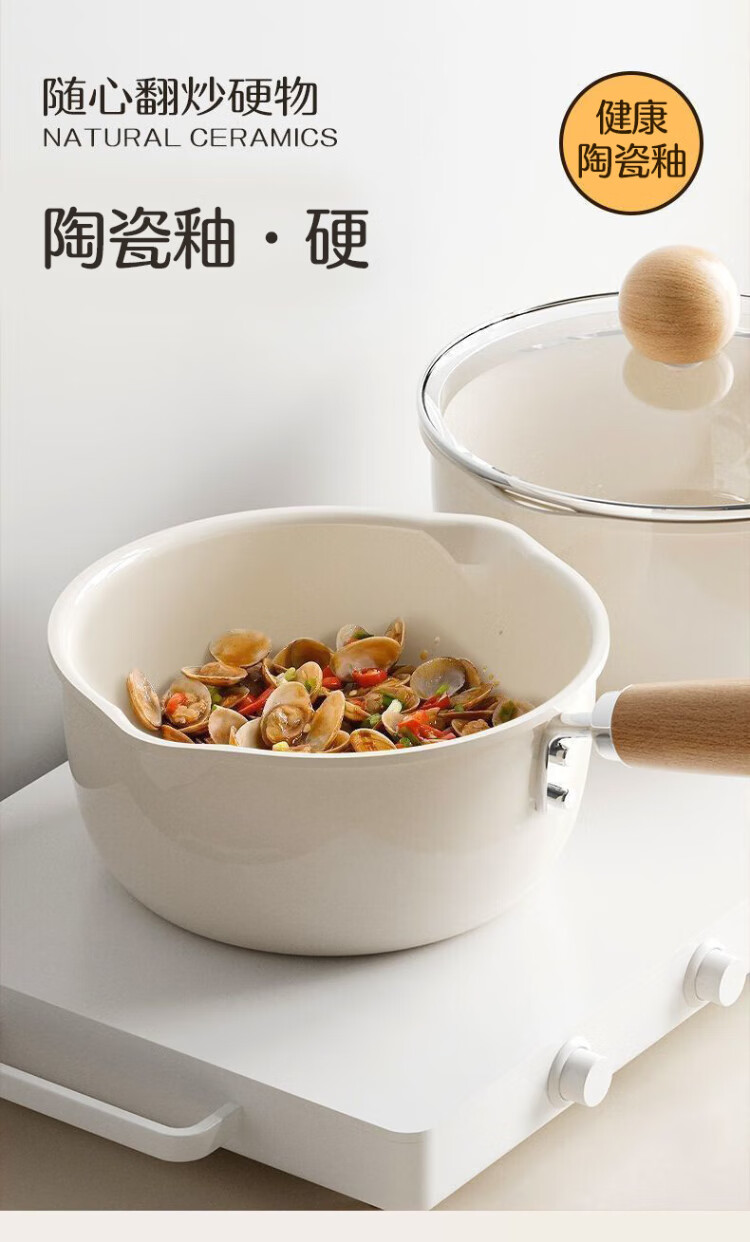 Meiling ceramic milk pot, non-stick pot, baby food supplement pot, hot milk pot, household instant noodle pot, stir-fry soup pot 20cm