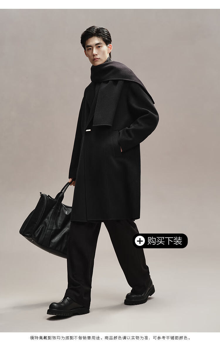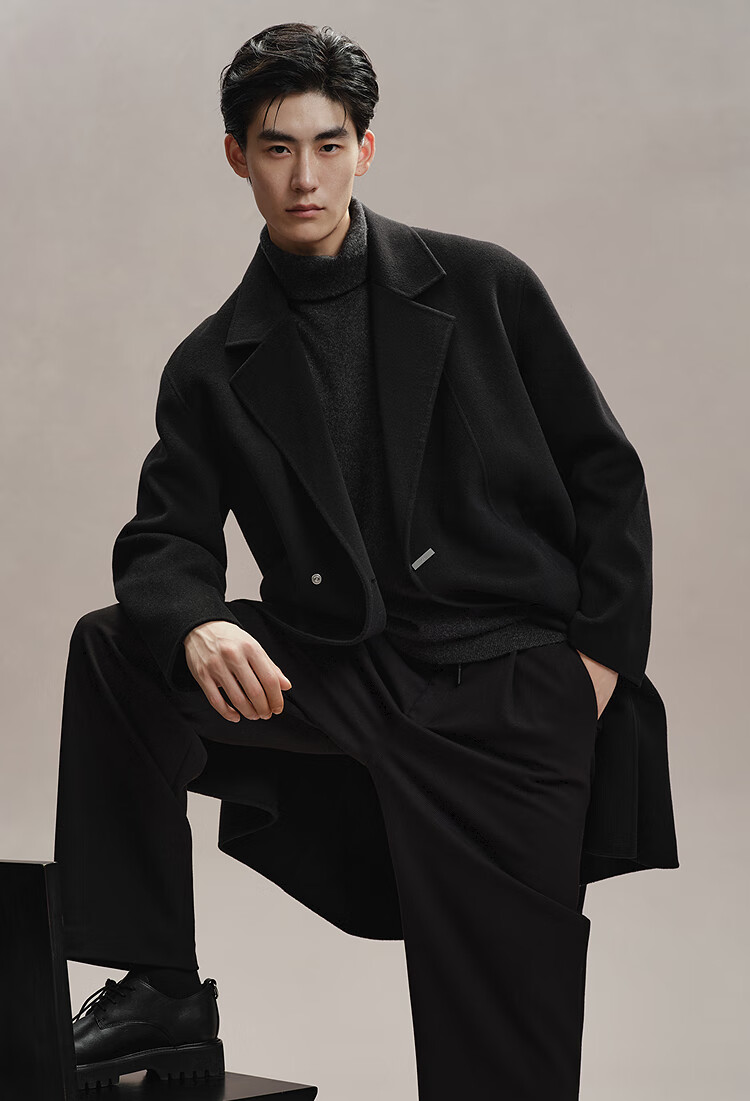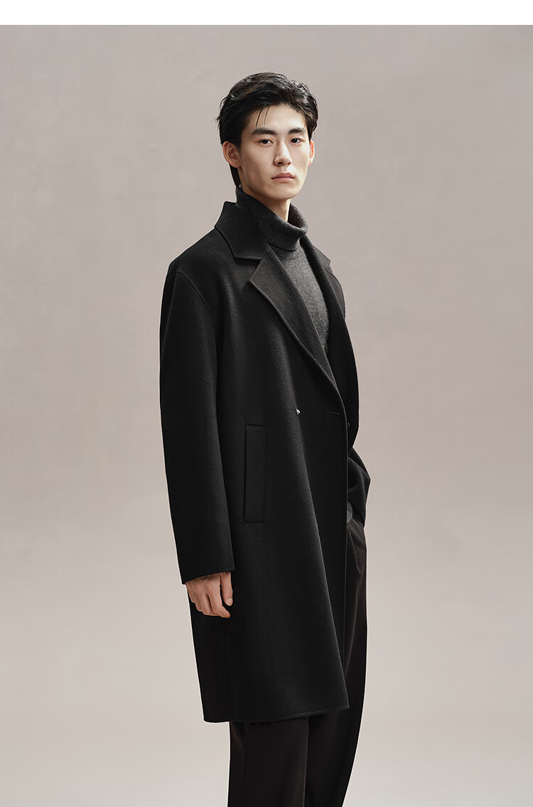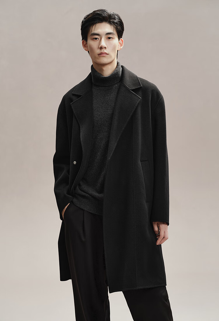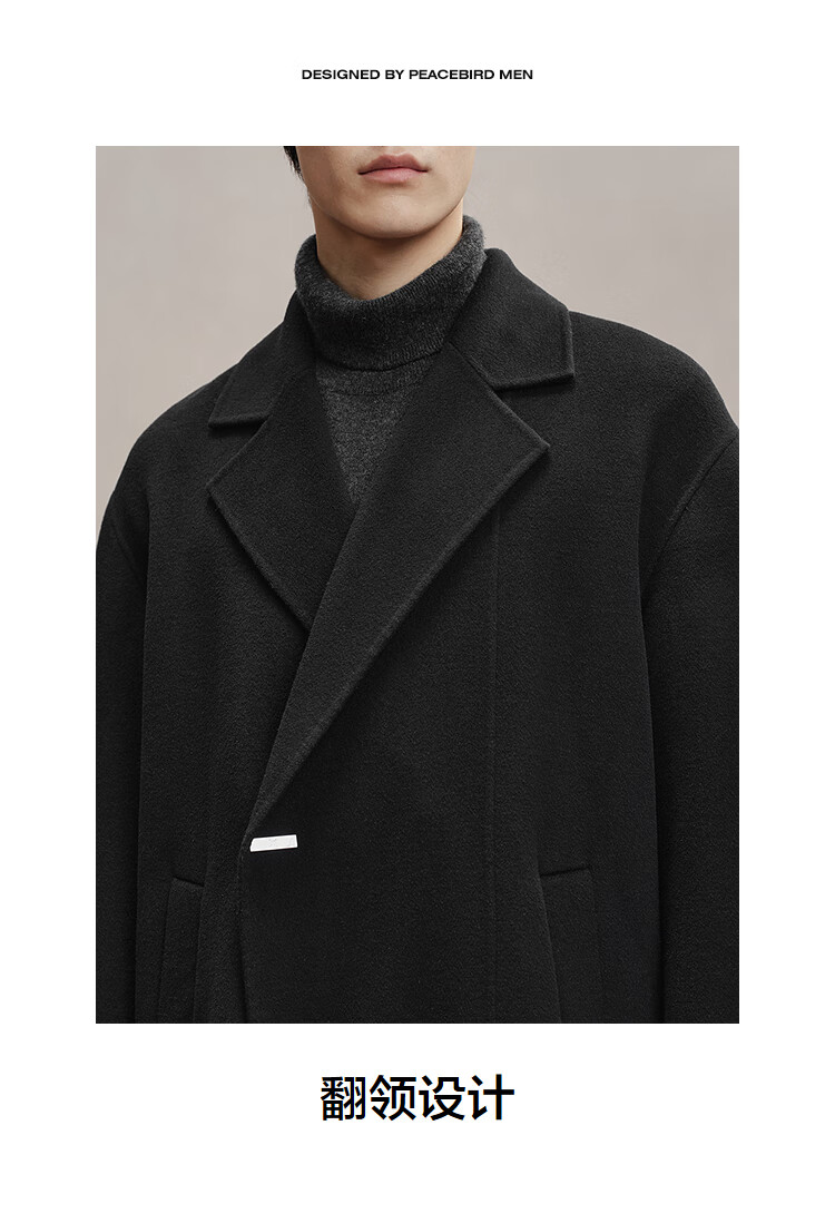 PEACEBIRD Men's Woolen Coat Winter Loose Long Jacket Casual Temperament Commuting Simple # Black 1 M