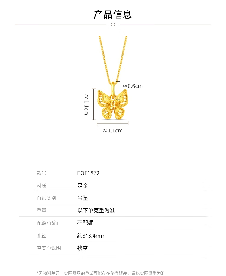 Chow Tai Fook Exploding Morpho Butterfly Gold Pendant (labor cost 260) about 1.75g EOF1872
