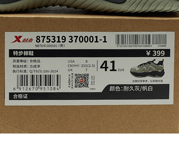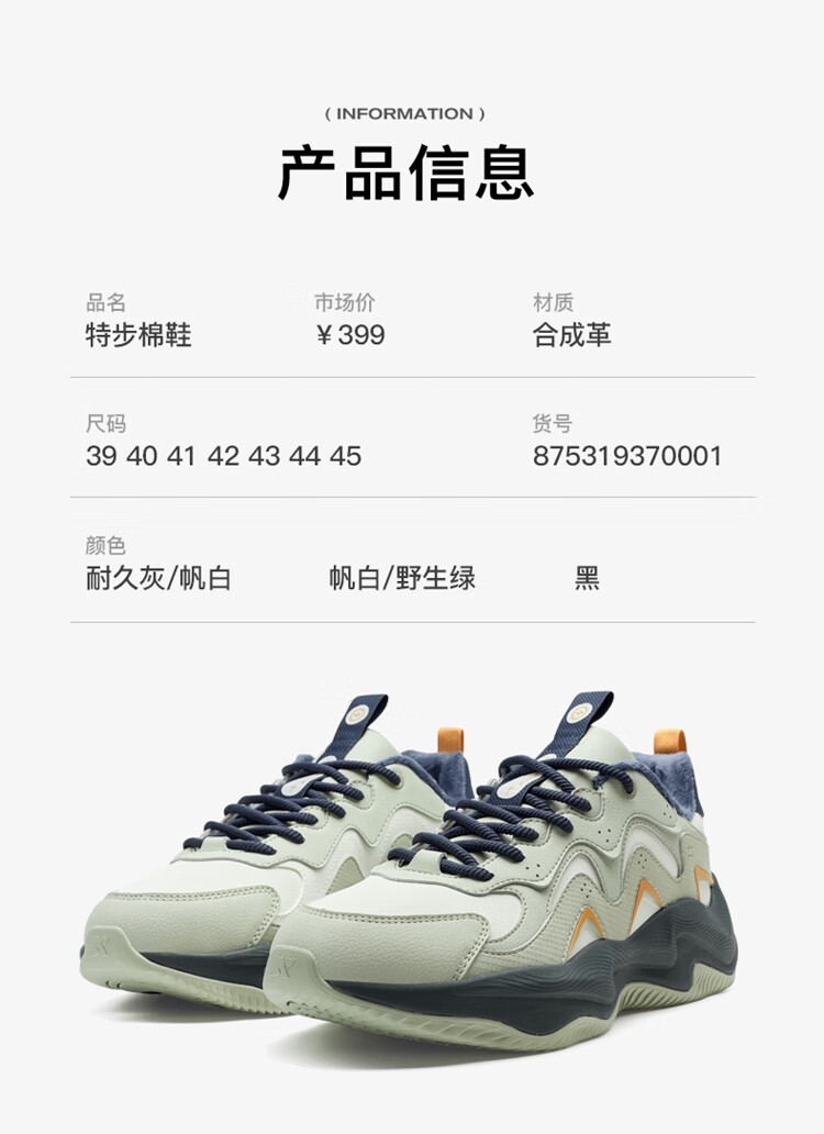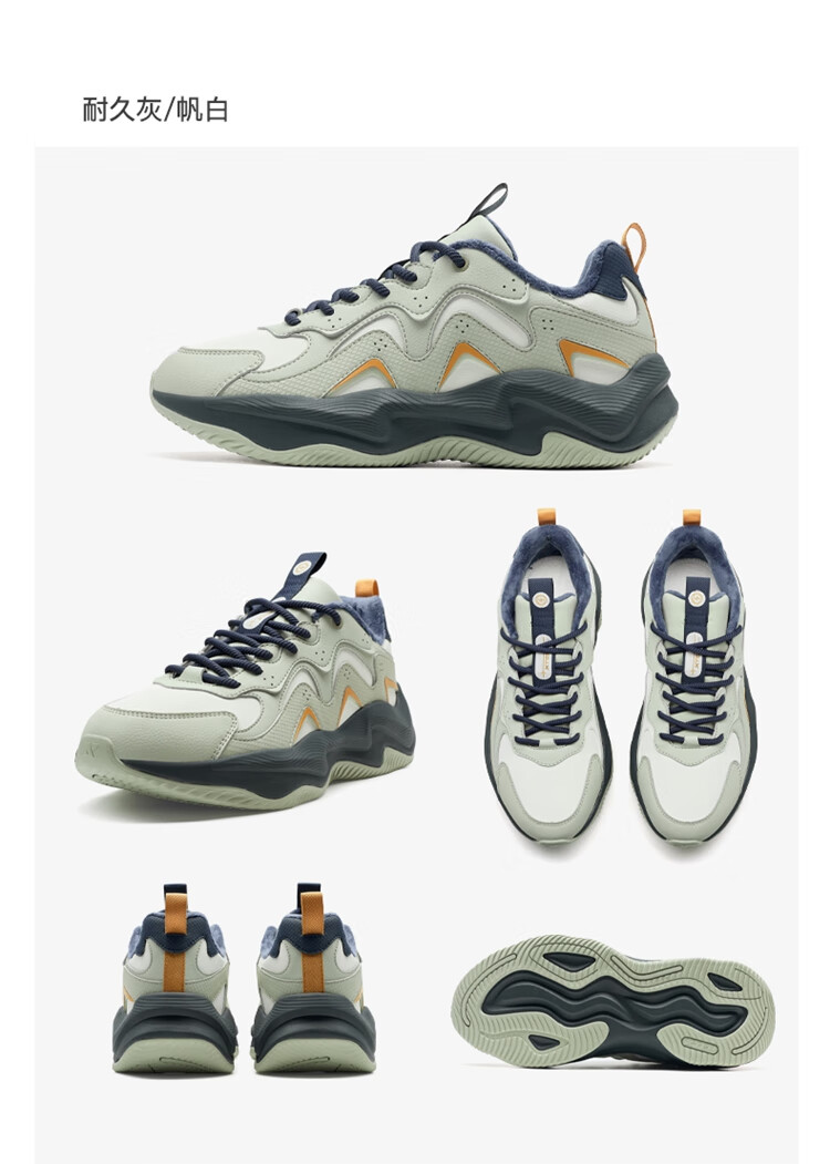 Xtep Nomad丨Men's shoes, cotton shoes, casual dad shoes, cotton shoes, winter warm, water-repellent, non-slip, wear-resistant sports shoes for men
