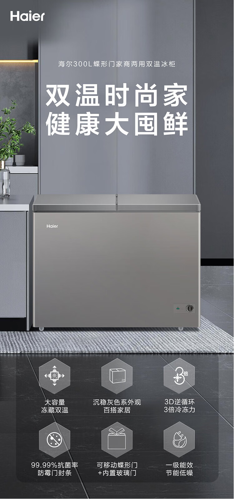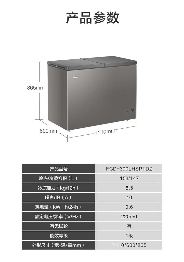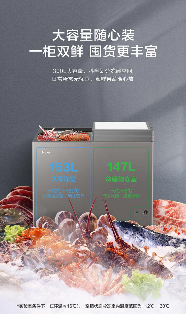Haier 300 liter dual temperature double box large capacity small freezer household commercial refrigerator freezer OCC small refrigerator freezer FCD-300LHSPTDZ trade-in