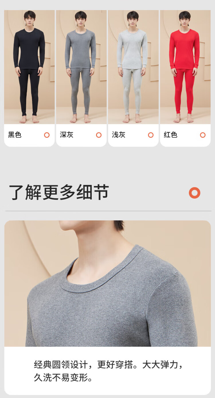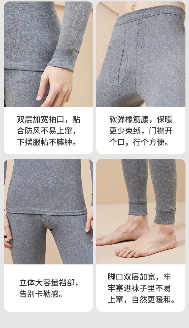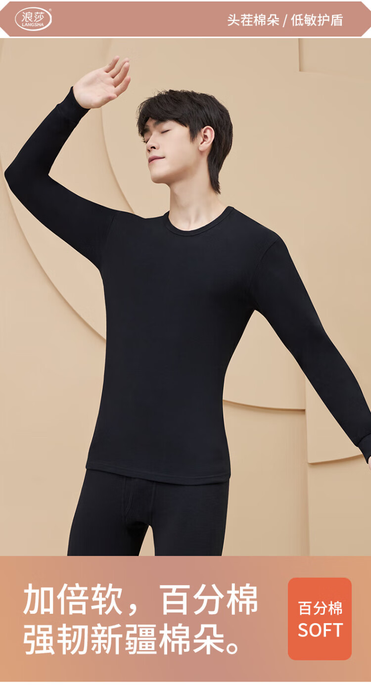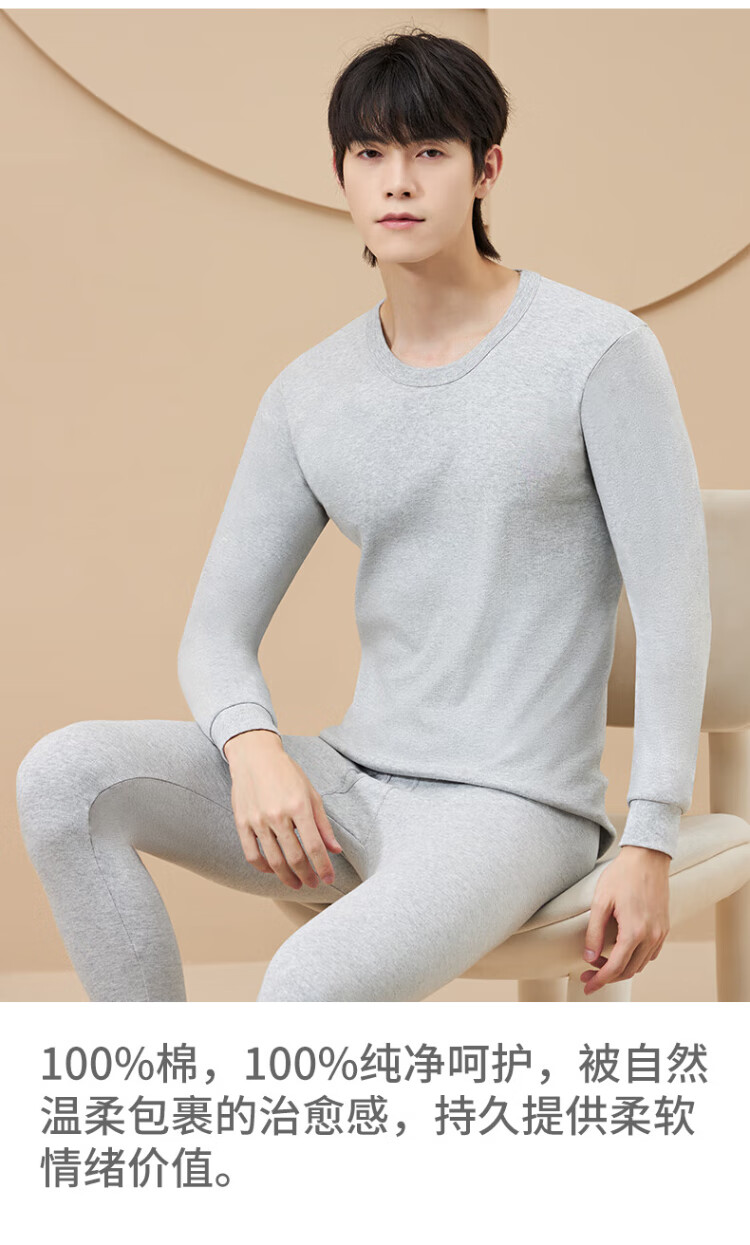 浪莎(LangSha)秋衣秋裤男士纯棉 保暖内衣套装10A抑菌防螨棉毛衫棉裤薄款打底衫