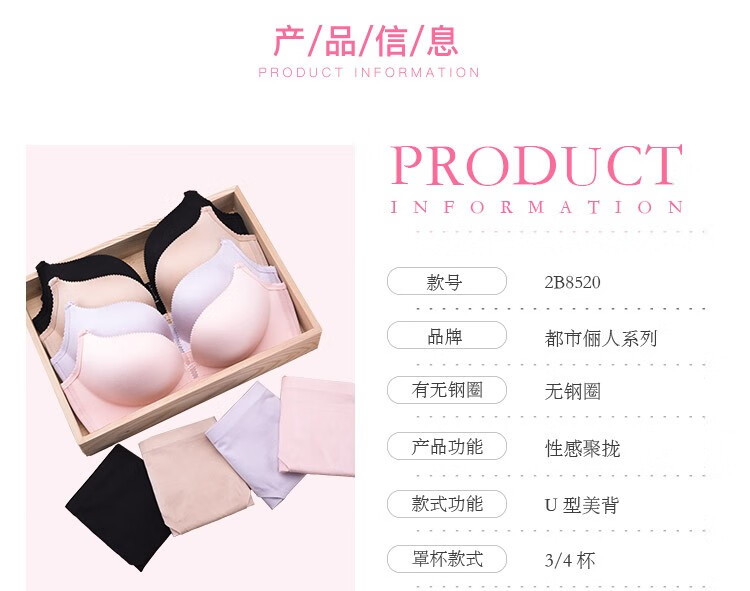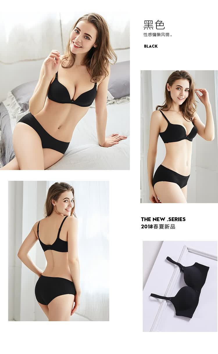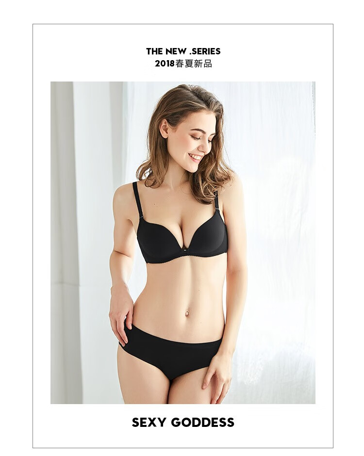 Urban Beauty Underwear Women's Smooth Seamless Wire-Free Upper Thin Lower Thick Cup Gathered Side Breast Women's Bra Set 2B0302 Black 75B (90) 34