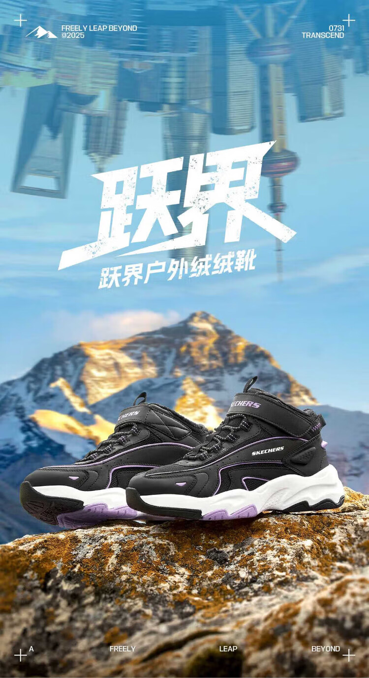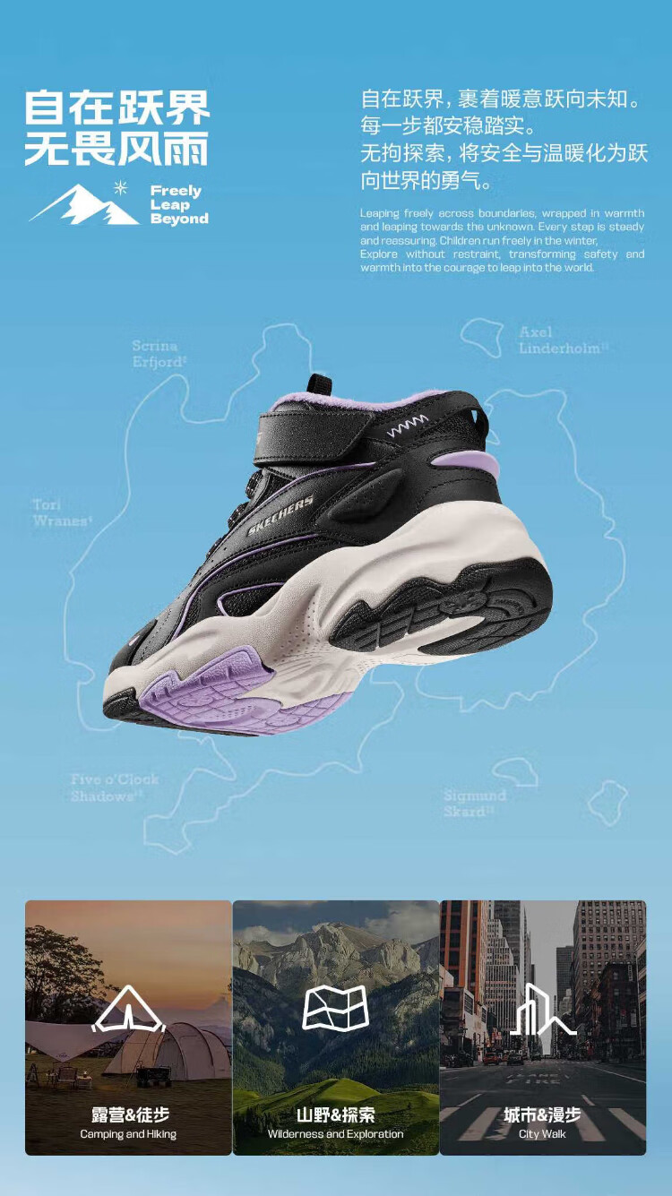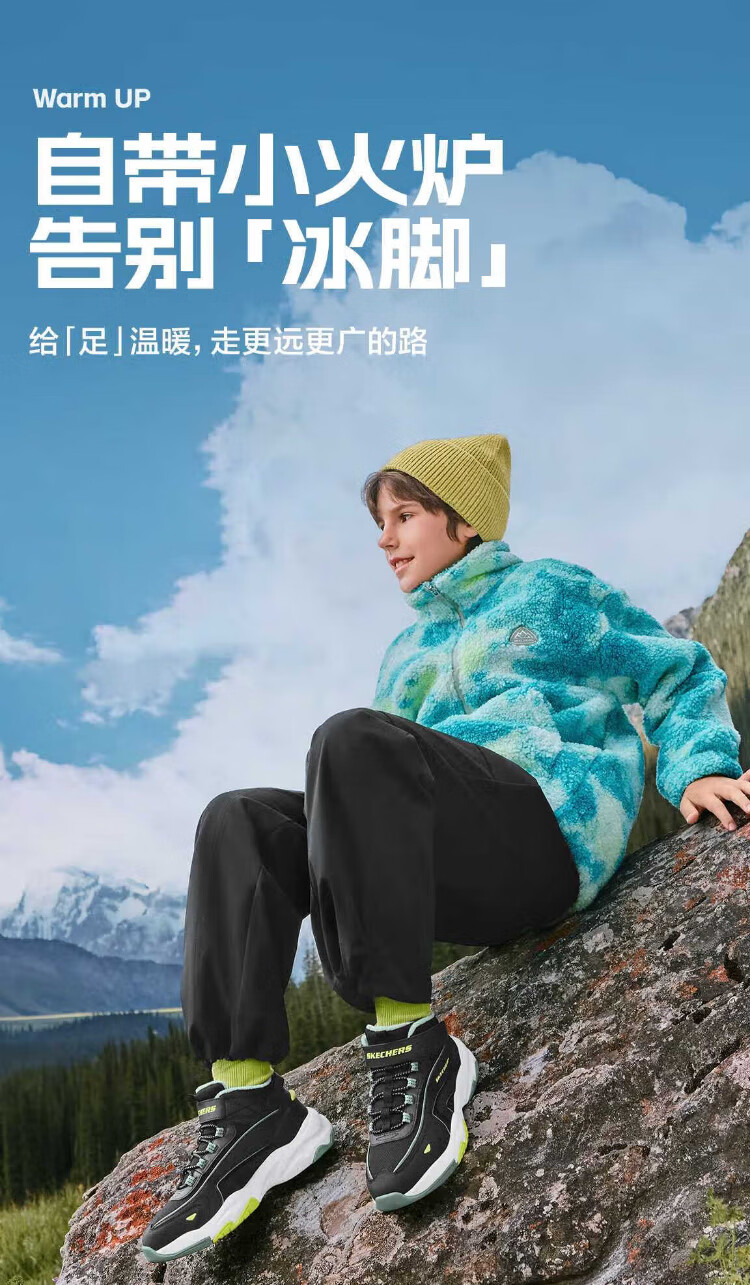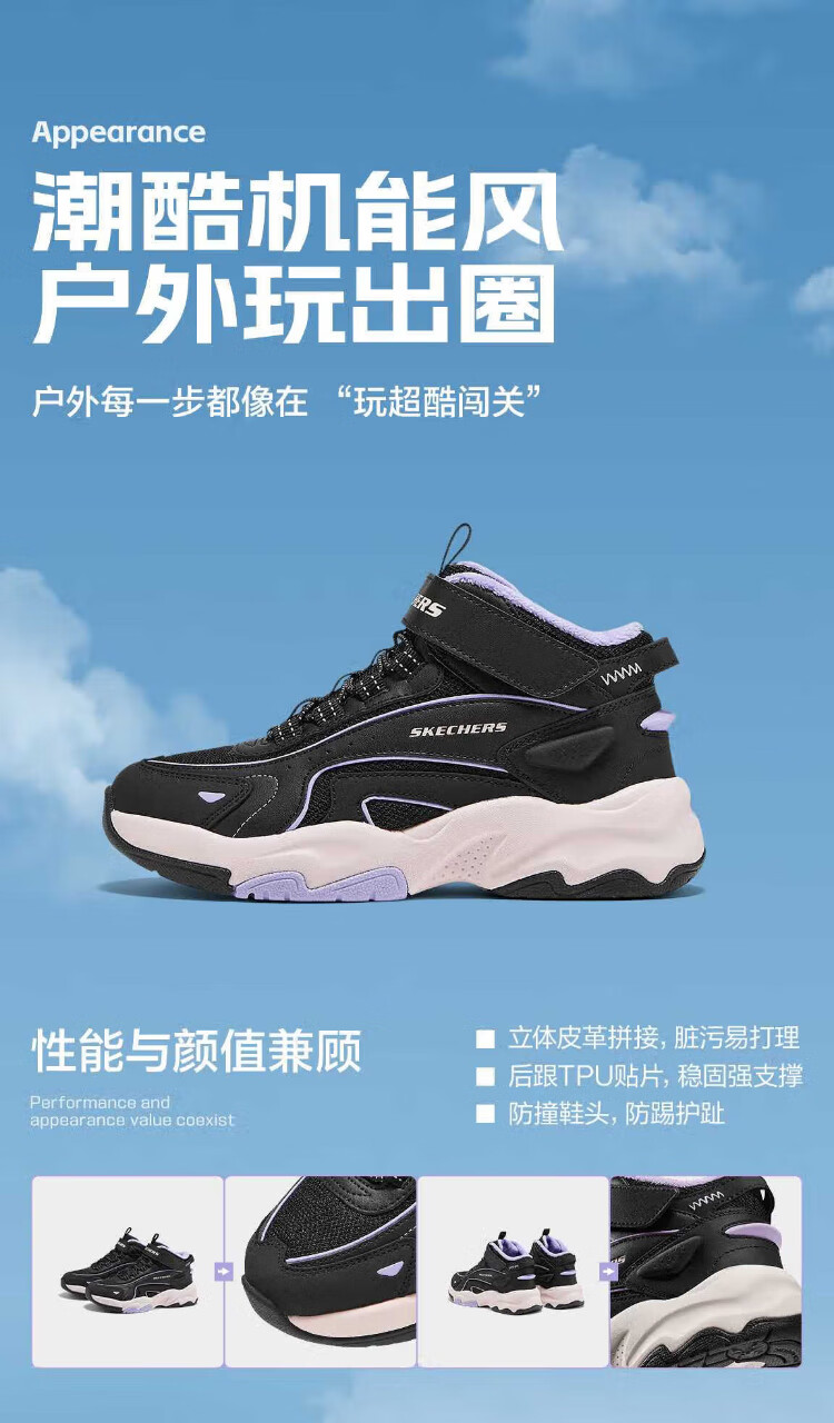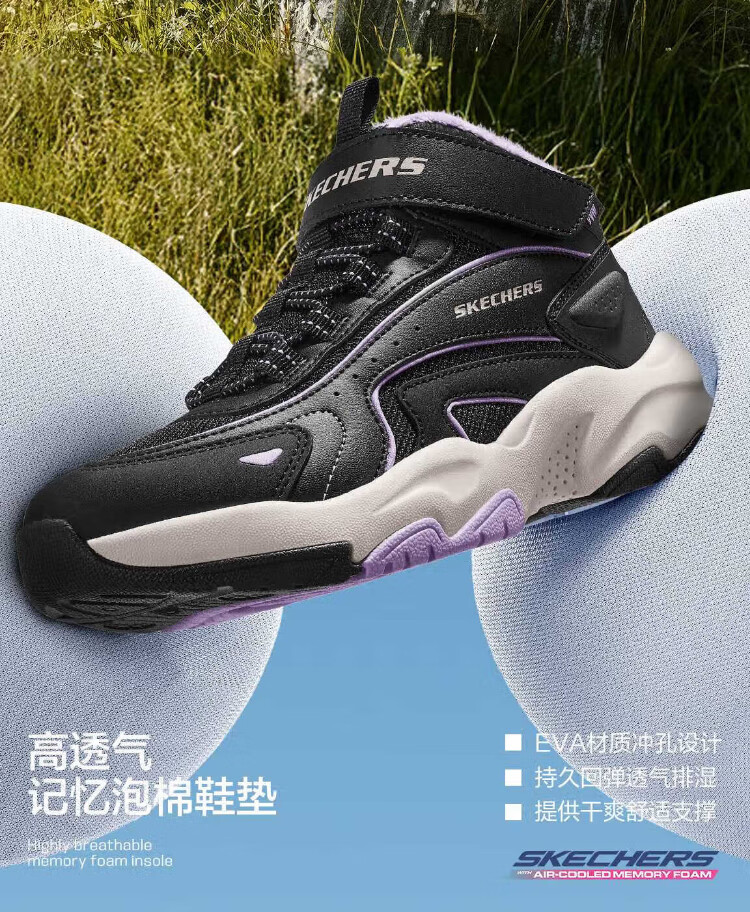 Skechers Skechers jump velvet boots children's plus velvet warm anti-slip wear-resistant comfortable boots 319258L