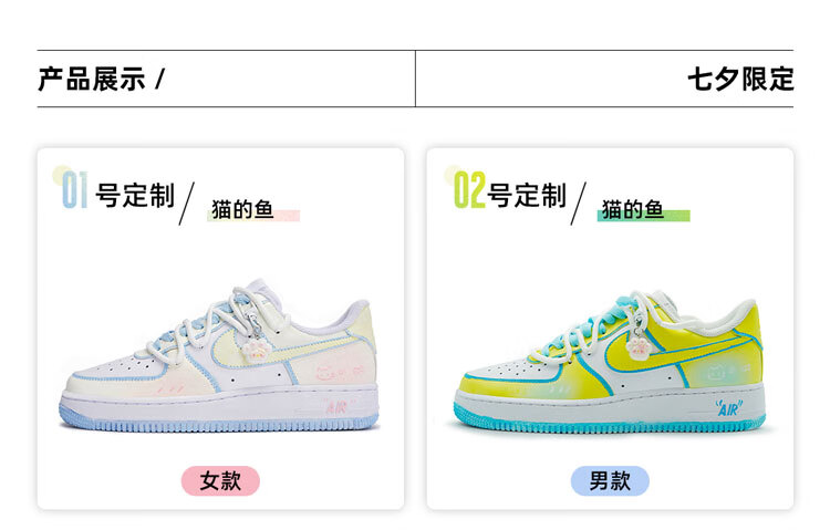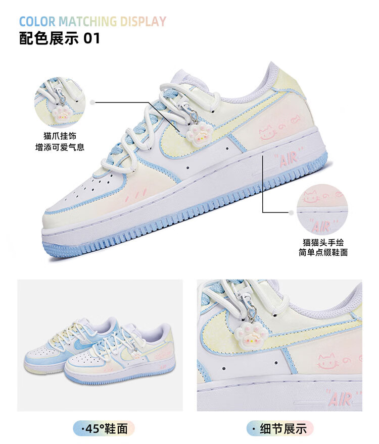 Nike Custom Shoes Air Force One Men's Low-top Casual Sports Shoes Fashion Shoes Cat's Fish 43