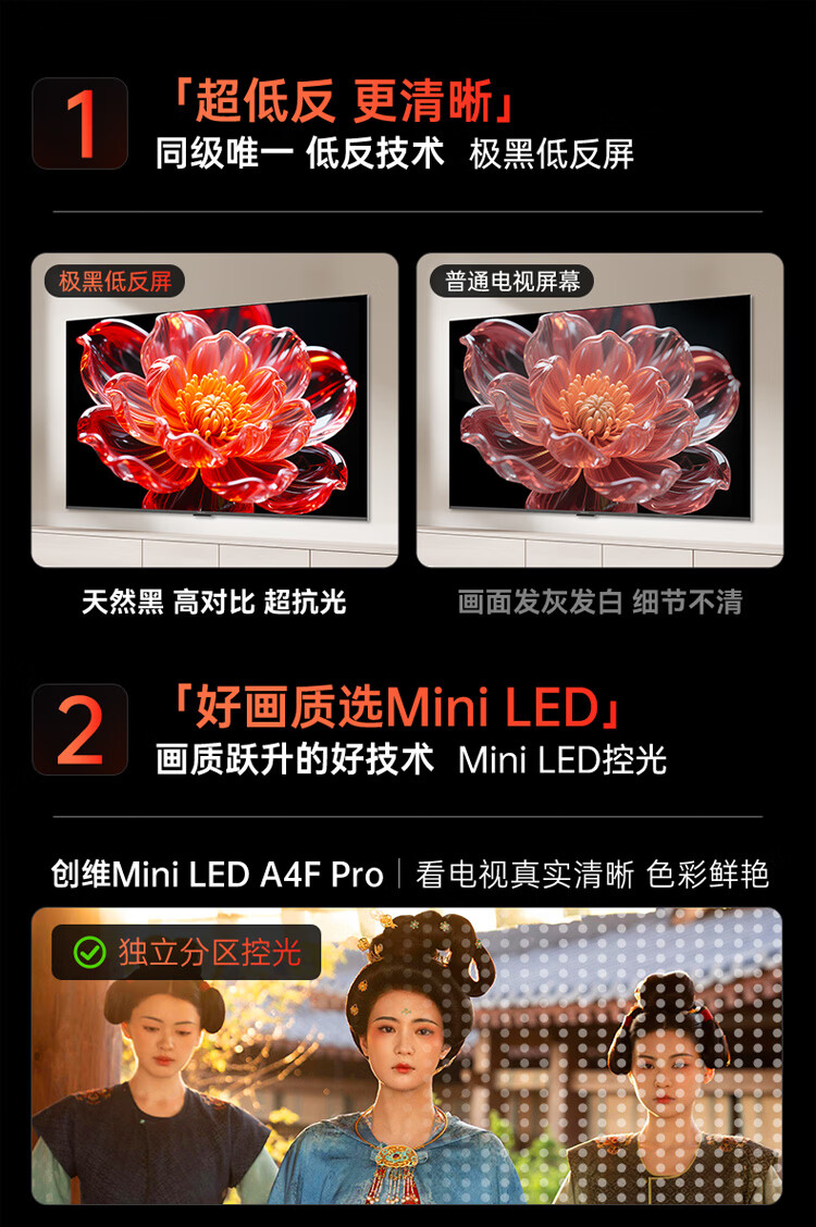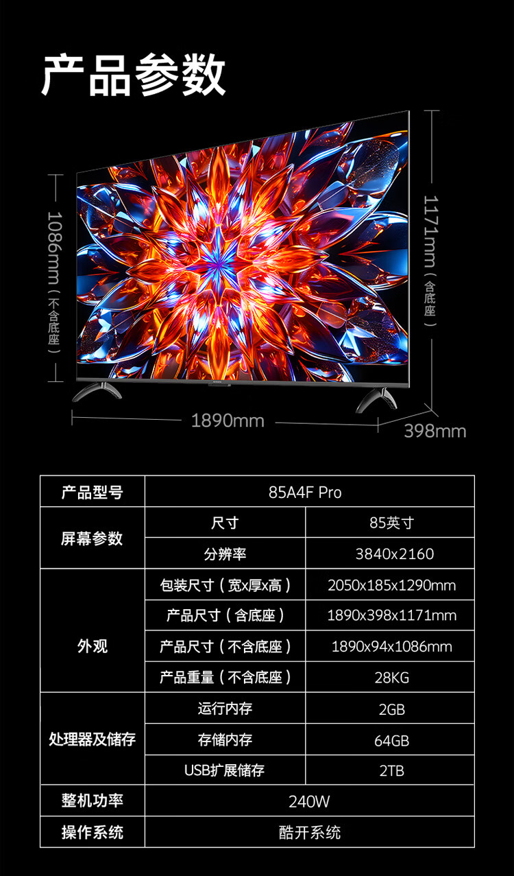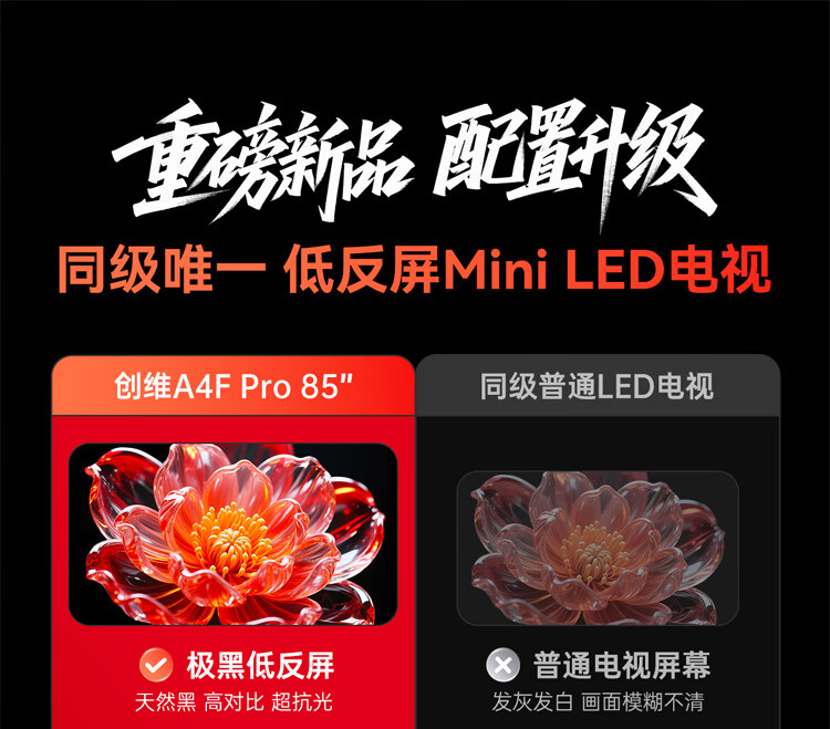 Skyworth TV 85A4F Pro 85-inch TV mini led low-reflection screen 4+64G 85-inch state-subsidized first-level energy efficiency 4k LCD tablet game A4F upgrade